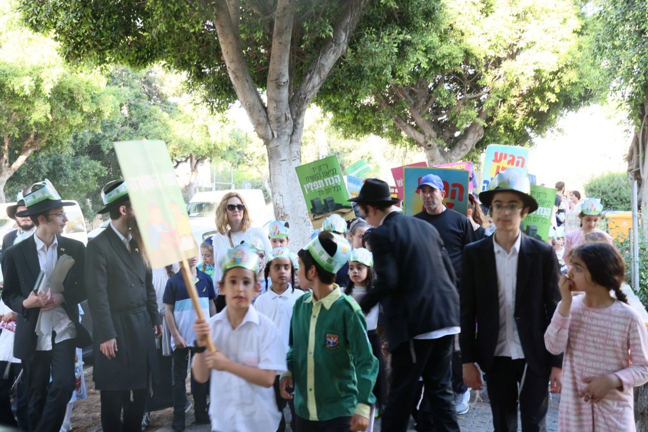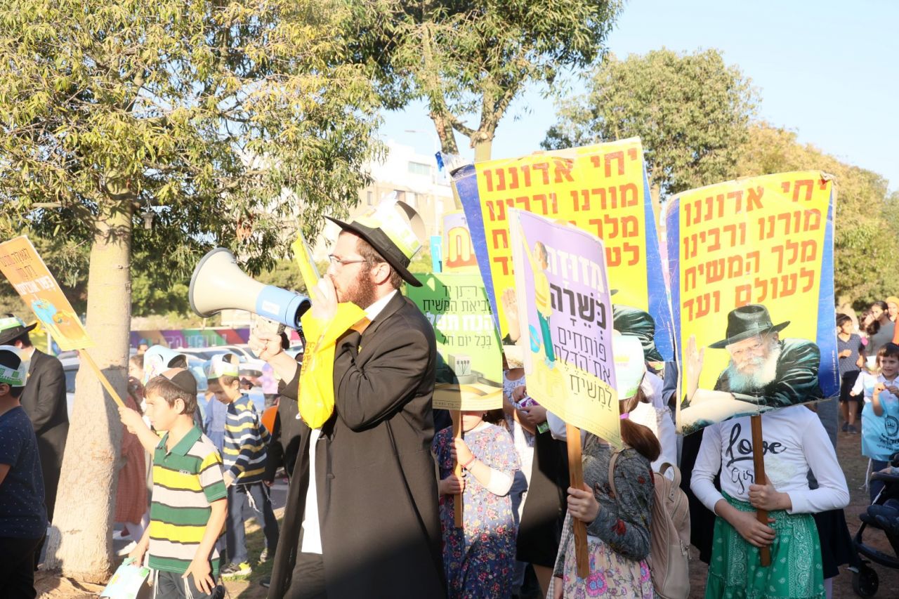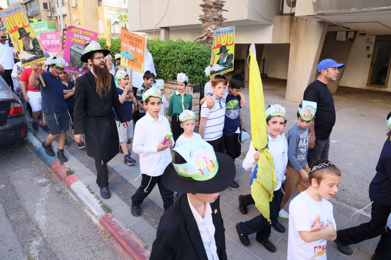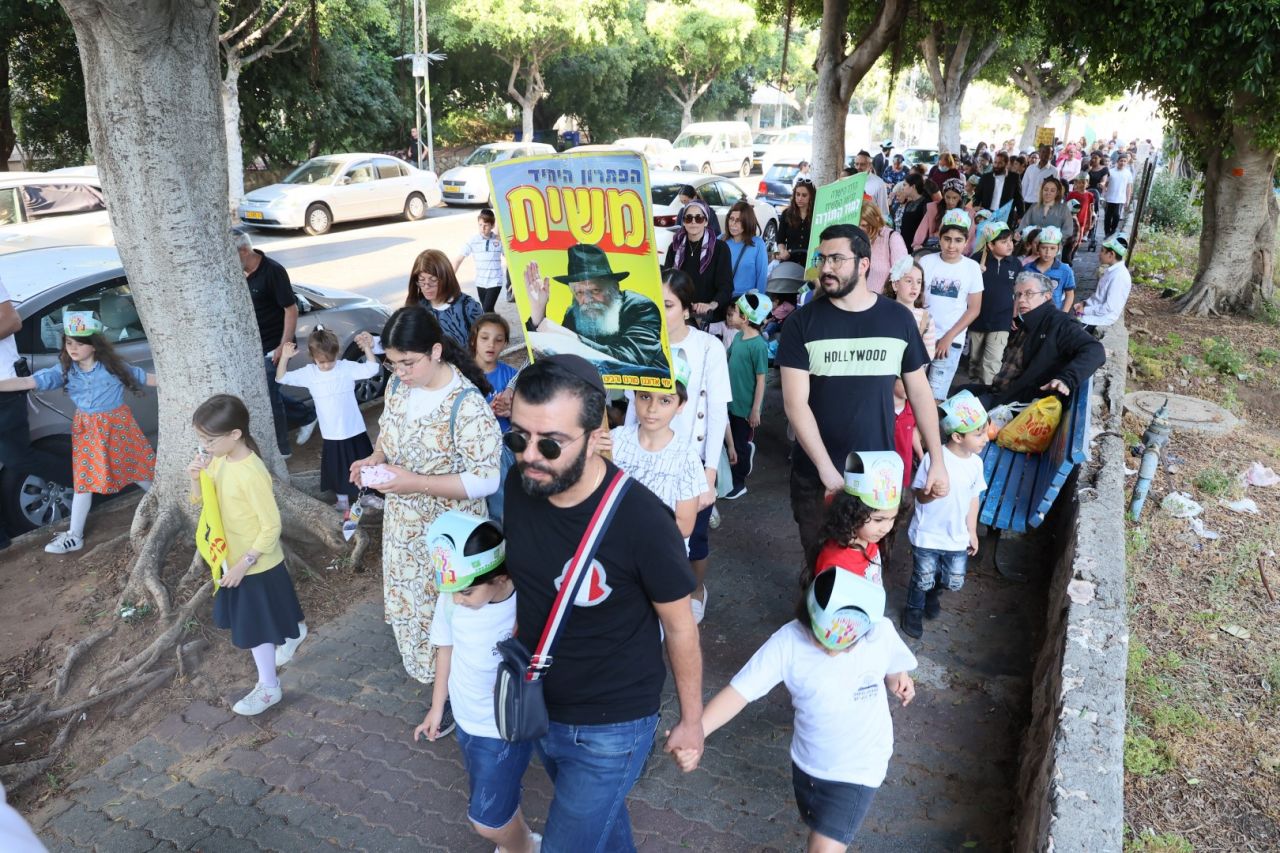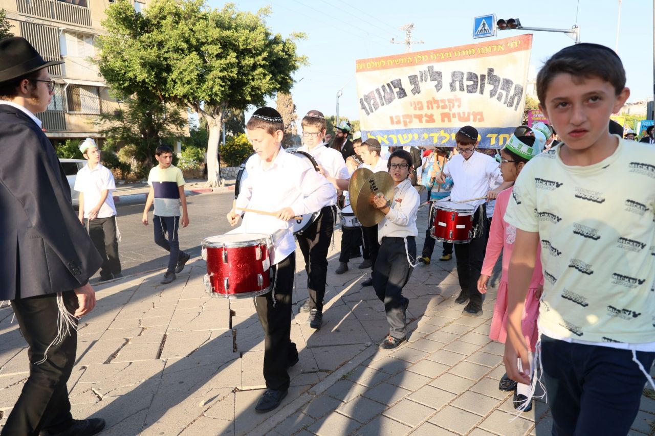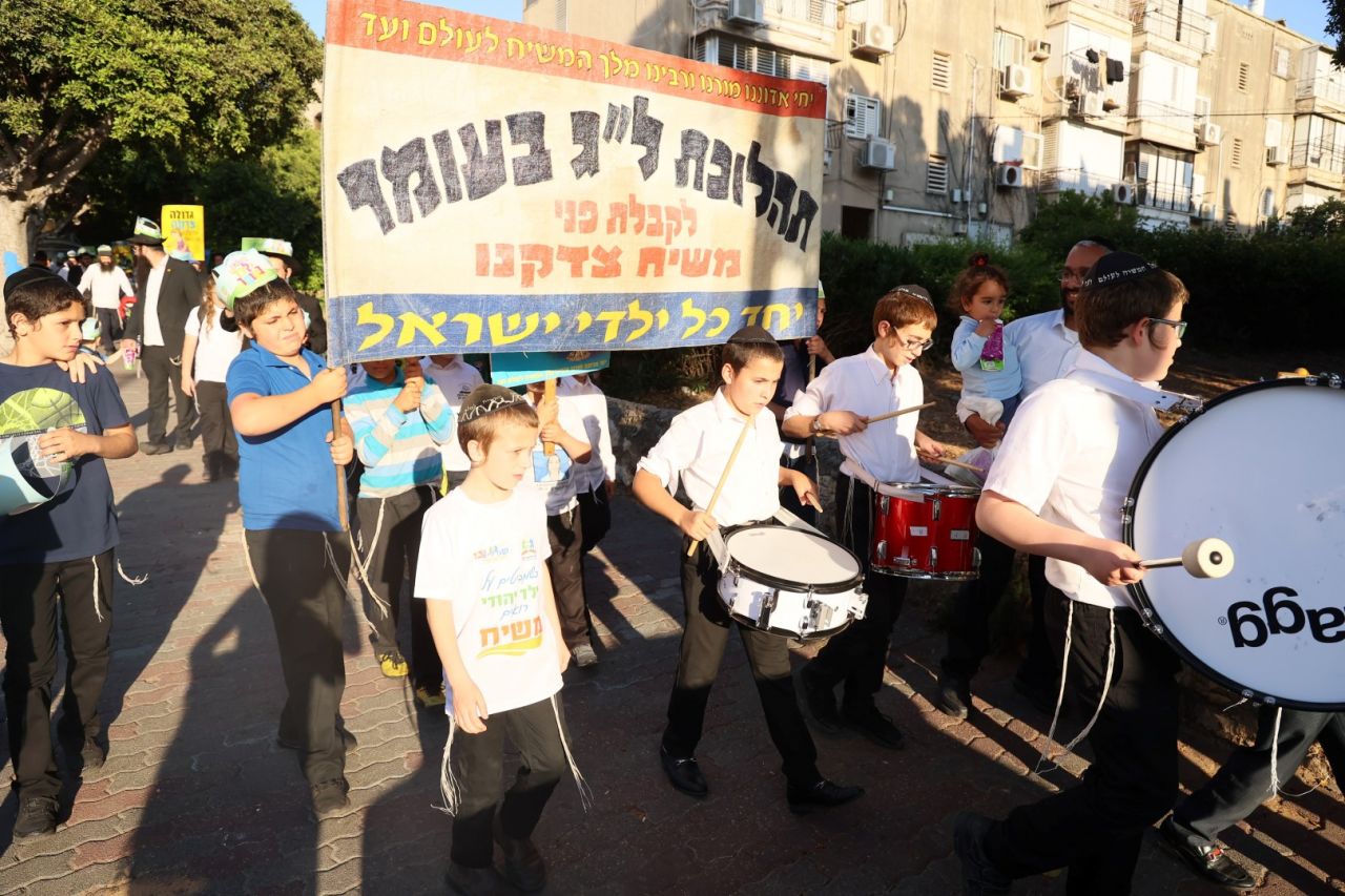 עם סיום נערכו הילדים לצעוד בתהלוכה המסורתית ברחבי העיר, כאשר שלטי המצוות בידיהם לצד דגלי משיח. בראש התהלוכה צעדו להקת מתופפים שהעירו את העיר בקדושה, ולאחריהם בסדר מופתי צעדו המאות הרבות כשאליהם מצטרפים כל העת עוד ועוד תושבים שנפעמו מהמראה.