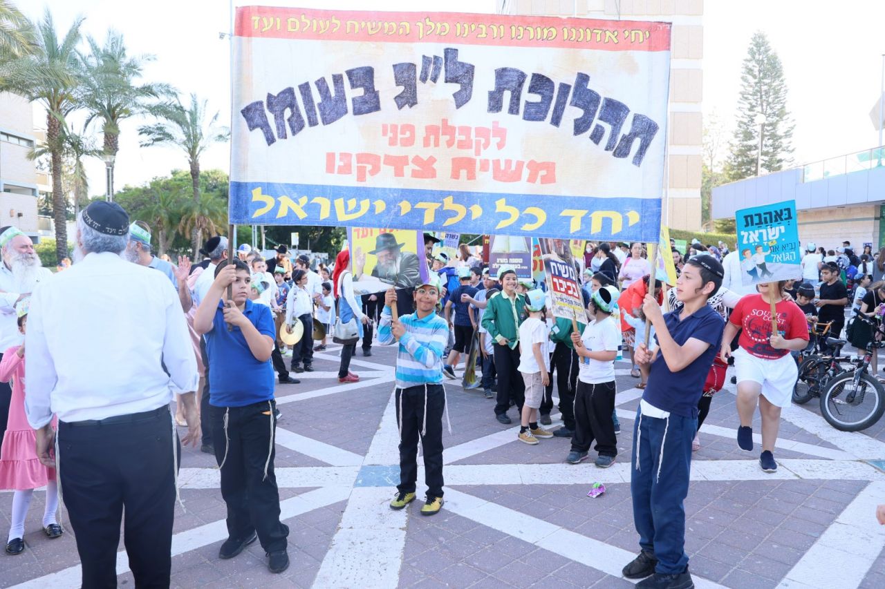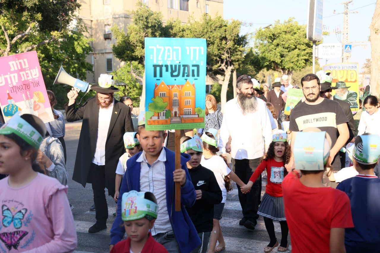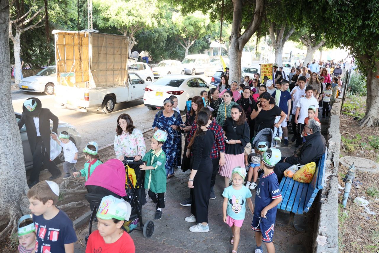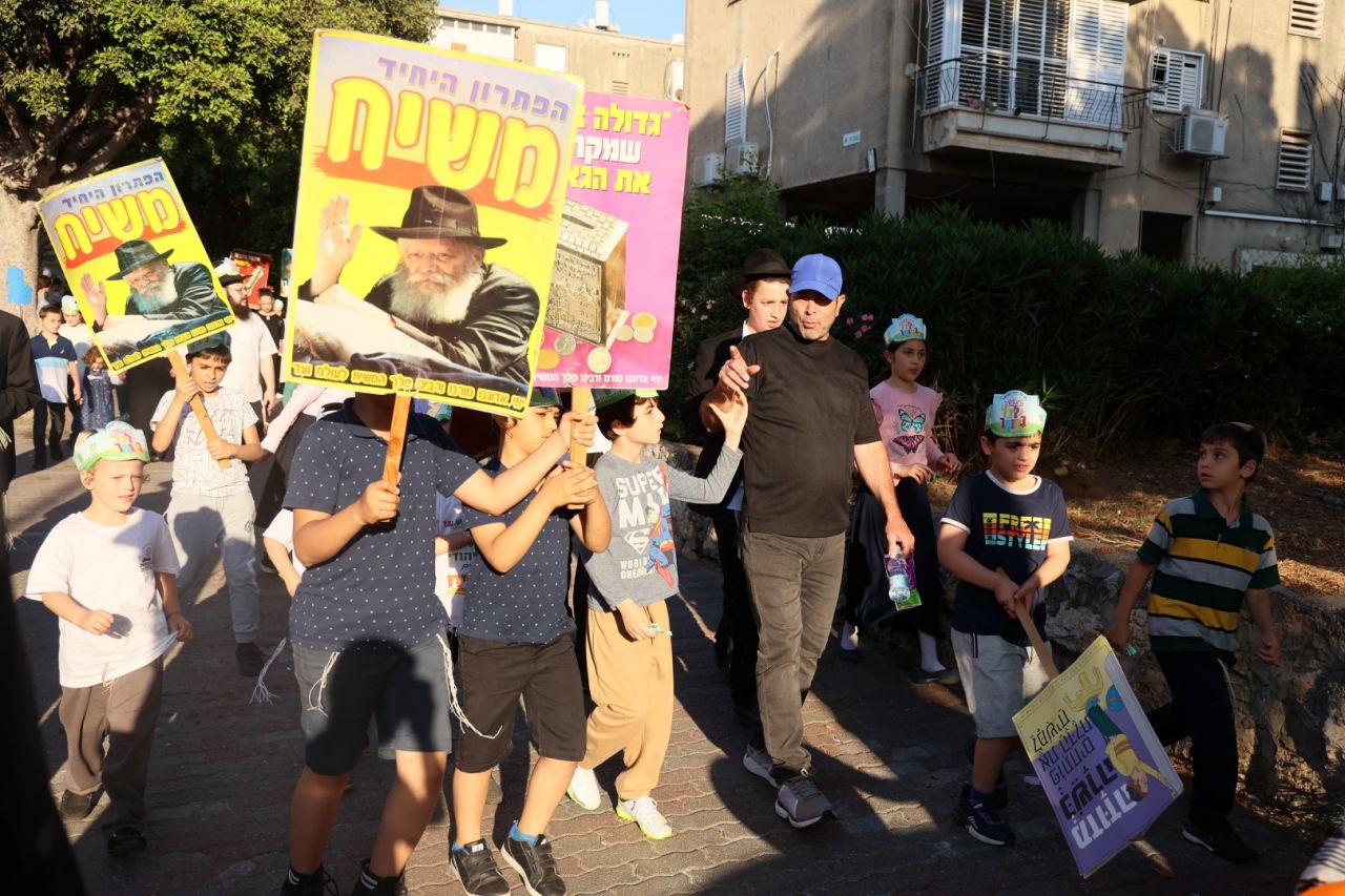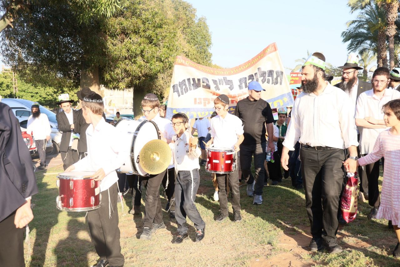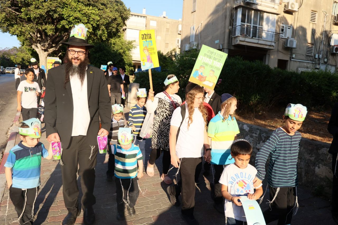עם סיום נערכו הילדים לצעוד בתהלוכה המסורתית ברחבי העיר, כאשר שלטי המצוות בידיהם לצד דגלי משיח. בראש התהלוכה צעדו להקת מתופפים שהעירו את העיר בקדושה, ולאחריהם בסדר מופתי צעדו המאות הרבות כשאליהם מצטרפים כל העת עוד ועוד תושבים שנפעמו מהמראה.