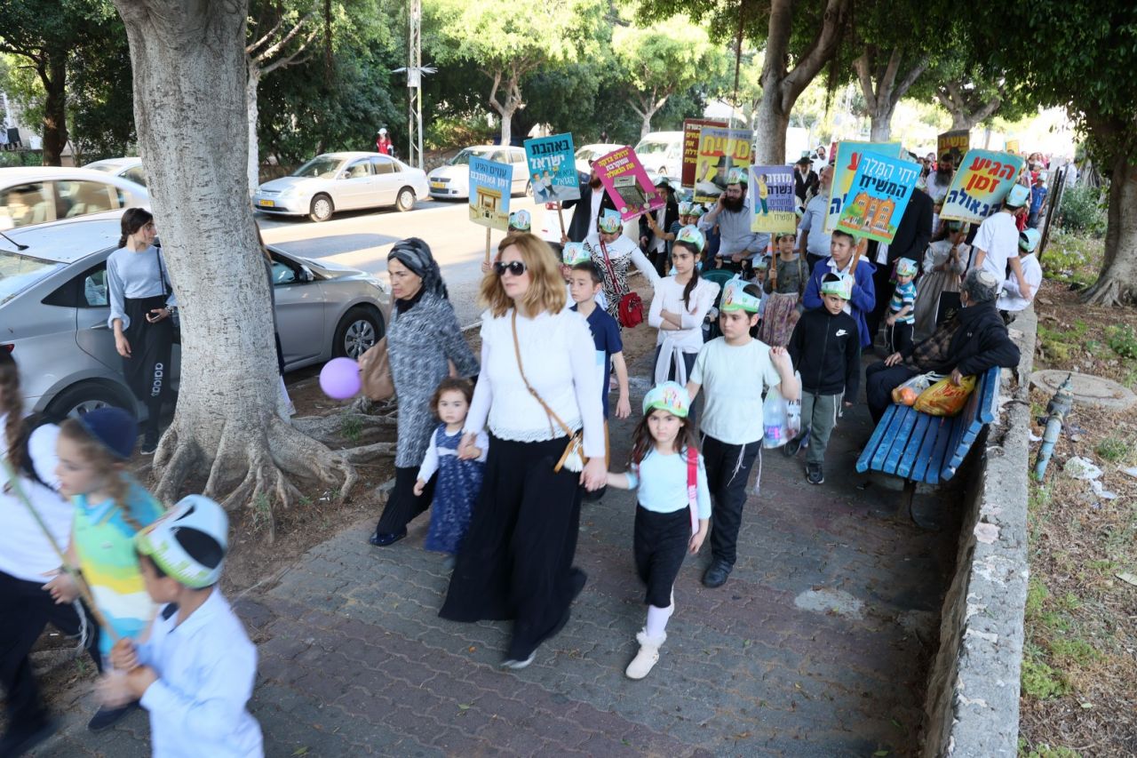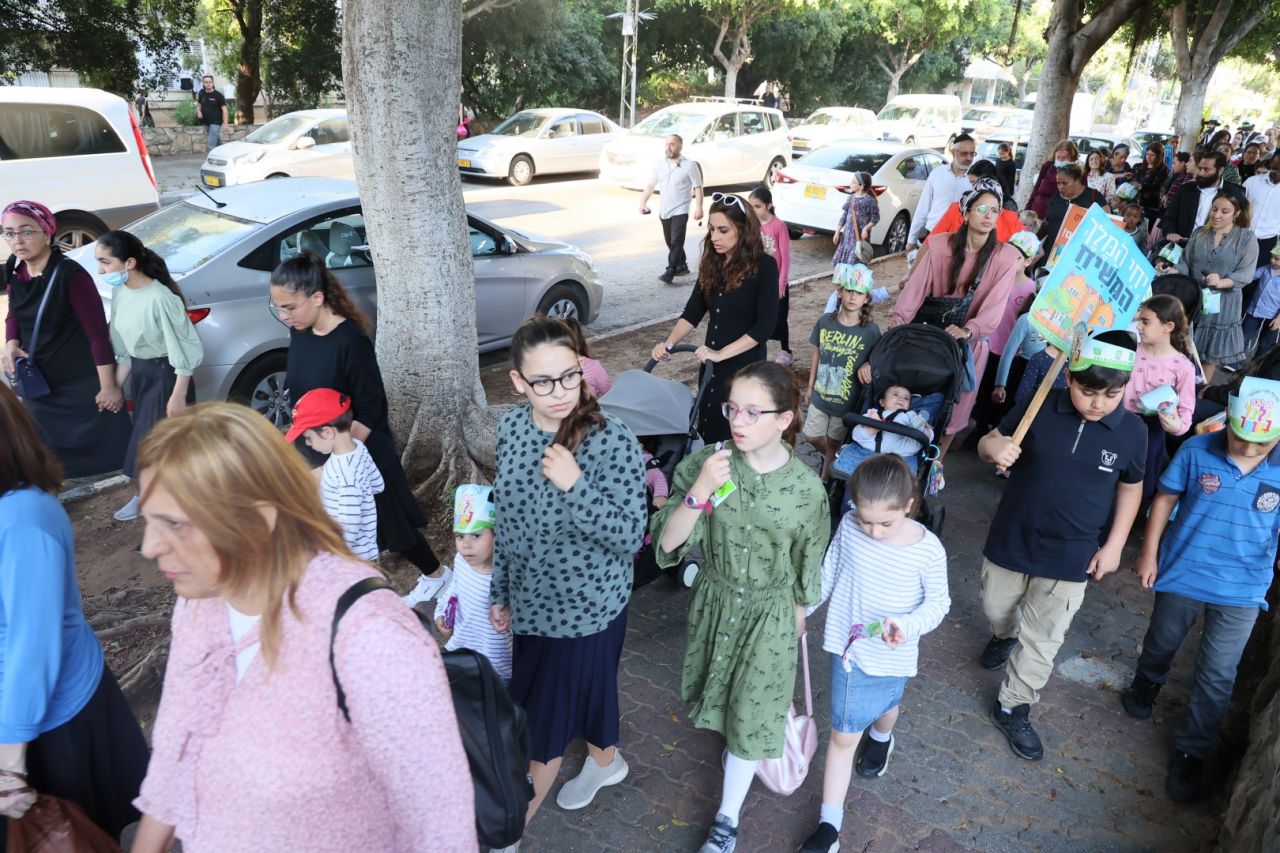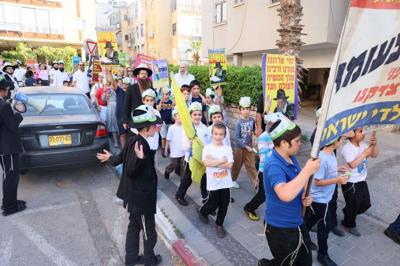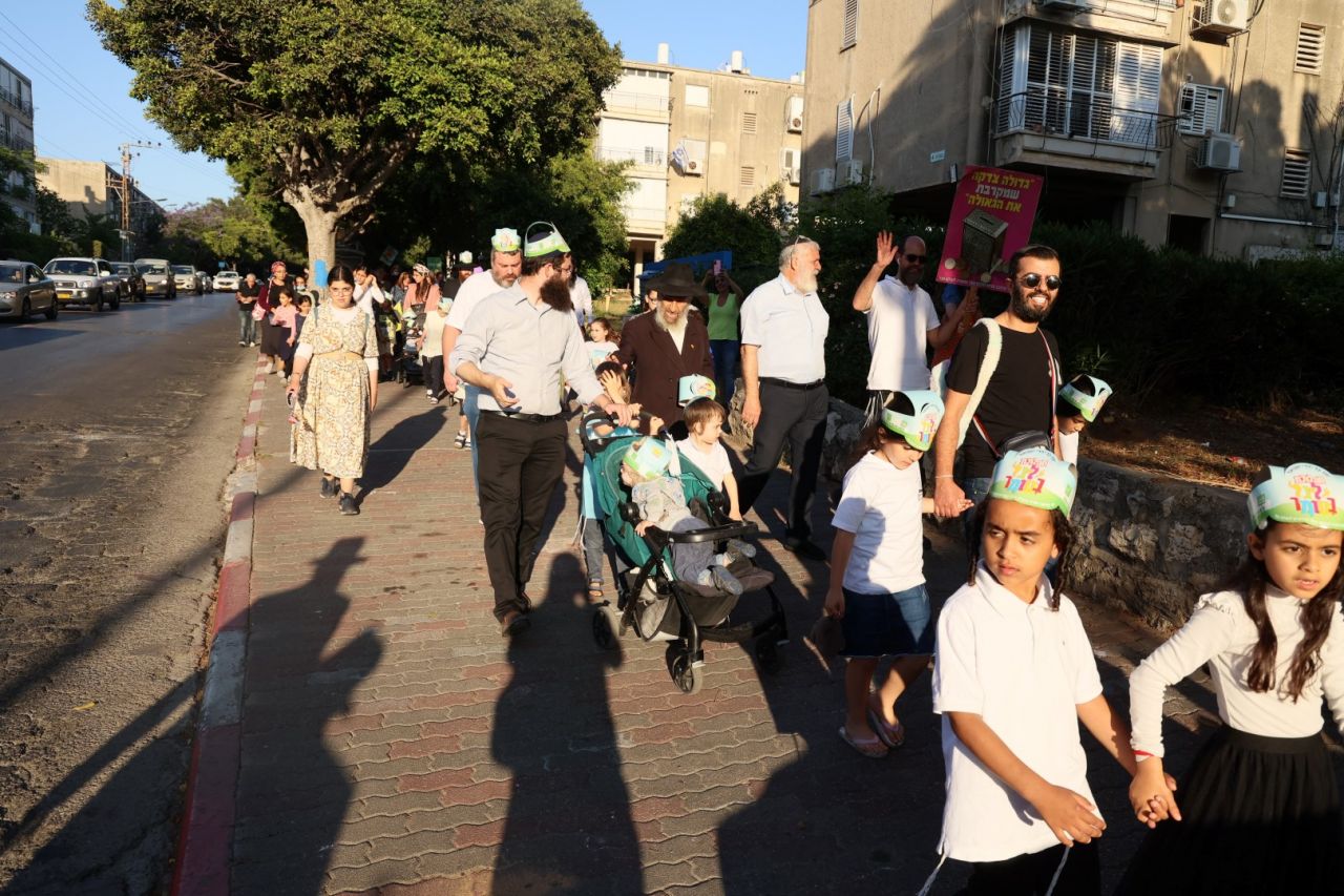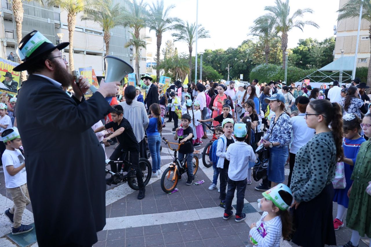 עם סיום נערכו הילדים לצעוד בתהלוכה המסורתית ברחבי העיר, כאשר שלטי המצוות בידיהם לצד דגלי משיח. בראש התהלוכה צעדו להקת מתופפים שהעירו את העיר בקדושה, ולאחריהם בסדר מופתי צעדו המאות הרבות כשאליהם מצטרפים כל העת עוד ועוד תושבים שנפעמו מהמראה.