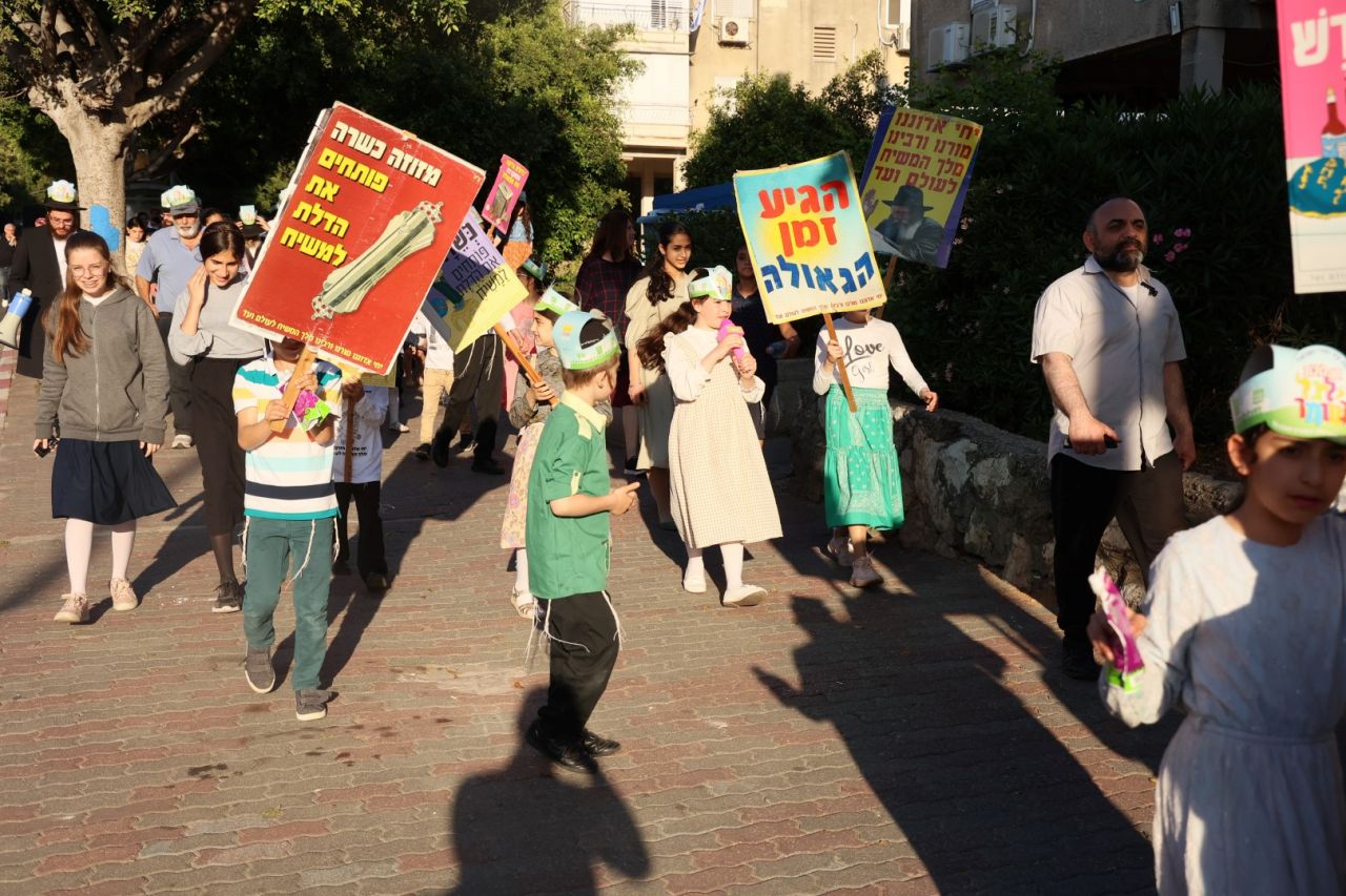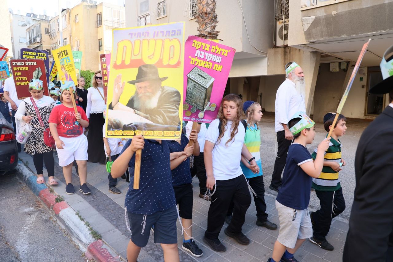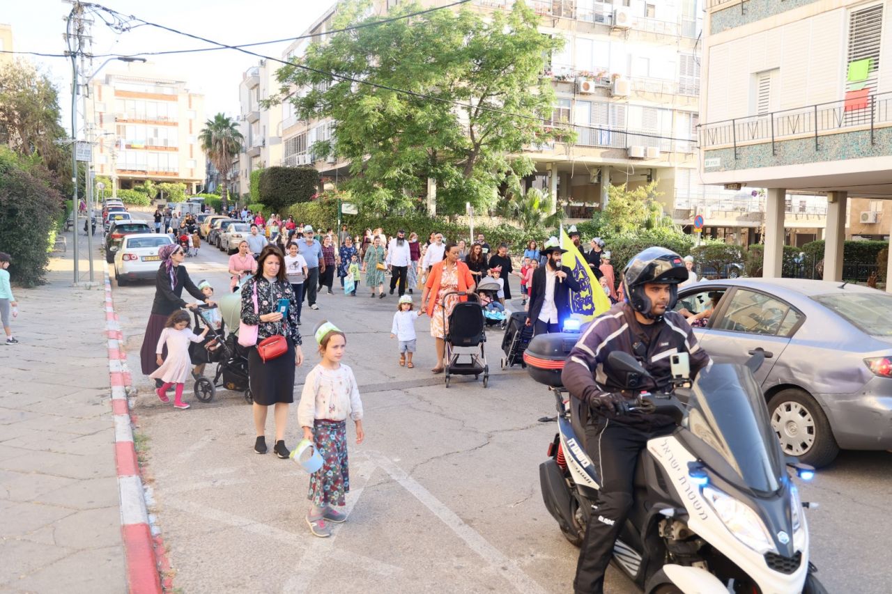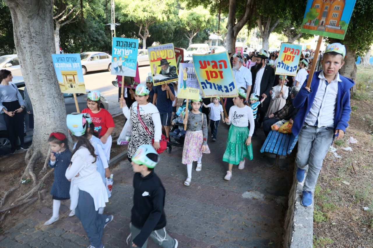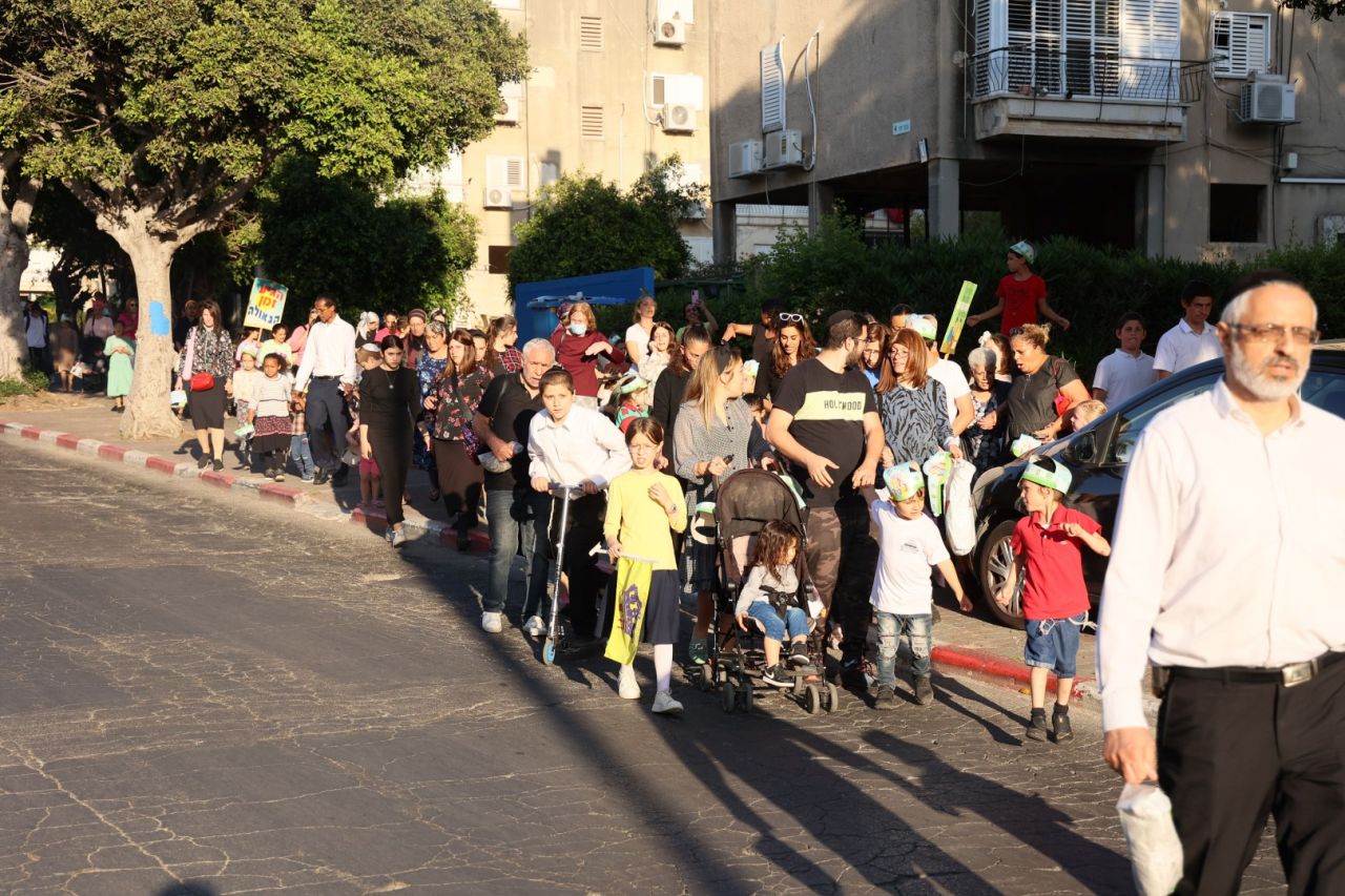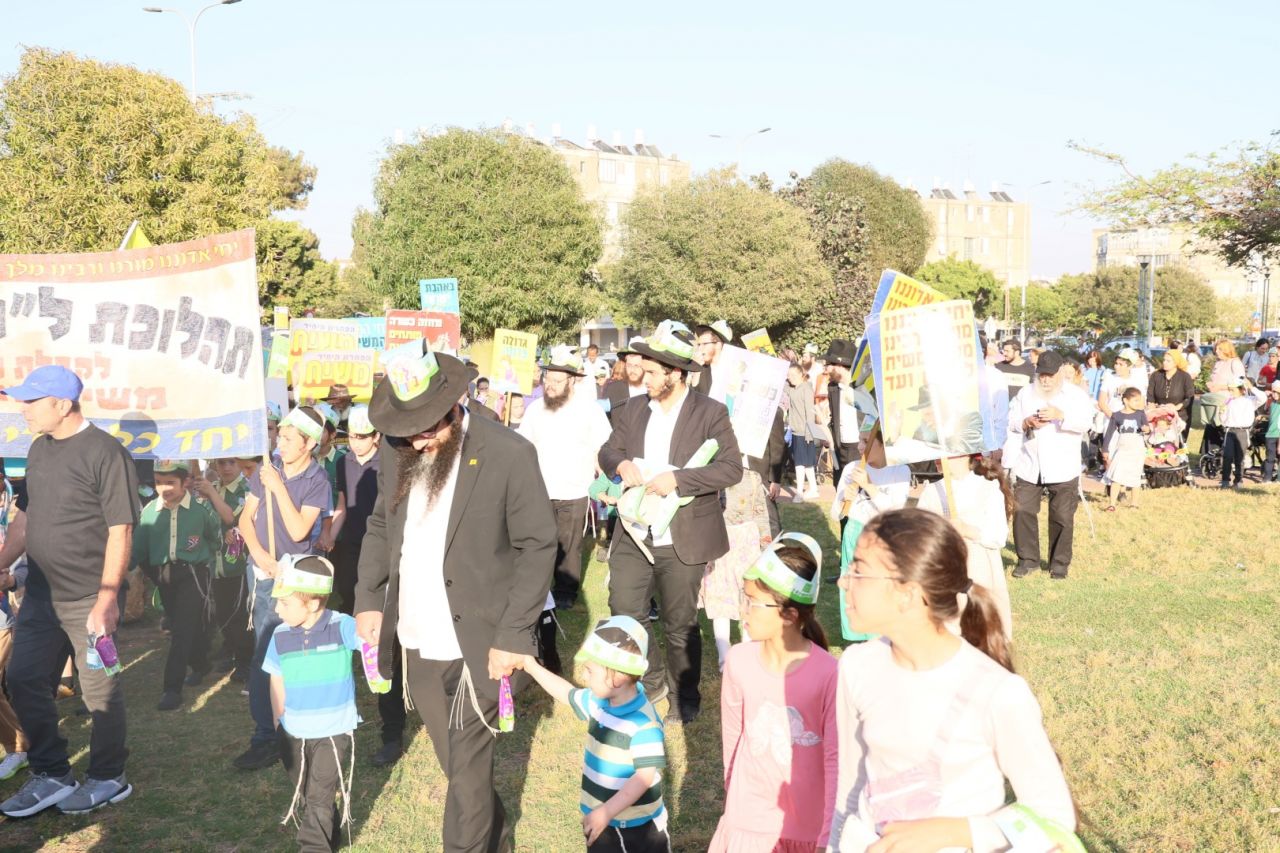 עם סיום נערכו הילדים לצעוד בתהלוכה המסורתית ברחבי העיר, כאשר שלטי המצוות בידיהם לצד דגלי משיח. בראש התהלוכה צעדו להקת מתופפים שהעירו את העיר בקדושה, ולאחריהם בסדר מופתי צעדו המאות הרבות כשאליהם מצטרפים כל העת עוד ועוד תושבים שנפעמו מהמראה.