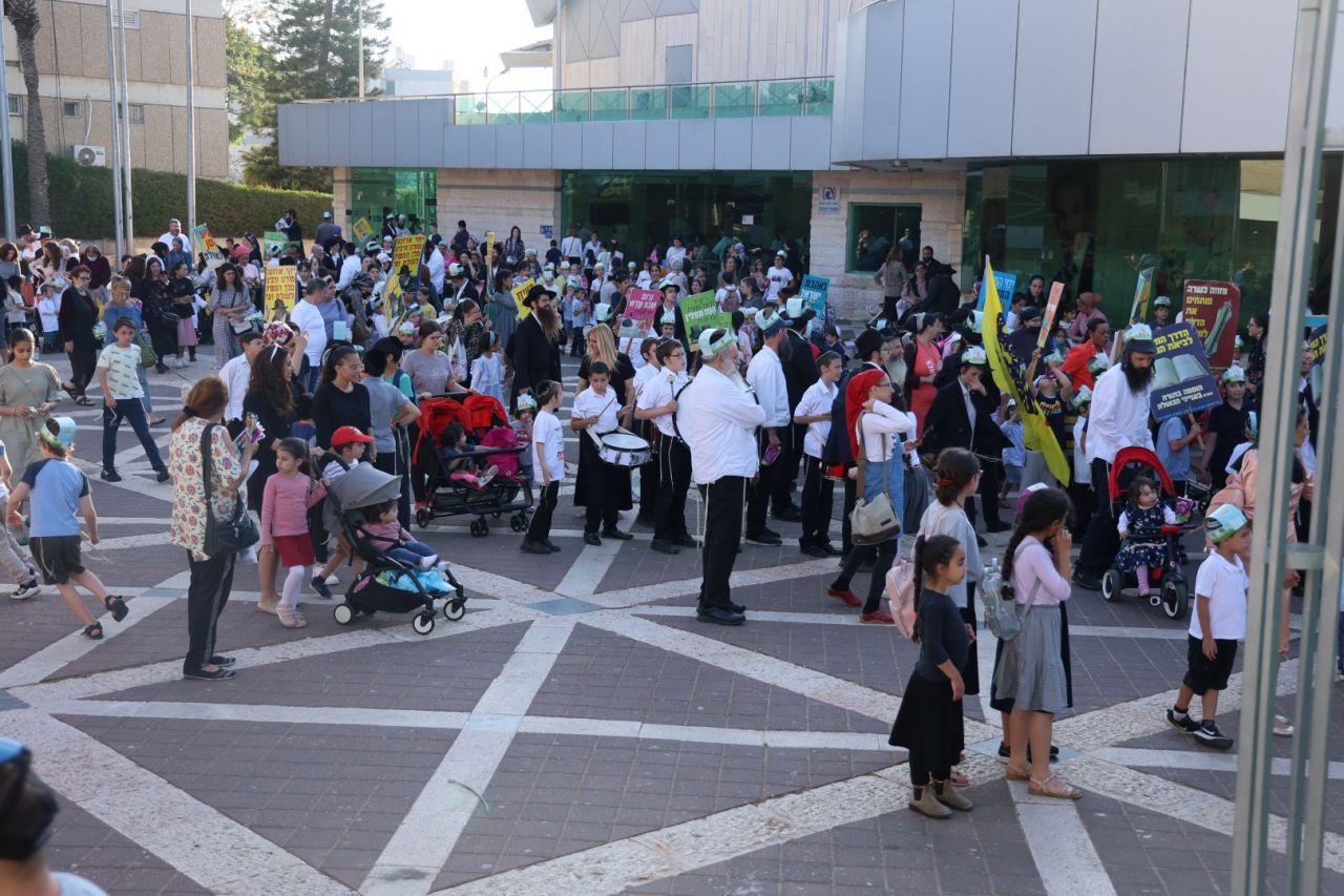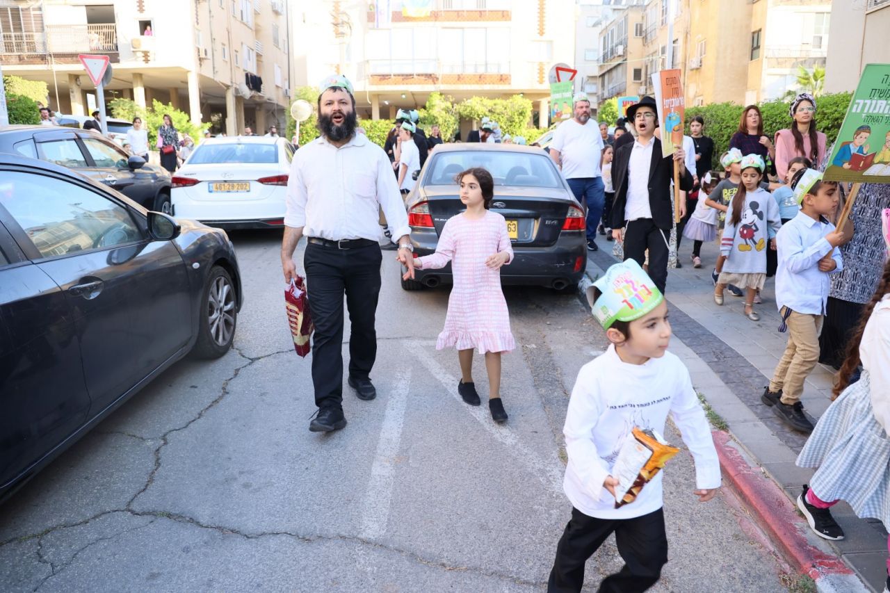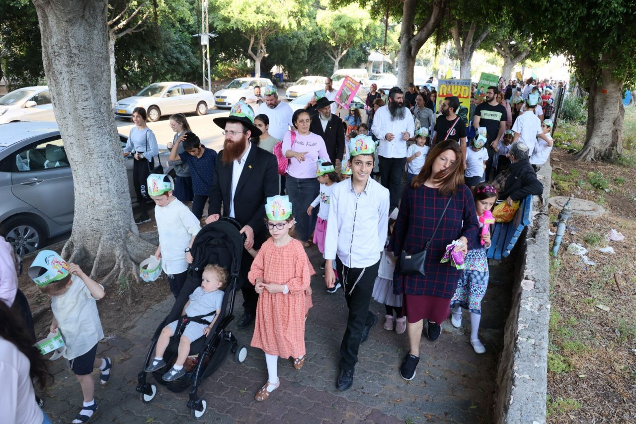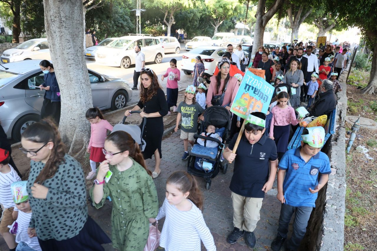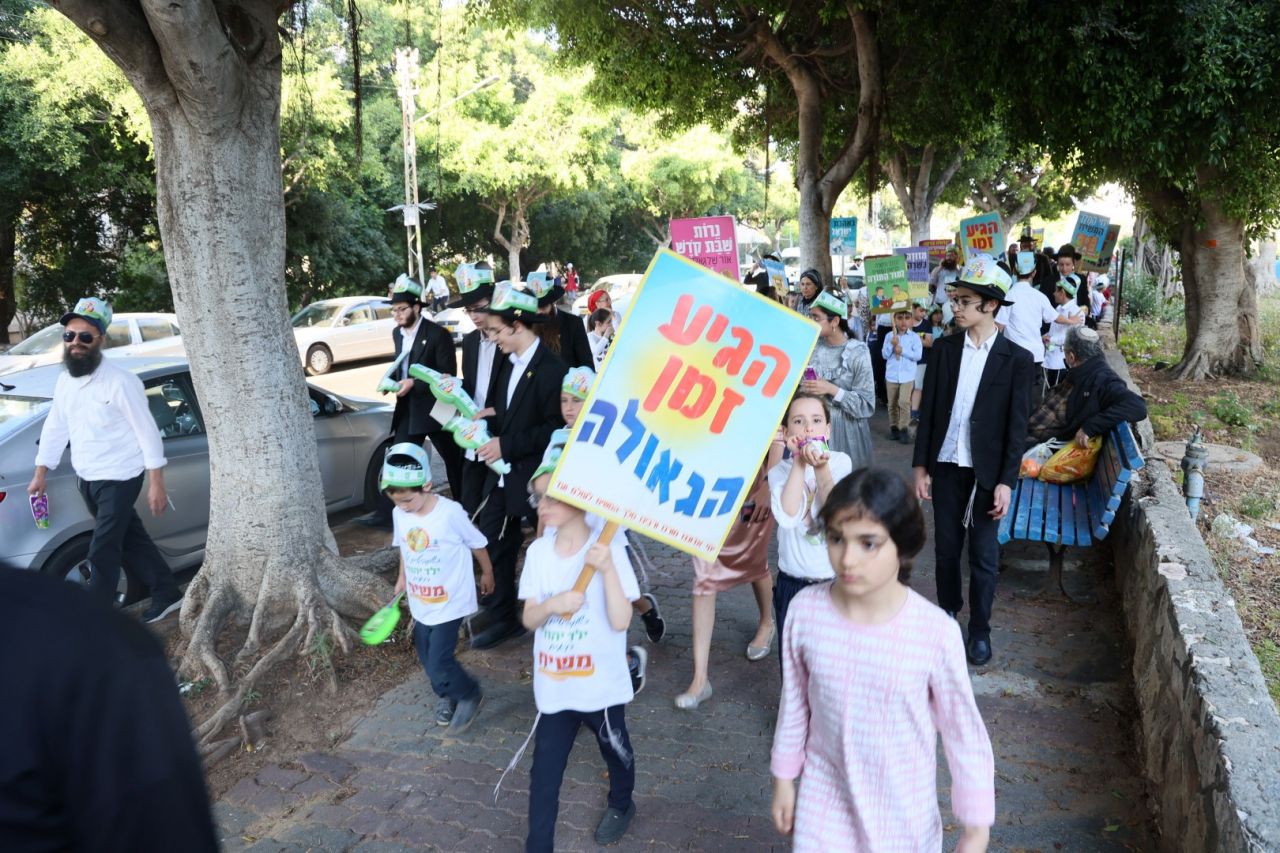 עם סיום נערכו הילדים לצעוד בתהלוכה המסורתית ברחבי העיר, כאשר שלטי המצוות בידיהם לצד דגלי משיח. בראש התהלוכה צעדו להקת מתופפים שהעירו את העיר בקדושה, ולאחריהם בסדר מופתי צעדו המאות הרבות כשאליהם מצטרפים כל העת עוד ועוד תושבים שנפעמו מהמראה.
