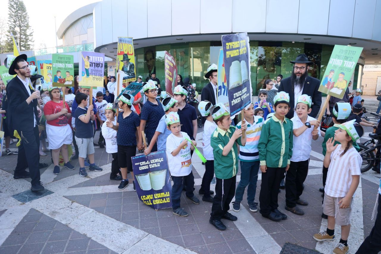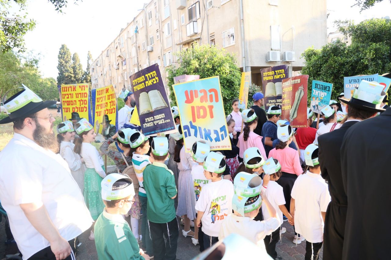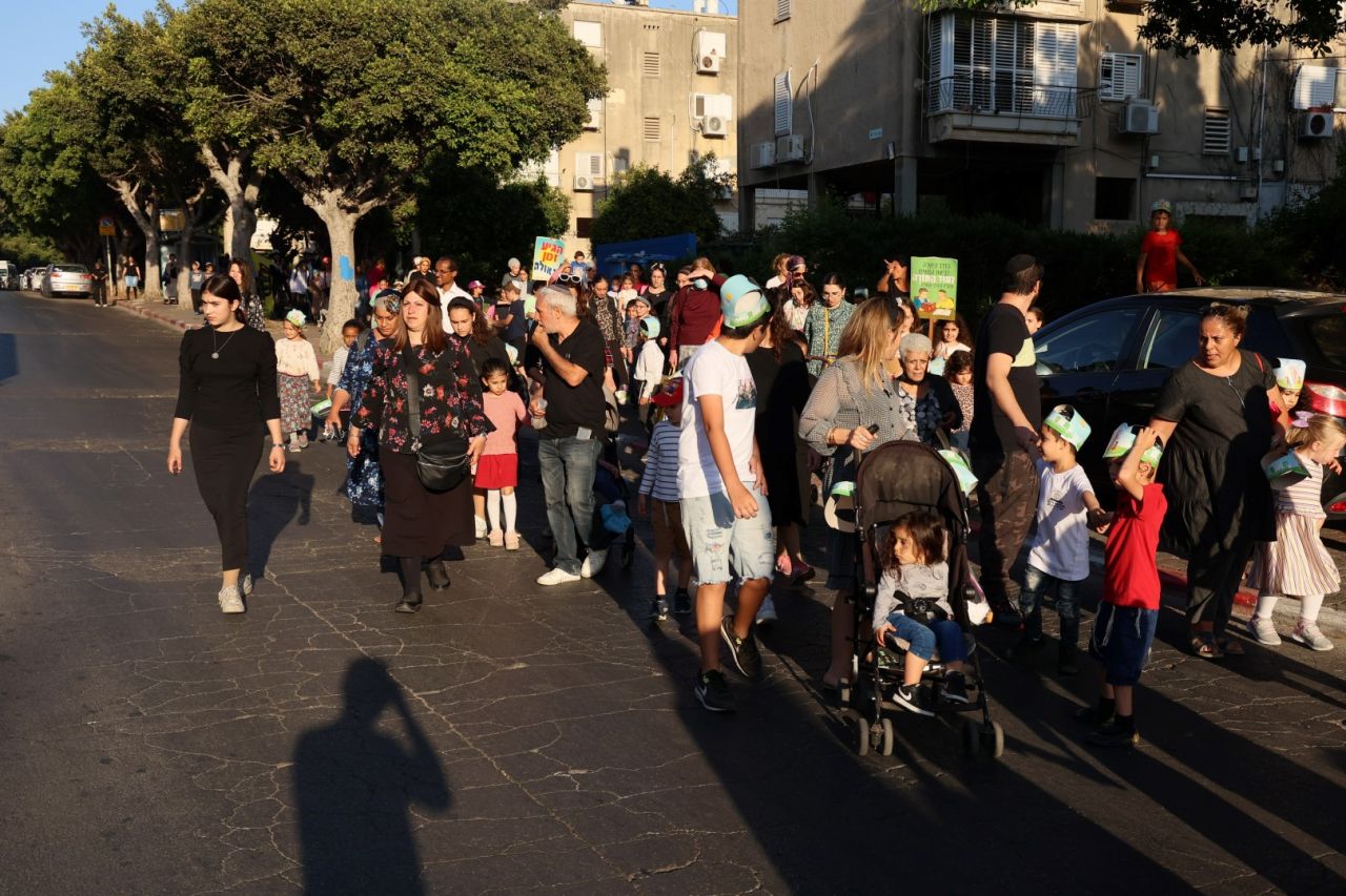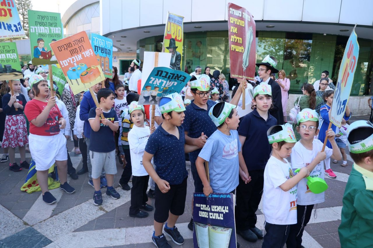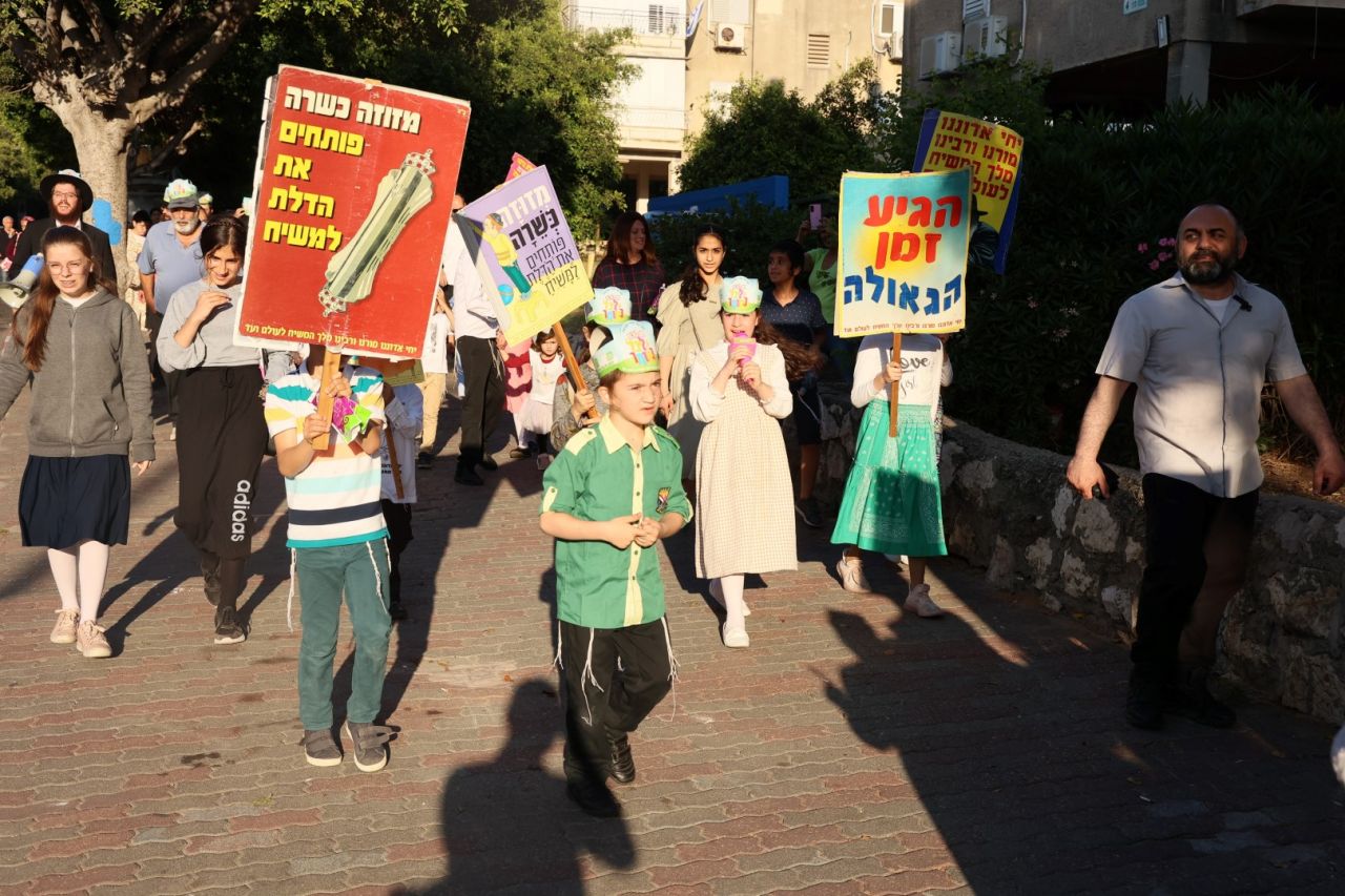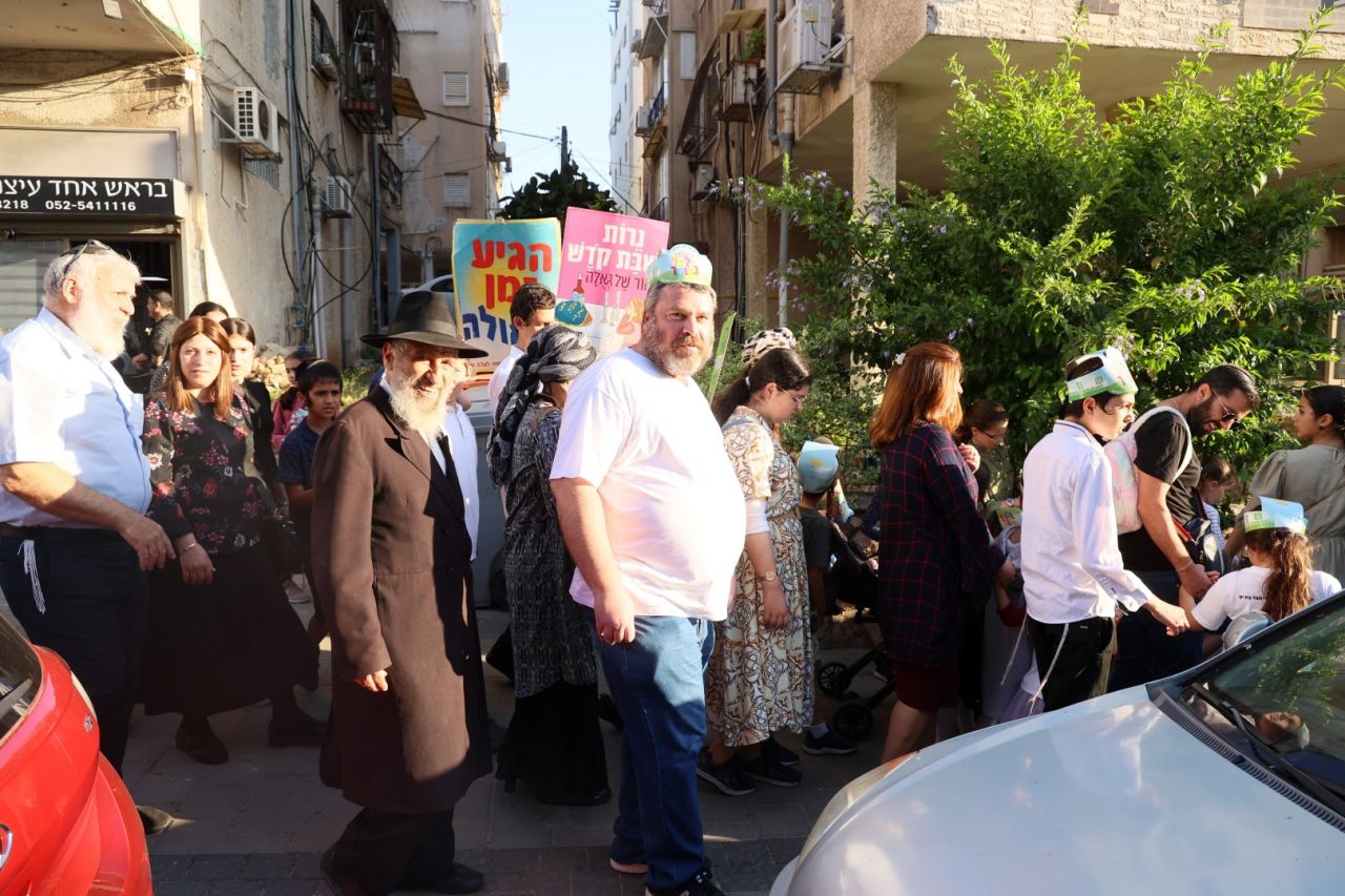 עם סיום נערכו הילדים לצעוד בתהלוכה המסורתית ברחבי העיר, כאשר שלטי המצוות בידיהם לצד דגלי משיח. בראש התהלוכה צעדו להקת מתופפים שהעירו את העיר בקדושה, ולאחריהם בסדר מופתי צעדו המאות הרבות כשאליהם מצטרפים כל העת עוד ועוד תושבים שנפעמו מהמראה.