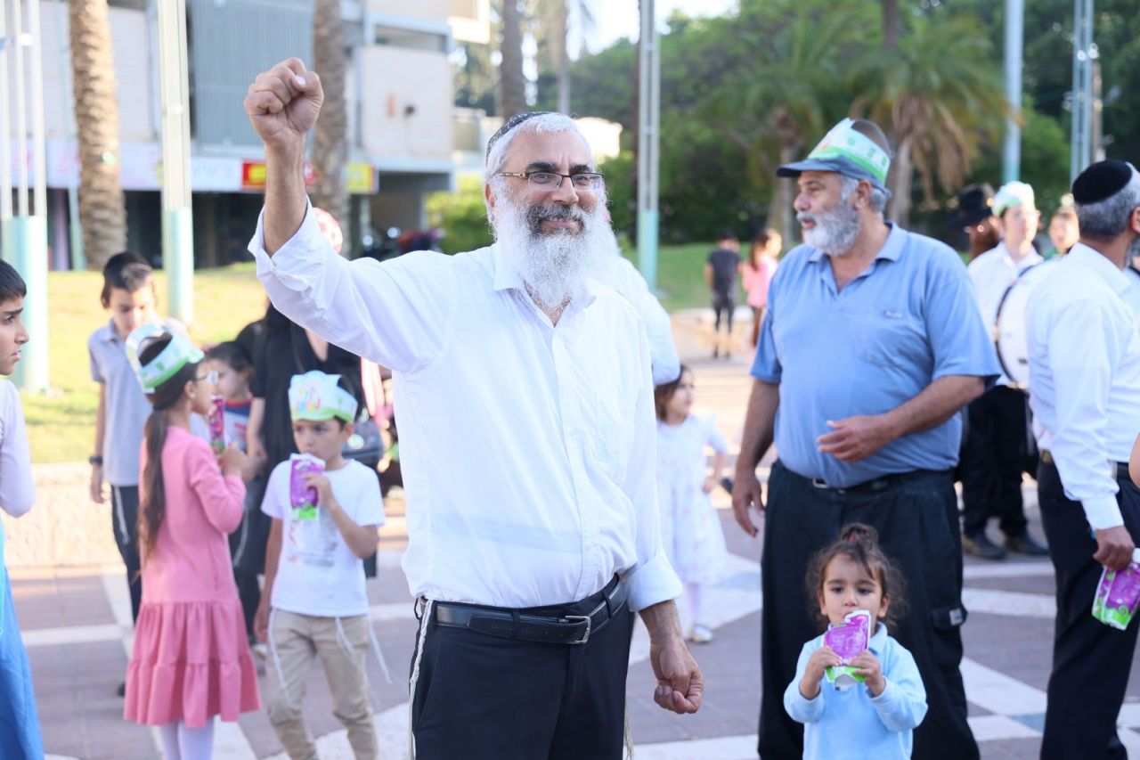 את שרביט ההנחיה נטל הרב אלעד קנטור מנהל בית חב"ד בשכונת רמת הנשיא, שסיפר על מהותו של היום הגדול, ועל הוראת הרבי שליט"א מלך המשיח לצעוד בתהלוכה ועל רבי שמעון בר יוחאי. לאחר מכן הזמין את חיילי צבאות ה', להכריז את 12 הפסוקים. חלק נכבד מאותם ילדים הינם תלמידי ובוגרי גני ומוסדות חינוך חב"ד בעיר מלווים במנהל מוסדות החינוך הרב בנצי פרישמן.