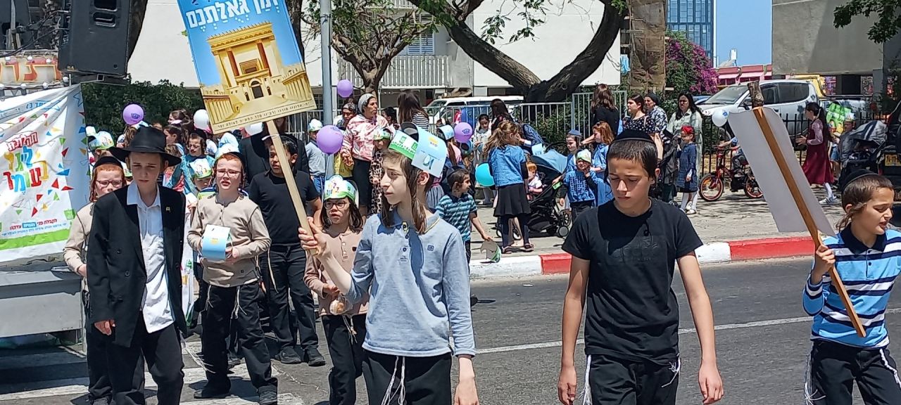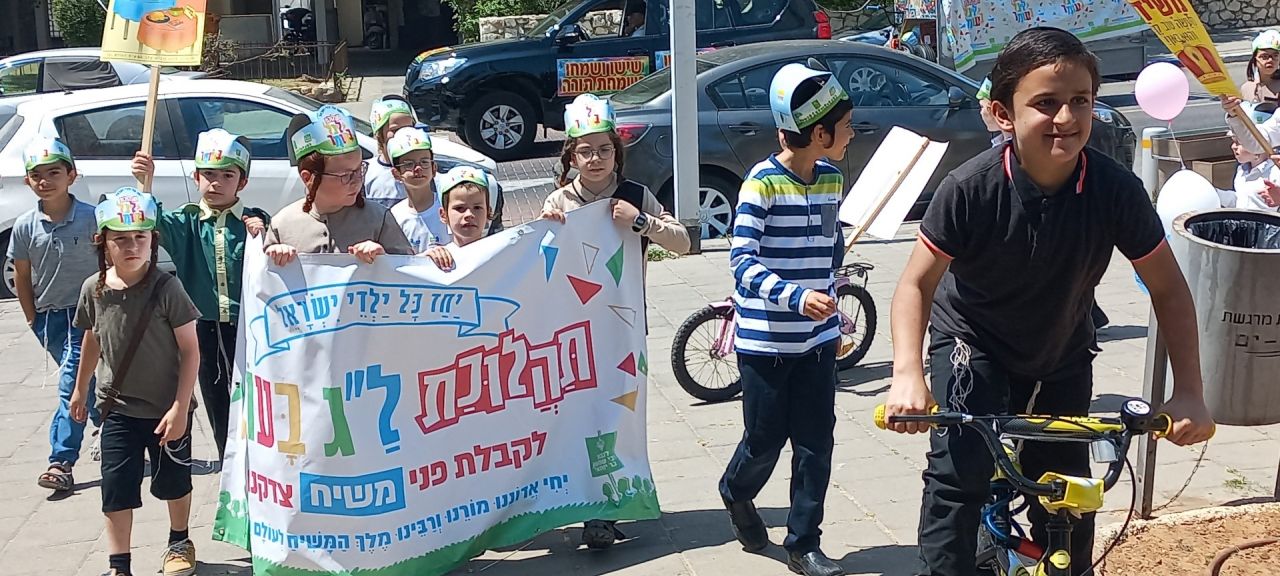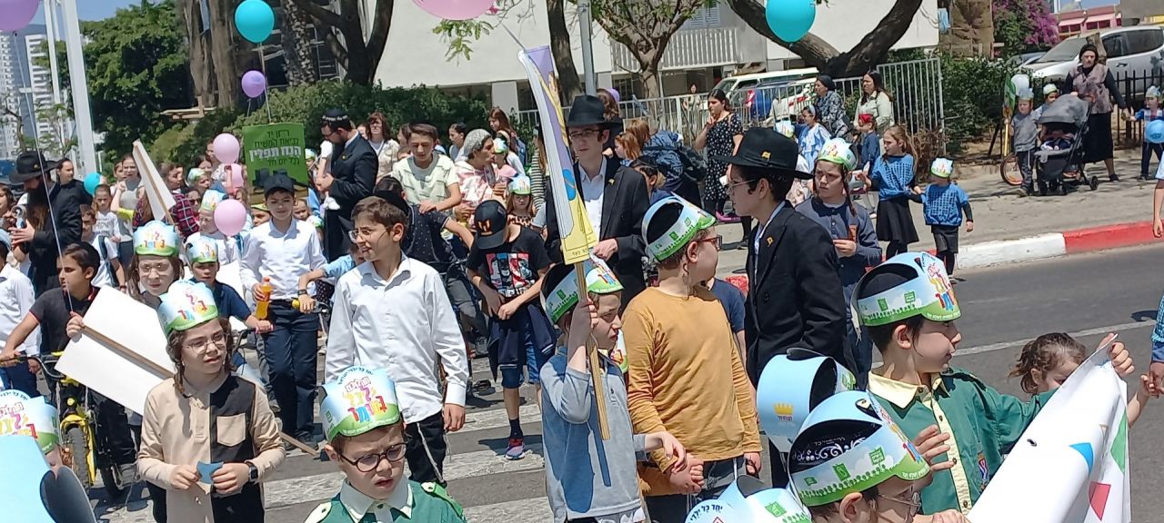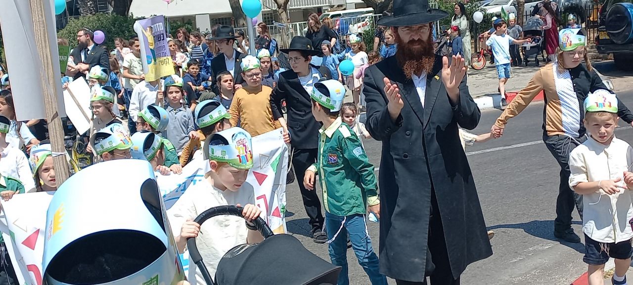 ילדי הקריה החסידית בבת ים בתהלוכה לכבוד רשב"י