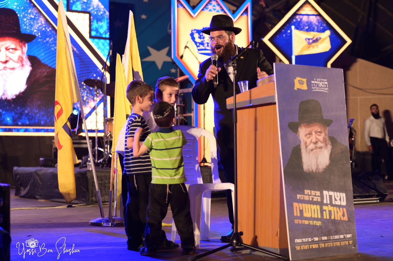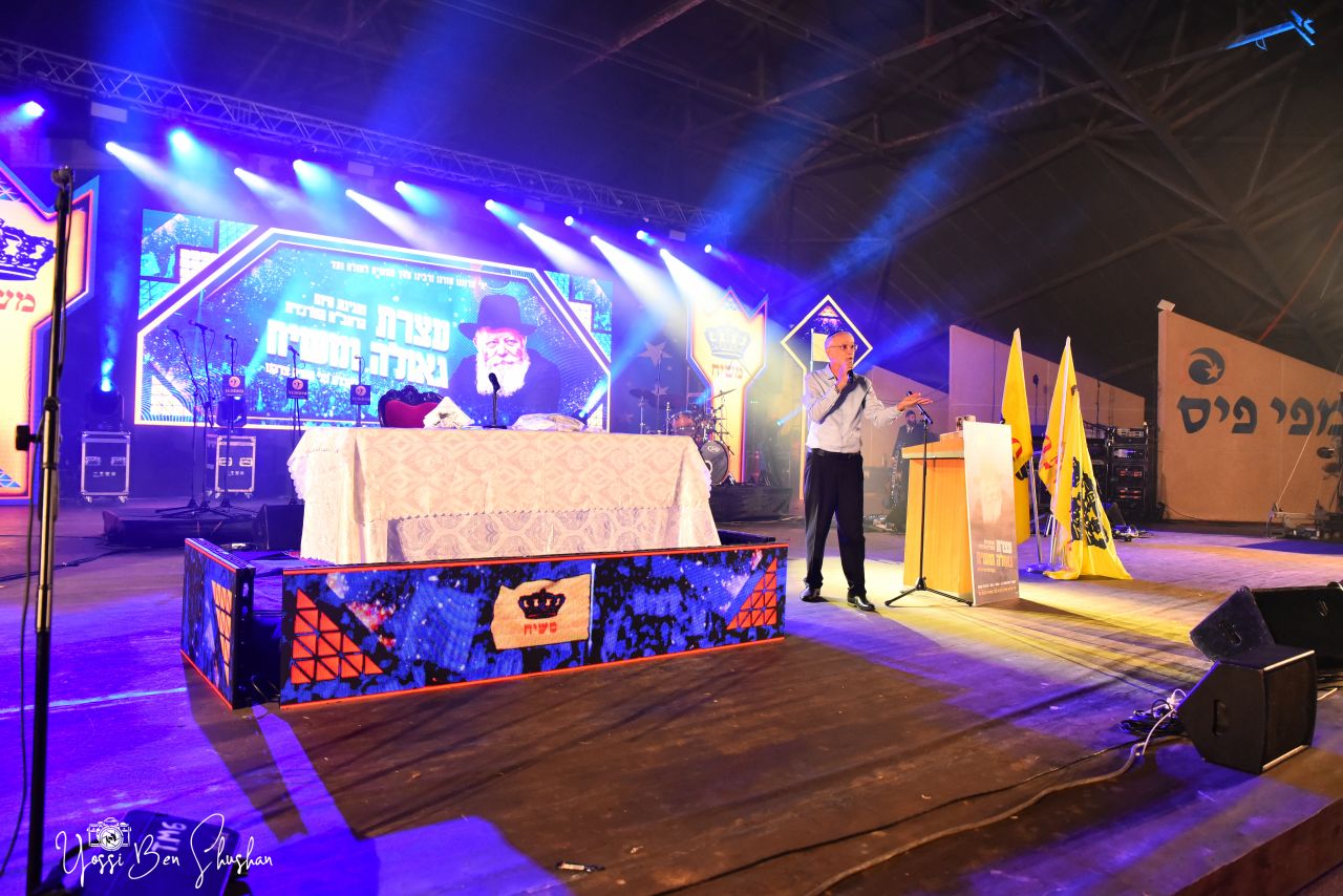 על המסכים מוקרן וידאו מיוחד מהרבי מלך המשיח שליט"א, ולאחריו עולה לדבר מר אורי בוסקילה, ממלא מקום ראש העיר בת ים. המוזיקה פורצת שוב, והקהל רוקד בעוז עם דגלי משיח והרבה שמחה.