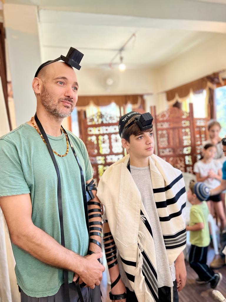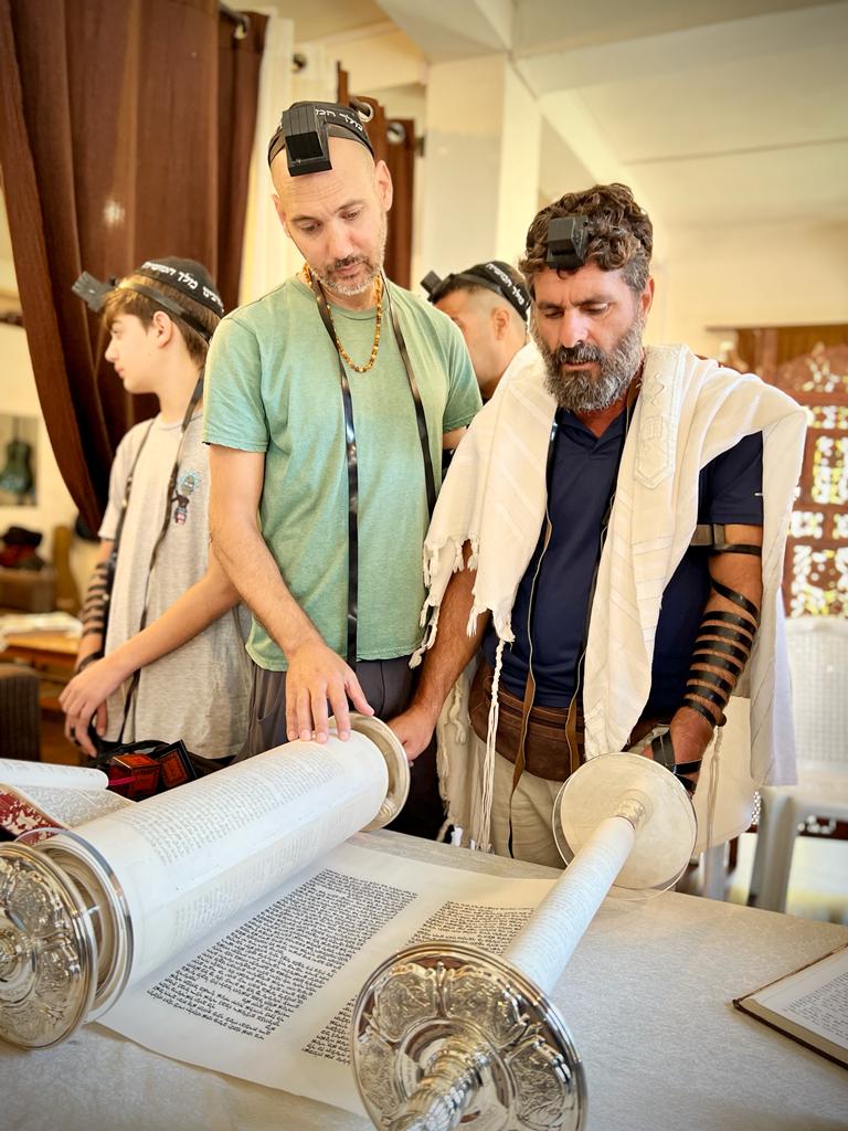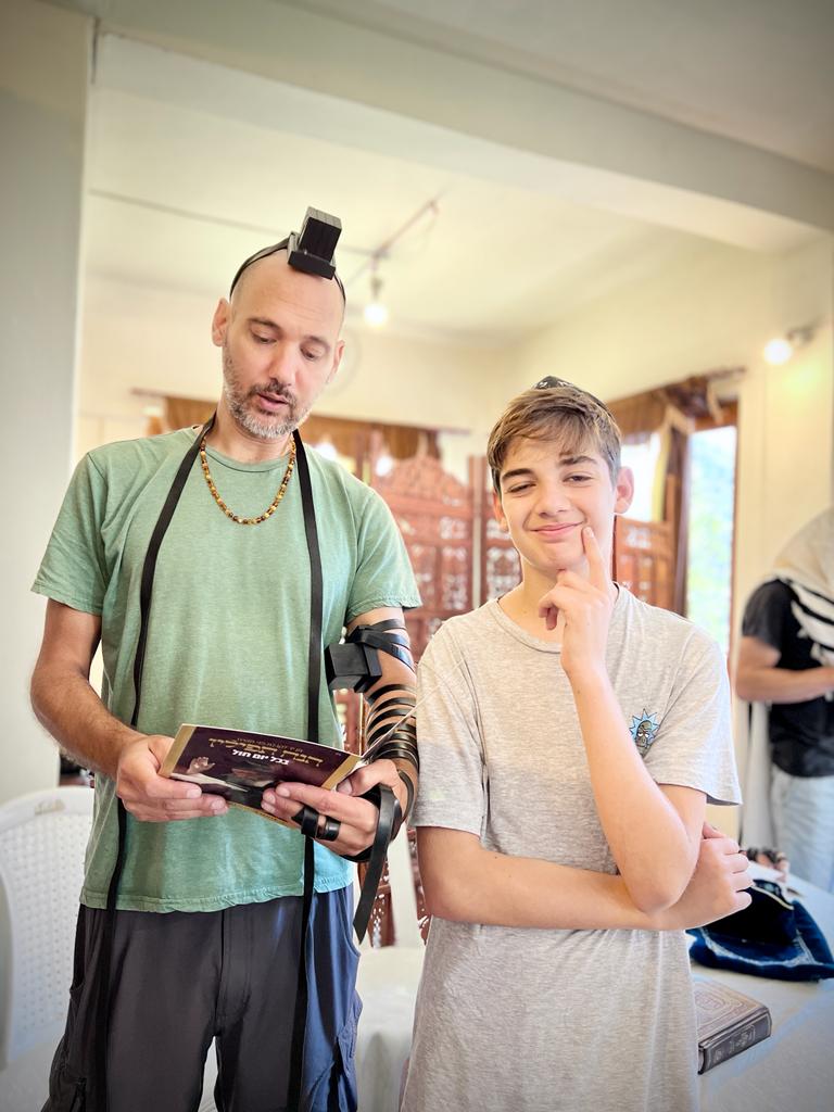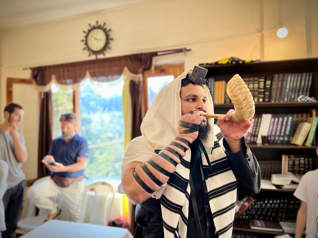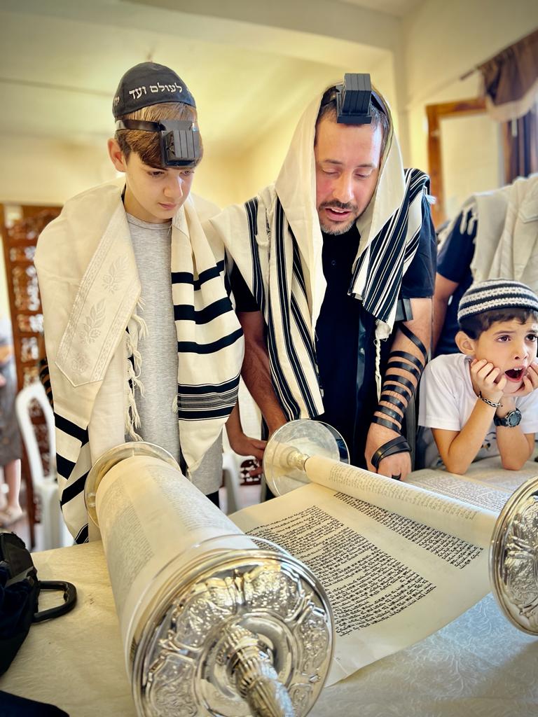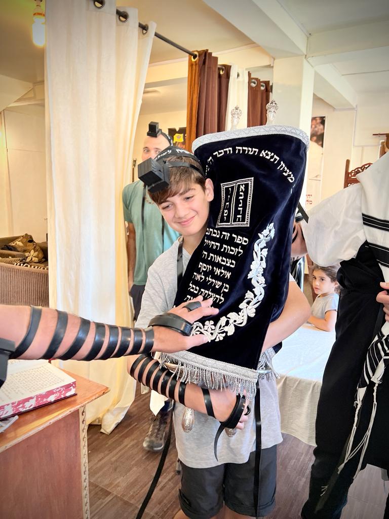 למחרת, יום חמישי, הגיע הנער עם משפחתו, הניח תפילין ועלה לתורה. סוכריות היו, גם עוגה ופופקורן. כעת הגיע הרב חגי לתקוע בשופר כמנהג חב"ד בחודש אלול.