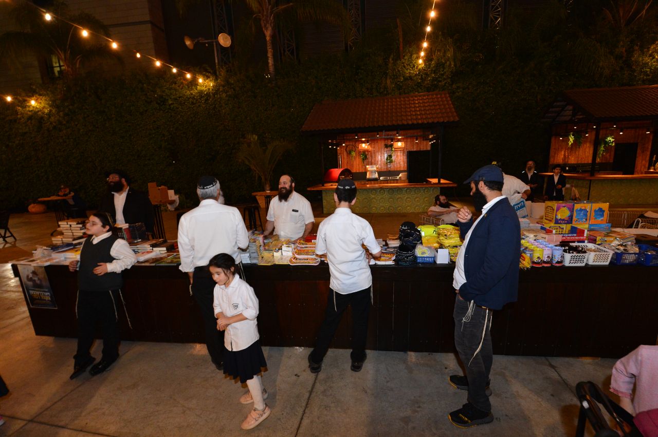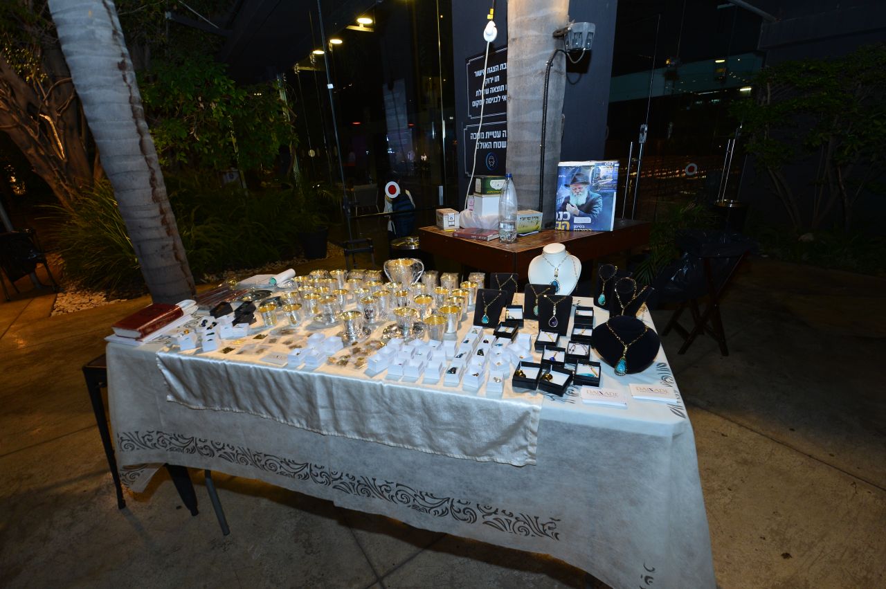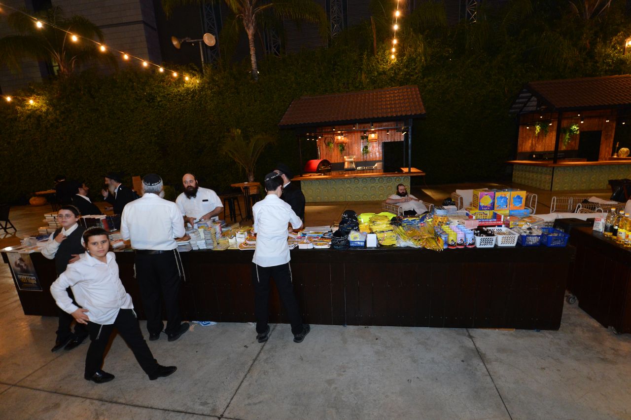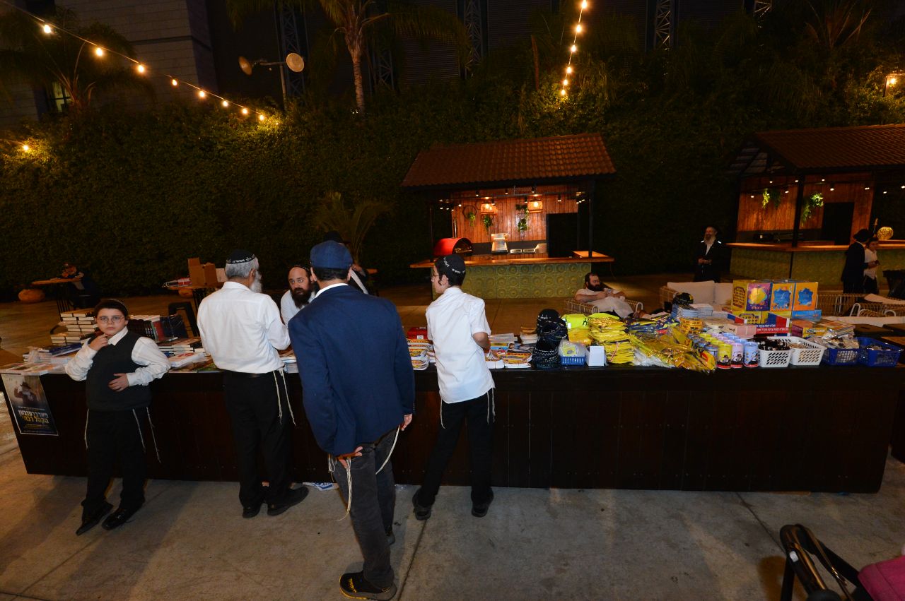 בצידי האולם הוצבו שולחנות עם שפע של שתייה ומאפים, ודוכני מכירות הציעו מגוון מוצרים להפצת משיח, כמו מדבקות, כרטיסי משיח, כיפות "יחי", ספרי קודש ועוד.
