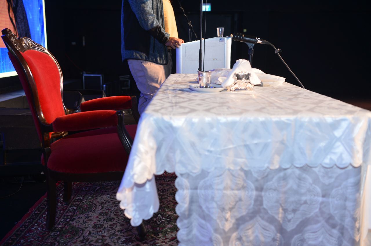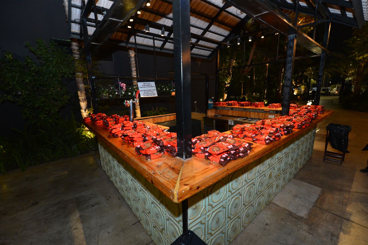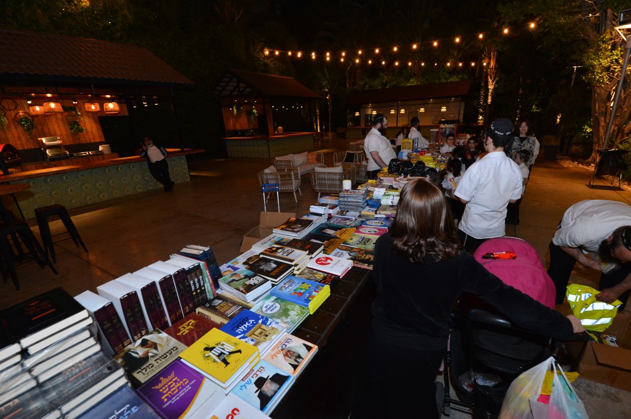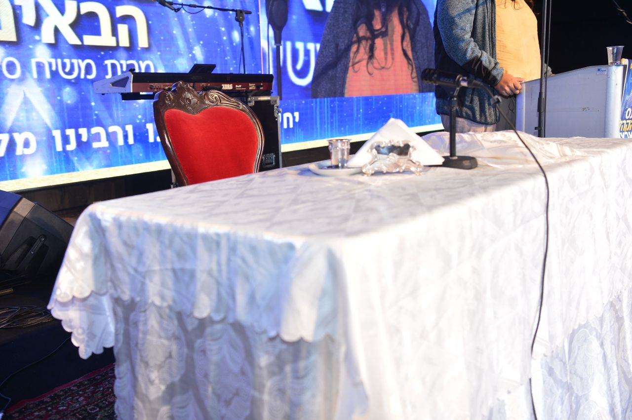 בצידי האולם הוצבו שולחנות עם שפע של שתייה ומאפים, ודוכני מכירות הציעו מגוון מוצרים להפצת משיח, כמו מדבקות, כרטיסי משיח, כיפות "יחי", ספרי קודש ועוד.