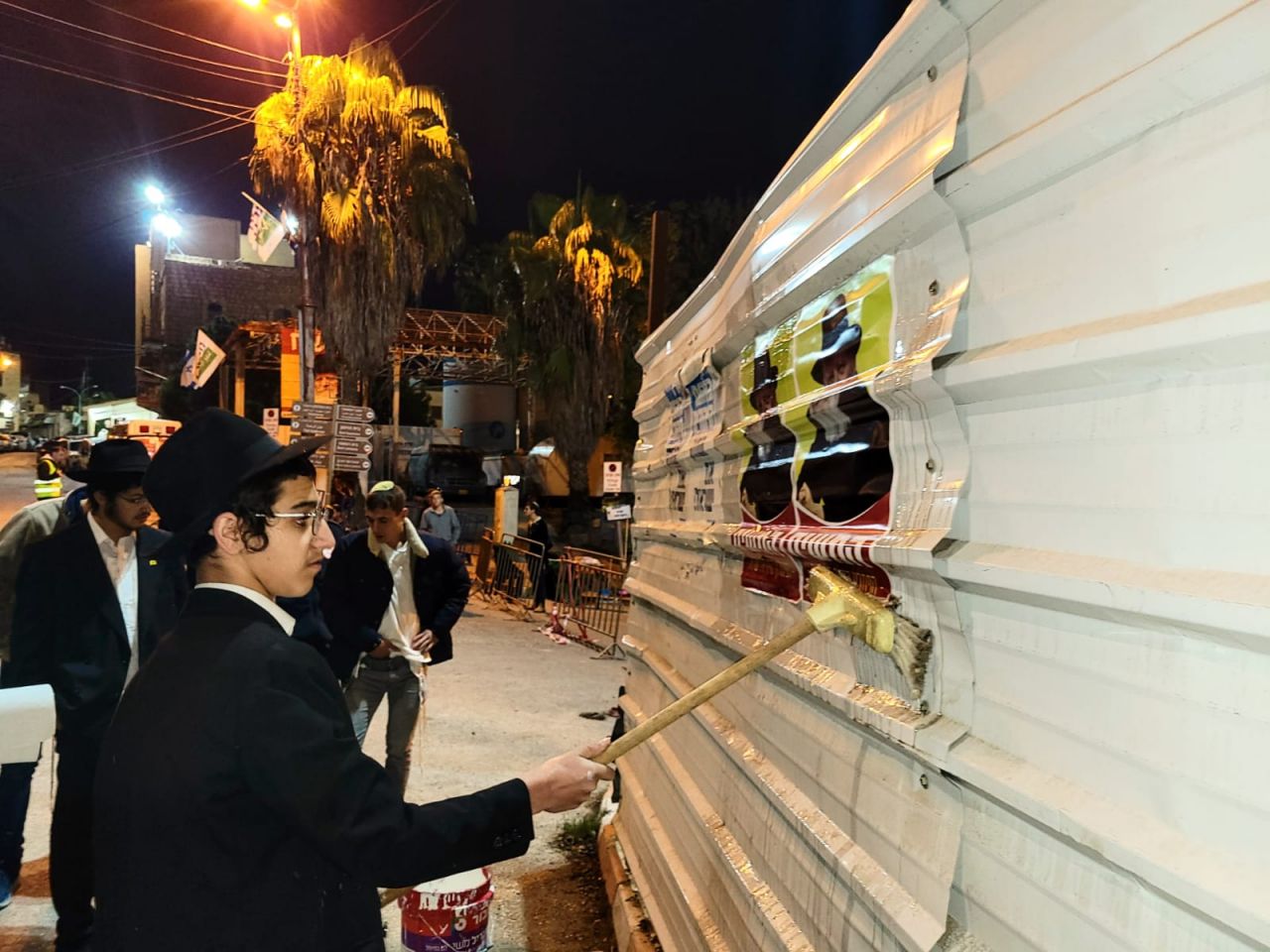 קודם לכן נתלו תמונותיו של הרבי מלך המשיח שליט"א ברחבי היישוב היהודי עם הכיתוב "משיח".