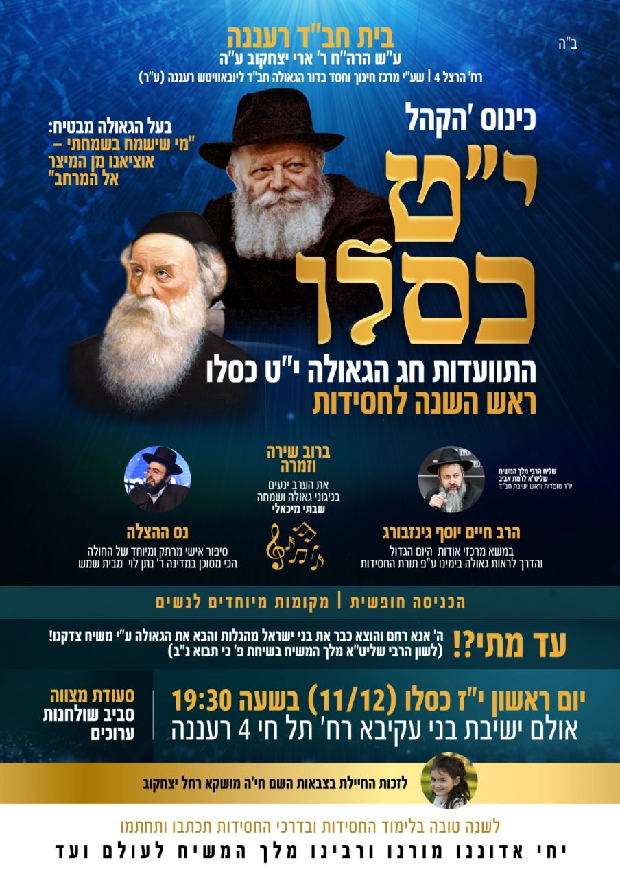למעלה ממאתיים איש הגיעו להתוועדות י"ט כסלו ברעננה בישיבת בני עקיבא.