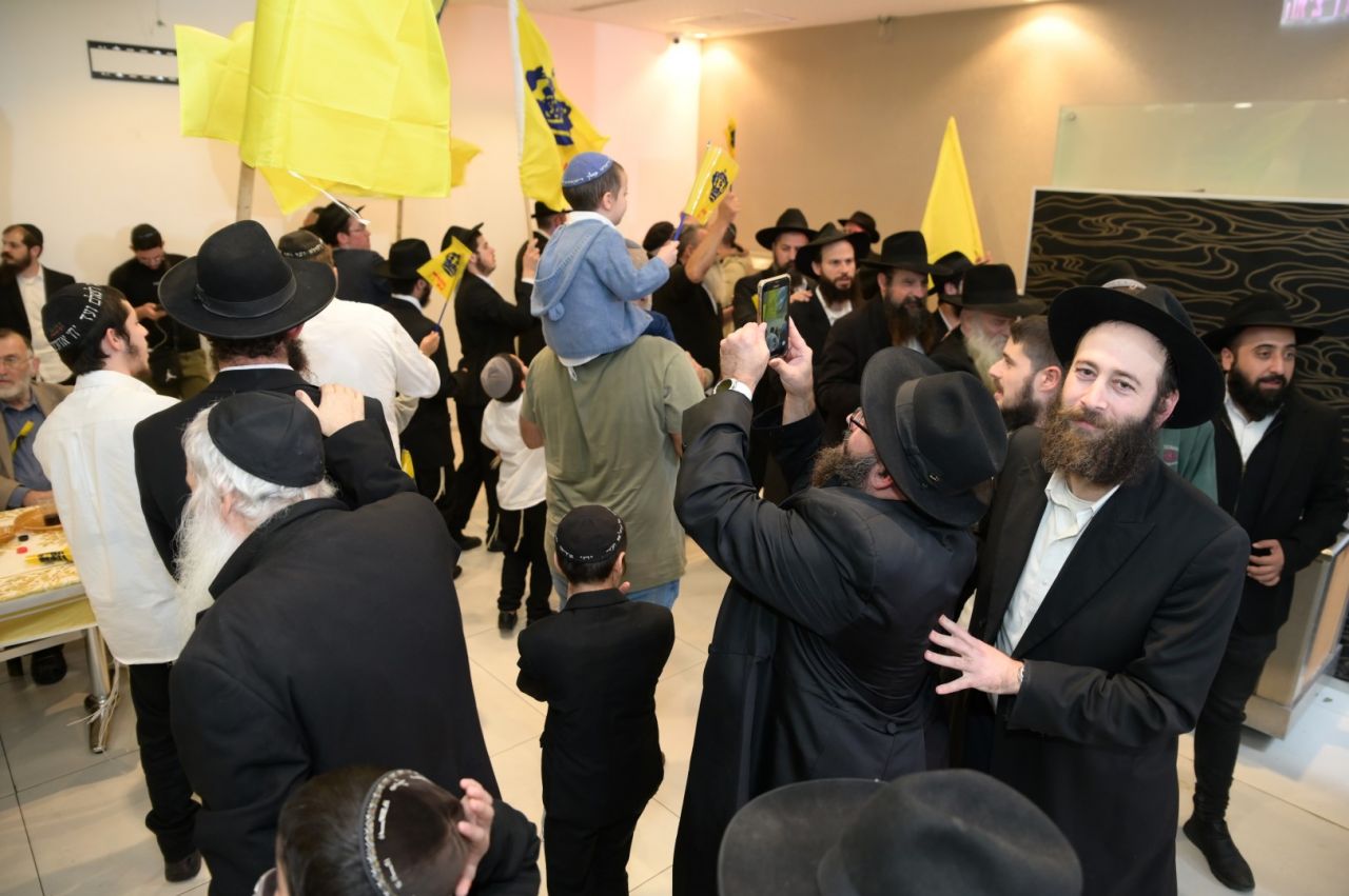 ח"כ אלי דלל מברך את הקהל ומספר על פעילותו בכנסת לאורו של הרבי שליט"א מלך המשיח. בסיום דבריו הוא מקבל את חוברת "המנהיג" על הרבי מלך המשיח, כשמנחה הערב מזכיר לכולם: "מנהיג אמיתי – יש אחד".