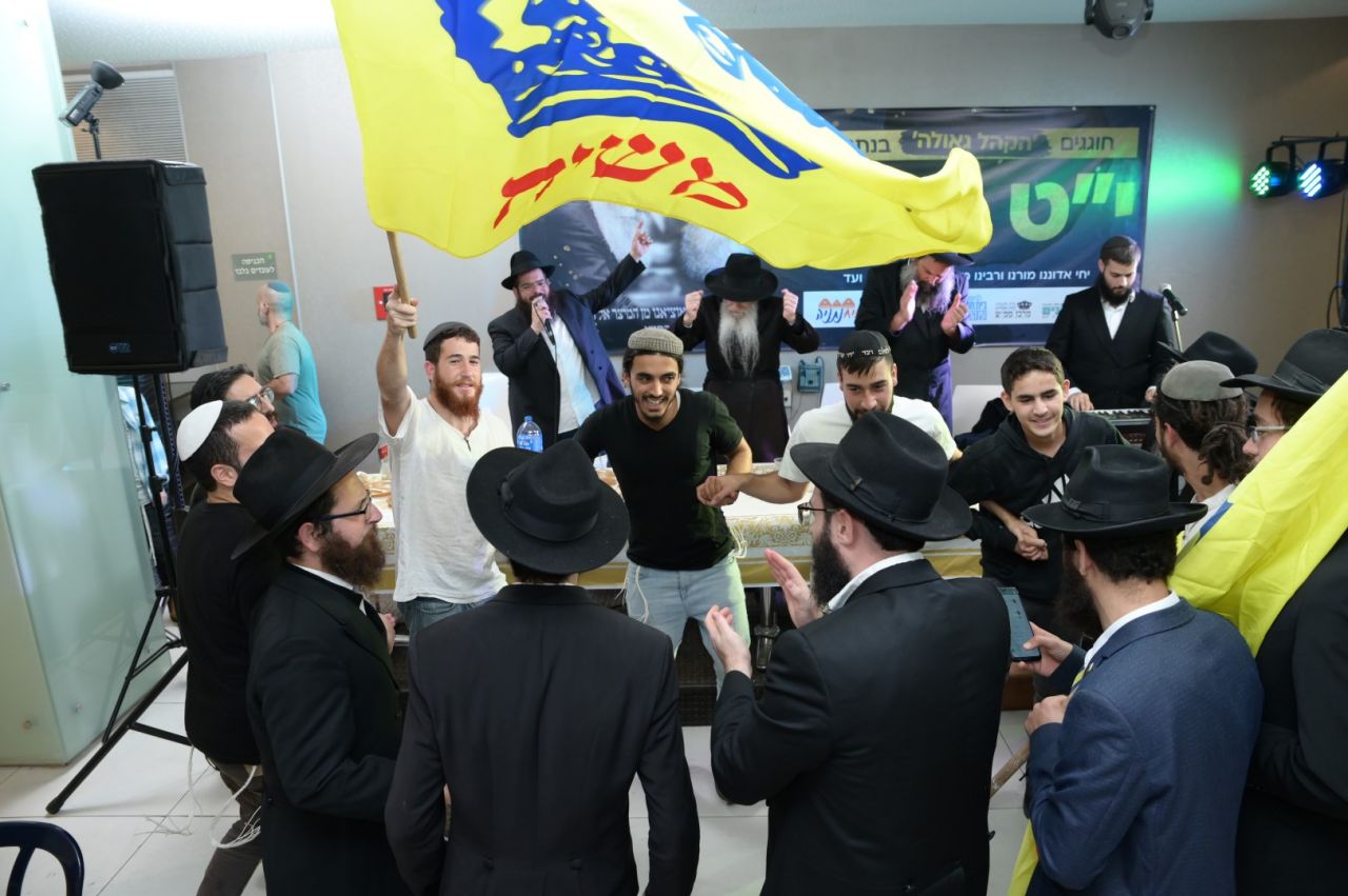 בין לבין פוצח הקהל בניגוני התעוררות וריקודי שמחה בניצוחו של אמן הקלידים דוידי נחשון.