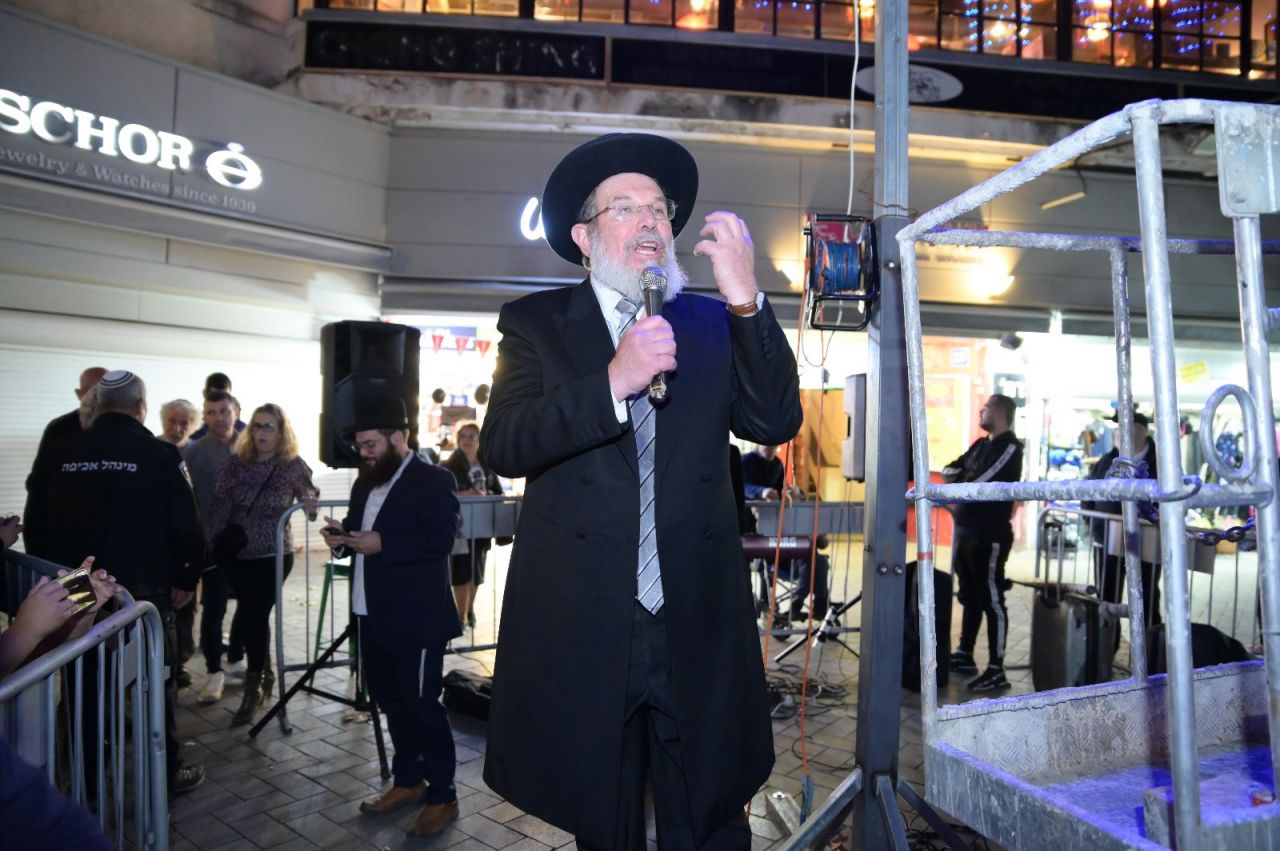 ההדלקה נערכה על גבי מנוף שהרים חבר המועצה לגובה, יחד עם מנחה המעמד ר׳ אלעזר פרץ שהזכיר לנוכחים את משמעותה של שנת ״הקהל״.