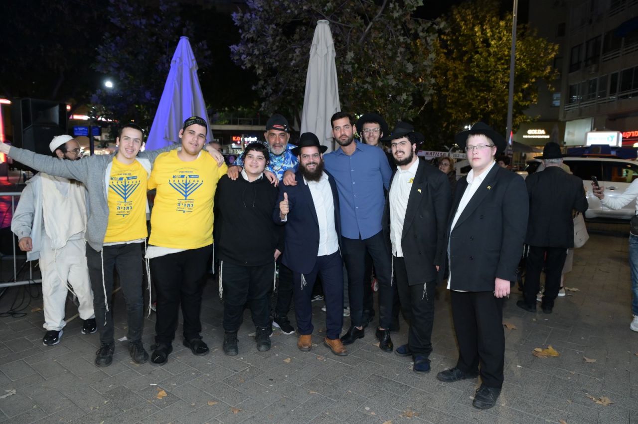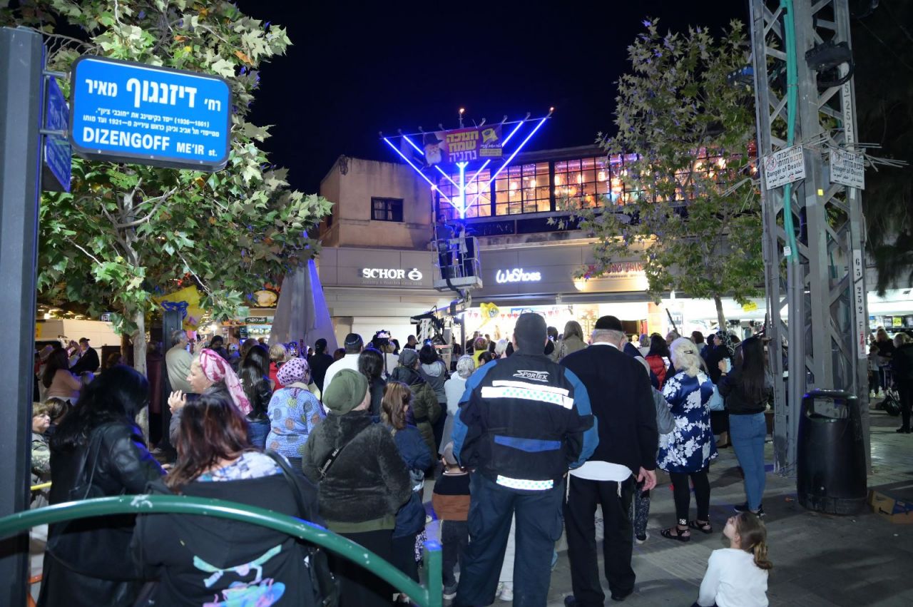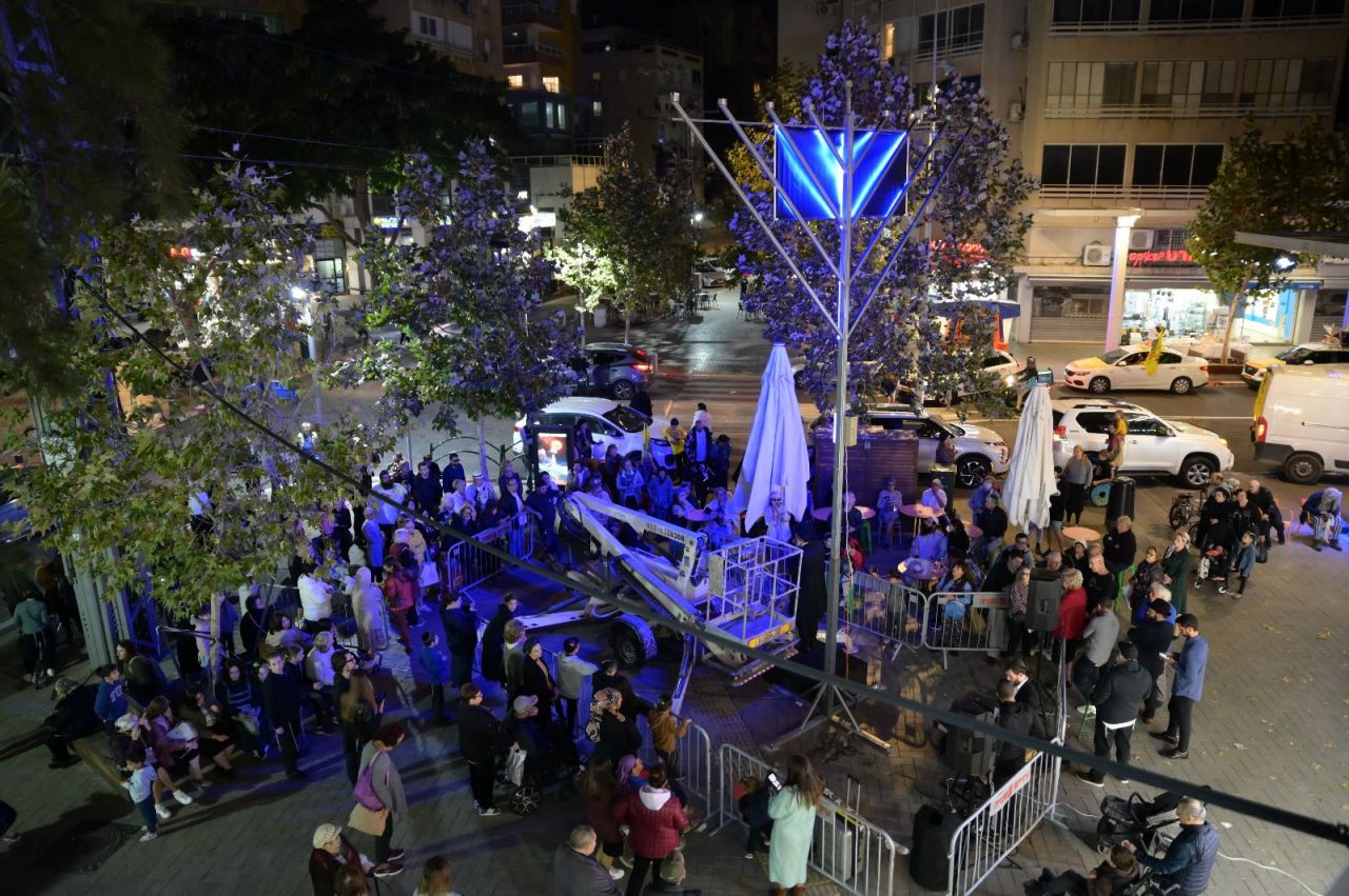 מאות משתתפים בהם אנשים, נשים וילדים השתתפו בהדלקת הנר הראשון של חנוכה, עם החנוכיה הגדולה באזור השרון (שמונה מטר).