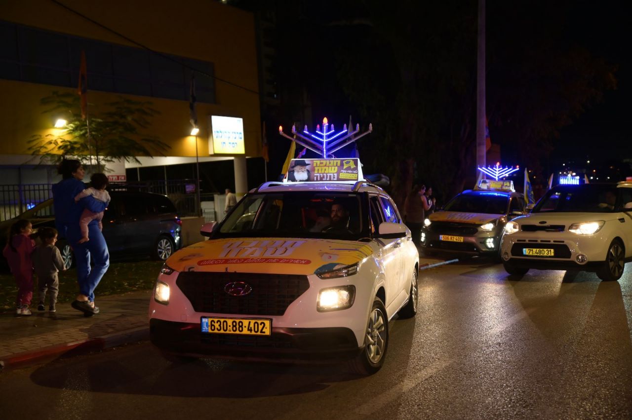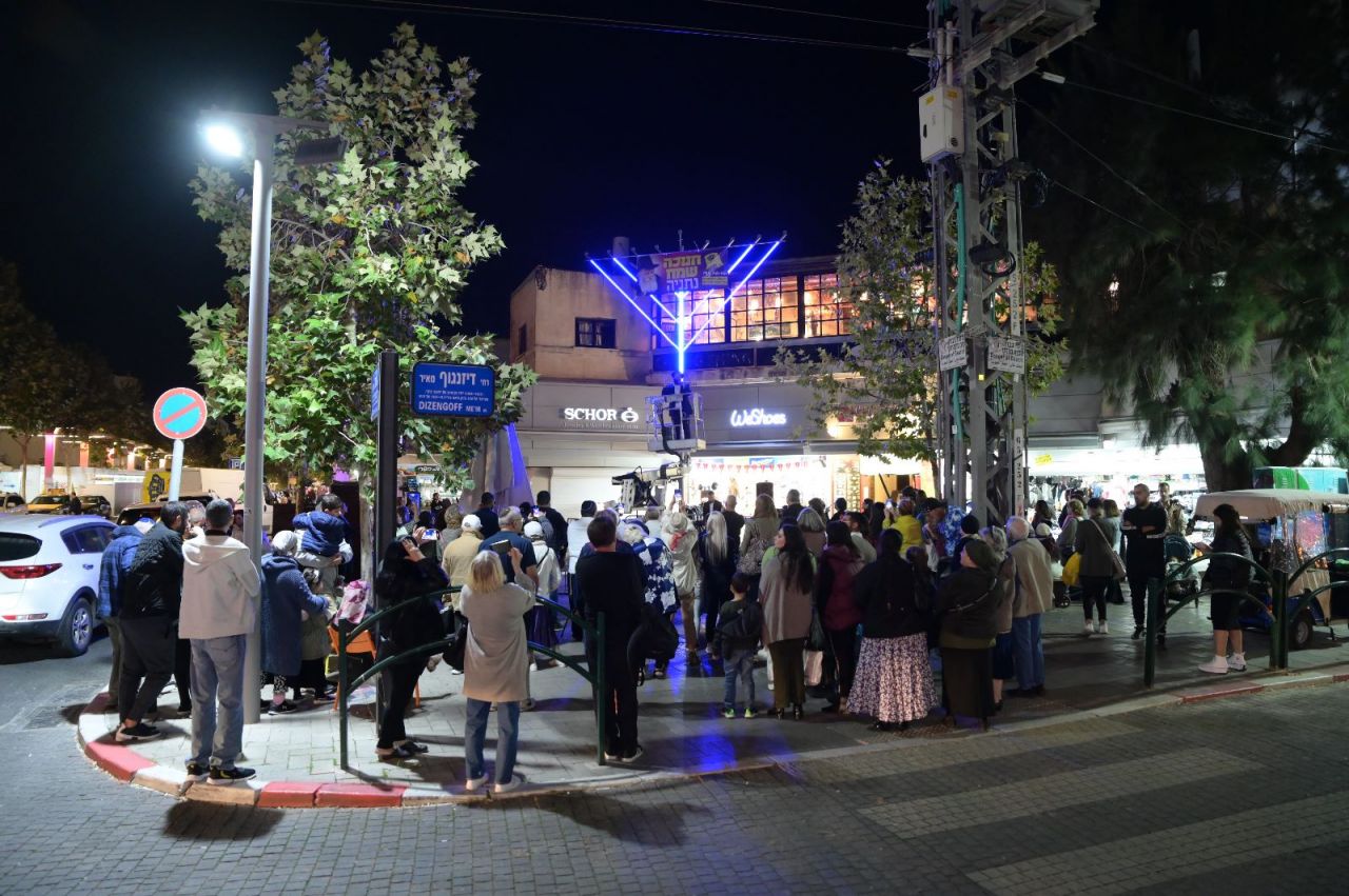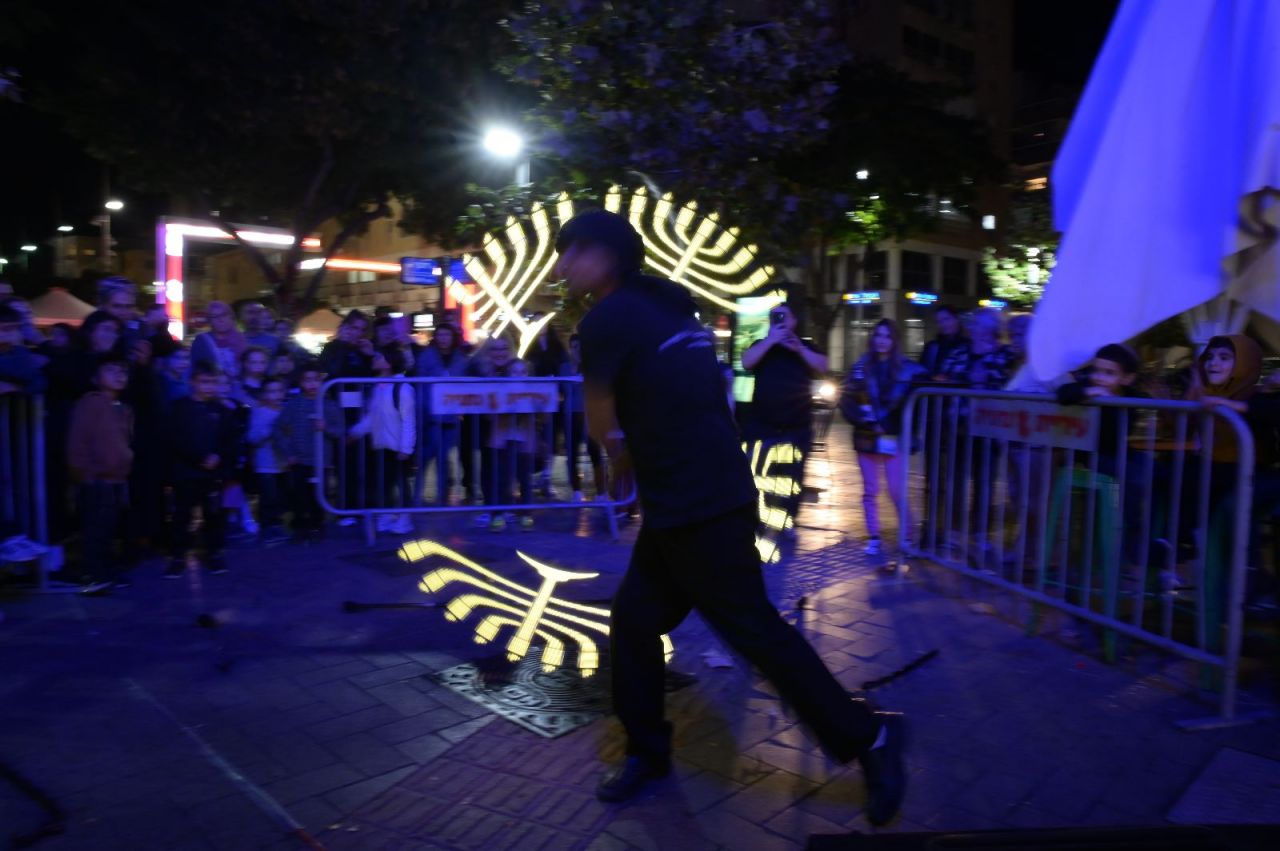 מאות משתתפים בהם אנשים, נשים וילדים השתתפו בהדלקת הנר הראשון של חנוכה, עם החנוכיה הגדולה באזור השרון (שמונה מטר).