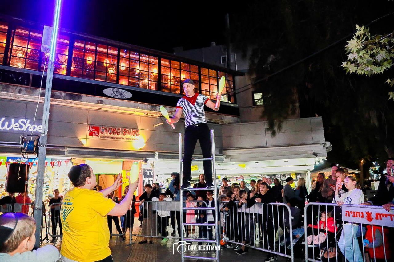 באירוע המרכזי היה אף מופע להטוטים מיוחד וריקודים ברחובה של עיר לקול שירי חנוכה.