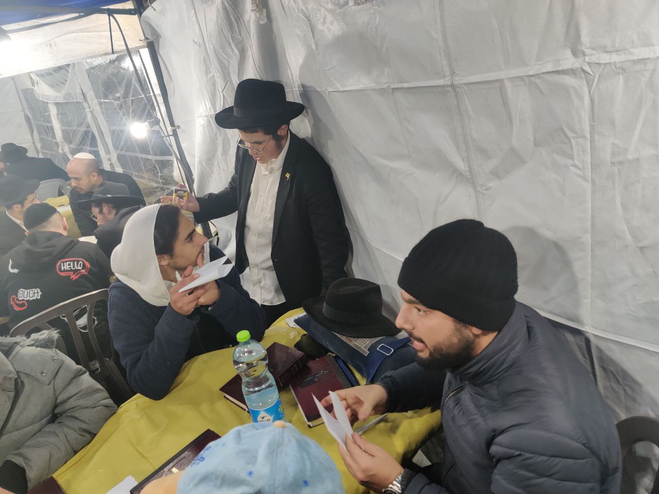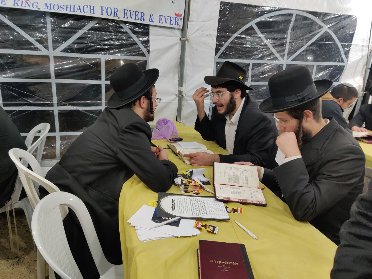 לצד השולחנות עמדו בחורי ישיבות מישיבות חב"ד, שעזרו לכותבים הרבים עם הגישה לכתיבה, או להבנת התשובה.