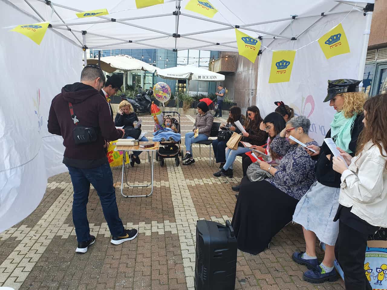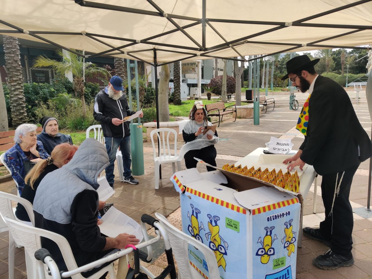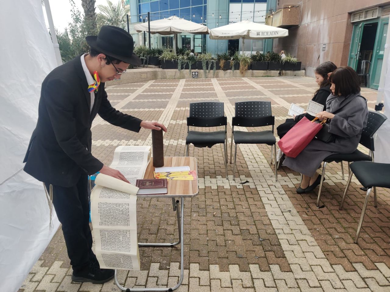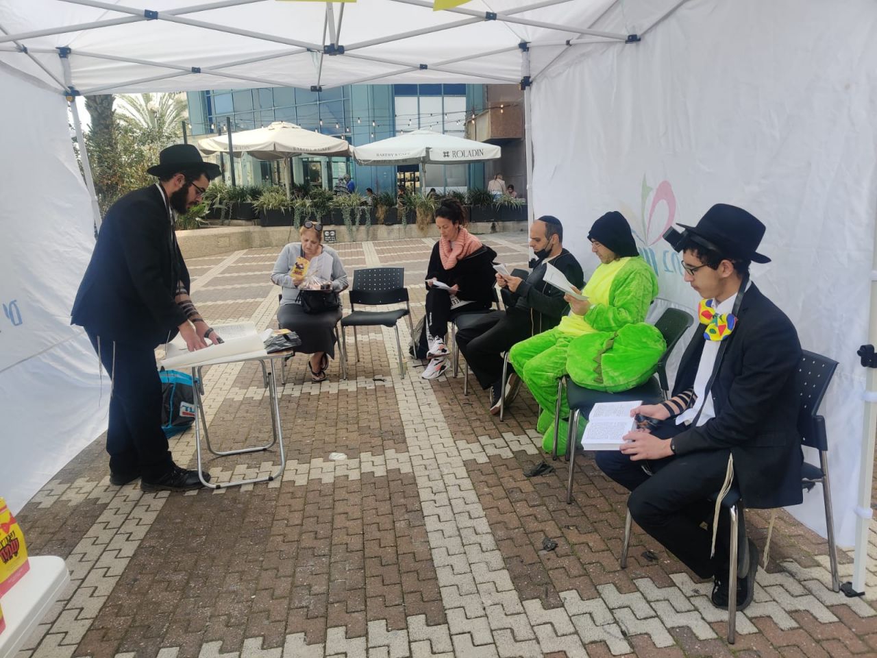 בית חב״ד קניון בת ים פתח באירגון השליח הרב אבירז בן מתתיהו דוכנים המזמינים את הציבור לשמוע את קריאת המגילה ללא הפסקה במקום חולקו משלוחי מנות רבים, בעזרת השליח הרב מענדי גבאי והשליח הרב מנחם רחימי.
