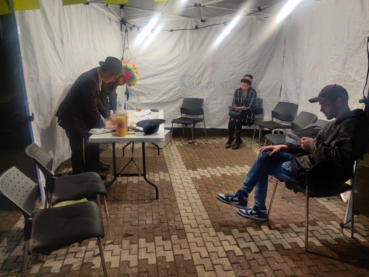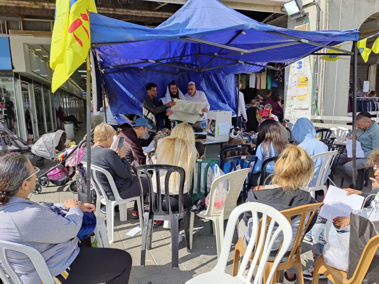 את הדוכן ב"כיכר-המצבה" ניהל השליח הרב אליעזר פייגין תוך שהוא מזמין את הקהל לשמוע קריאת מגילה ולקיים את מצוות החג עם בית חב״ד. במקום נערכו קריאות ללא הפסקה וחולקו משלוחי מנות רבים לתושבים.