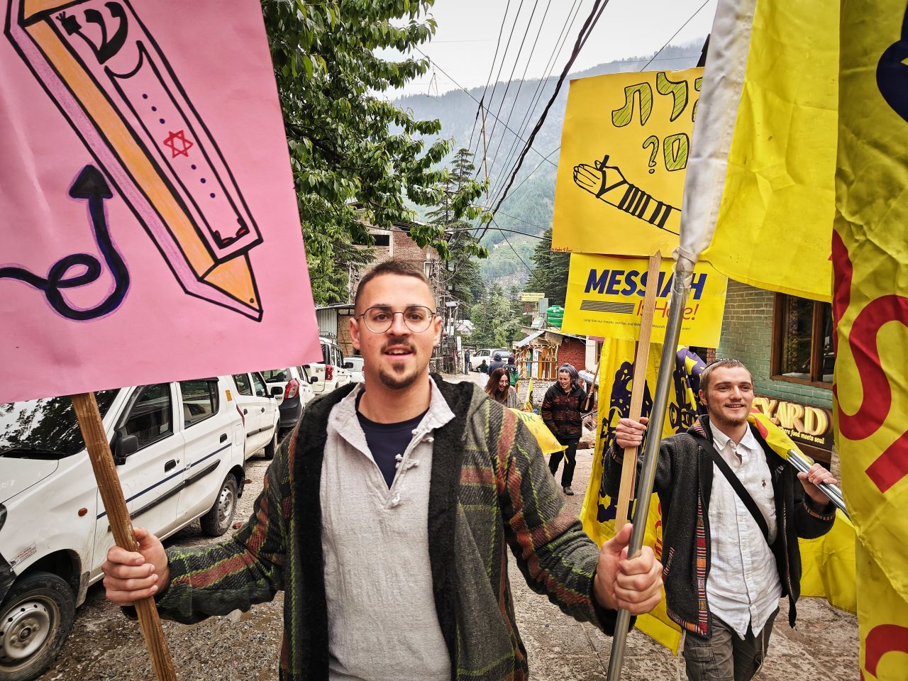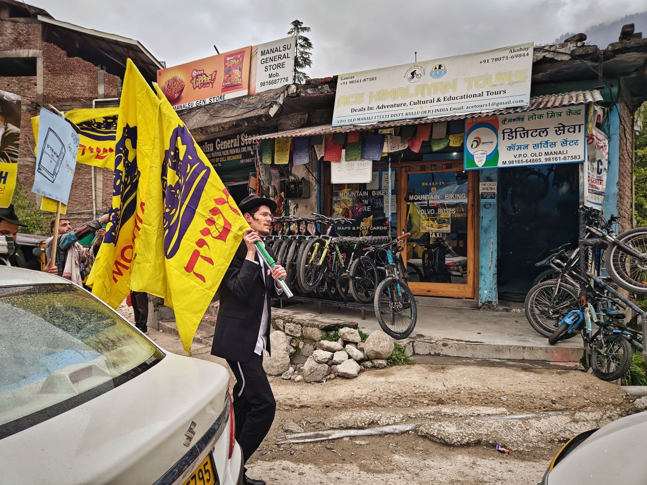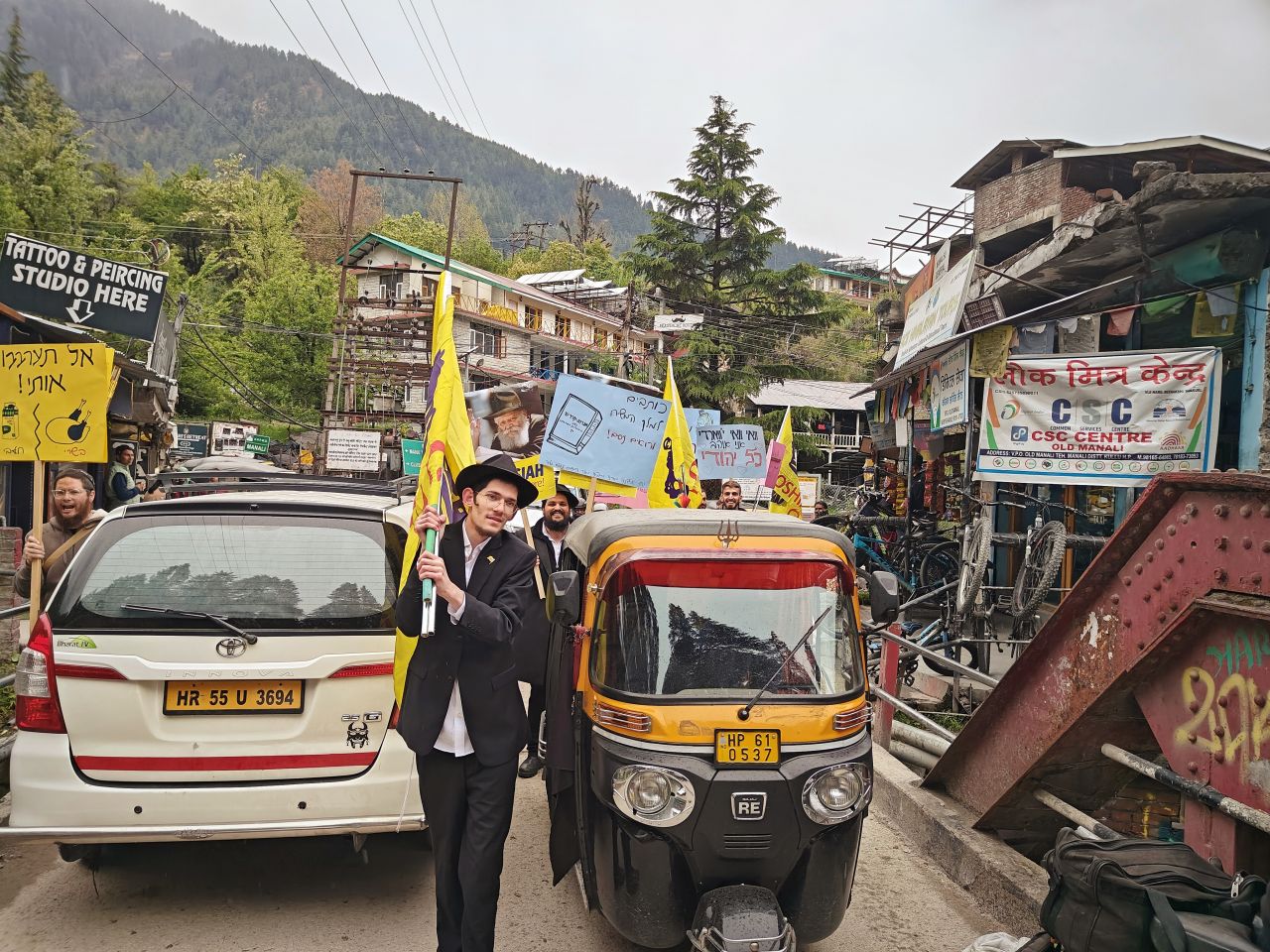 ההכנות לל"ג בעומר בעיירה מנאלי שבצפון הודו בניהולם של השלוחים חגי וגאולה מגן החלו כבר בשבוע שעבר. מטיילים שנכנסו לבית חב"ד סייעו בקישוט וציור השלטים לתהלוכה, והשלוחים עסקו בפרסום ברחבי העיירה על התהלוכה והדלקת המדורה.