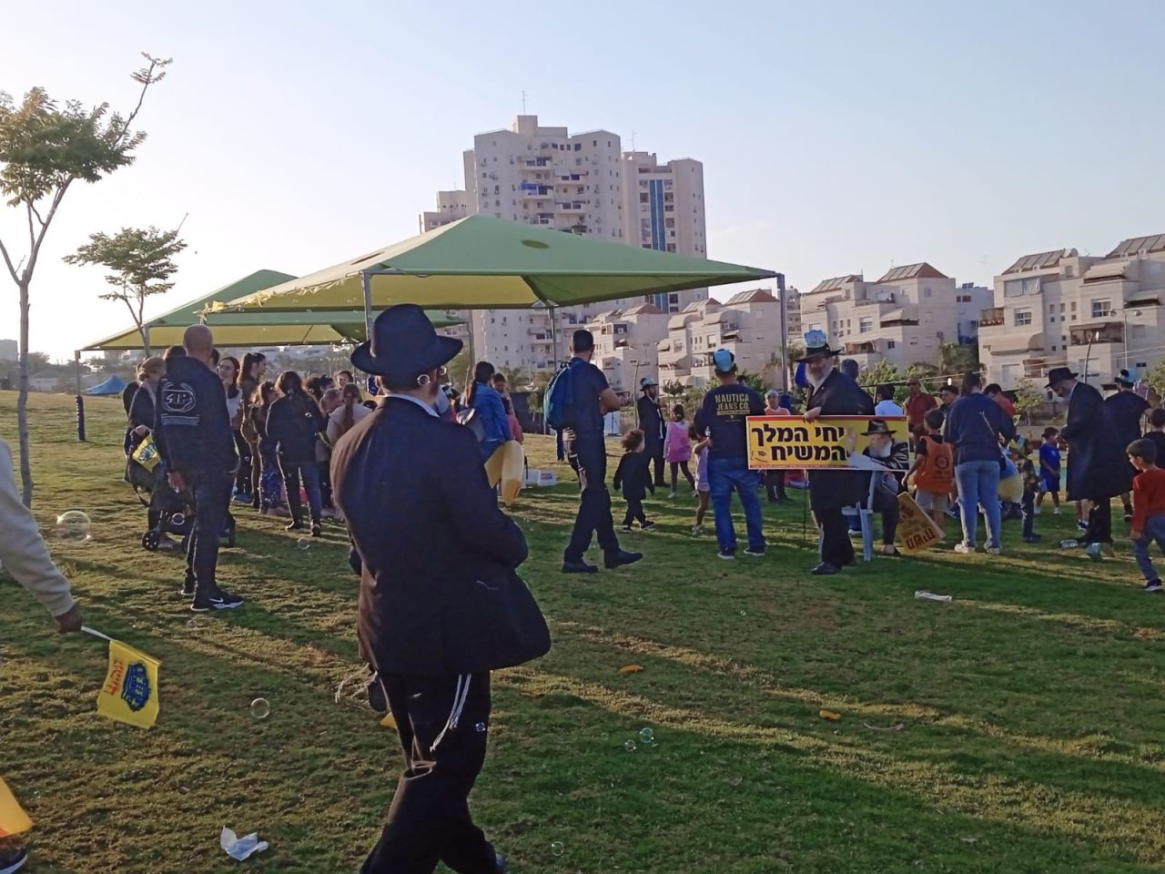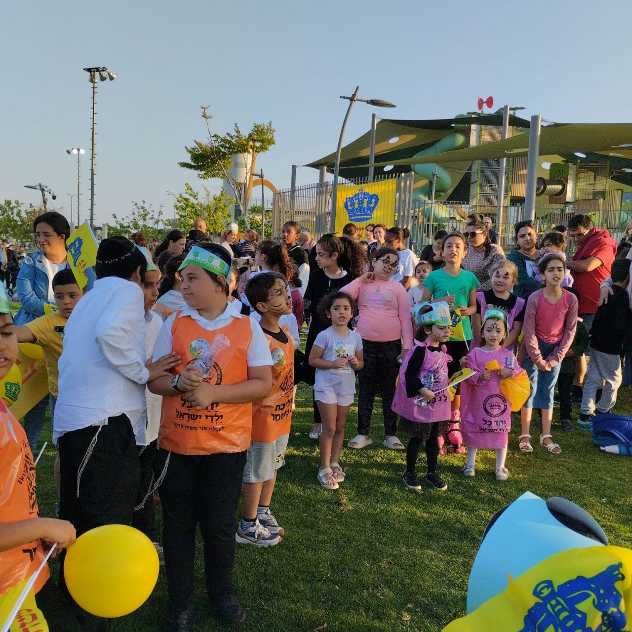 הילדים התכנסו בפארק האגדות - פארק ענק המשתרע על עשרות דונמים ויצאו לתהלוכה ססגונית עם שלטים ודגלי משיח בשטח הפארק הענק כשמכריזים יחד את הפסוקים.