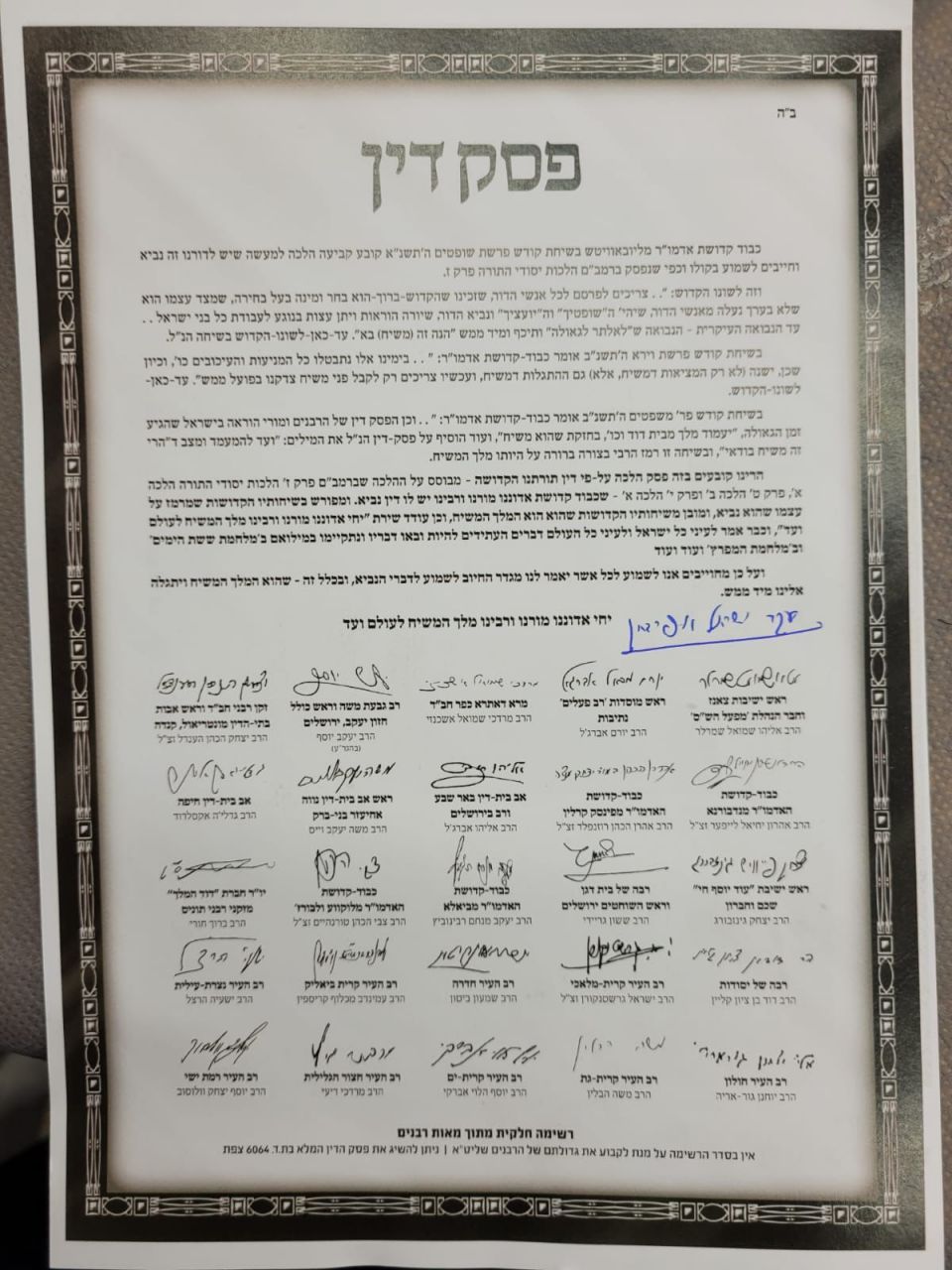 במהלך ההתוועדות הצטרף ״הרנטגן״ למאות הרבנים מהארץ ומהעולם לפסק הדין ע״פ תורה שהרבי שליט״א מליובאוויטש הוא המלך המשיח וחתם אף הוא על פסק זה בעצמו.