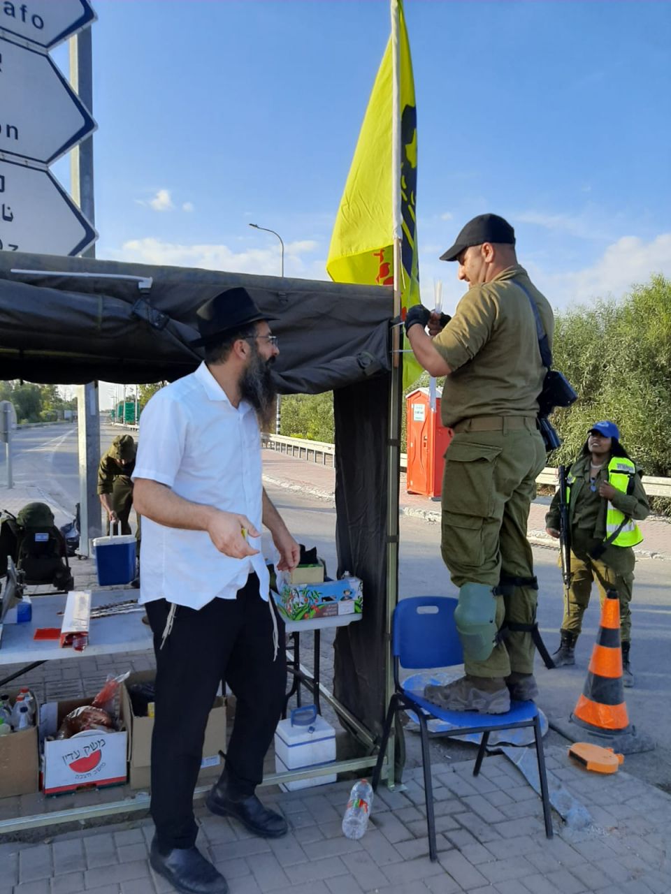פעילי חב"ד בגילה א' הולכים מידי שבוע, ומספר פעמים בשבוע לשמח את החיילים בגבול עזה ובישובי העוטף. הדגש על חלוקת מאות ערכות הגנה ושמירה לכל חייל הכללת את החת"ת, כרטיסי משיח עם תפילת הדרך לכל חייל. קופות צדקה בכל הטנקים, הנגמשים ורכבי השיריון, מאות הנחות תפילין ואותיות בספר התורה.