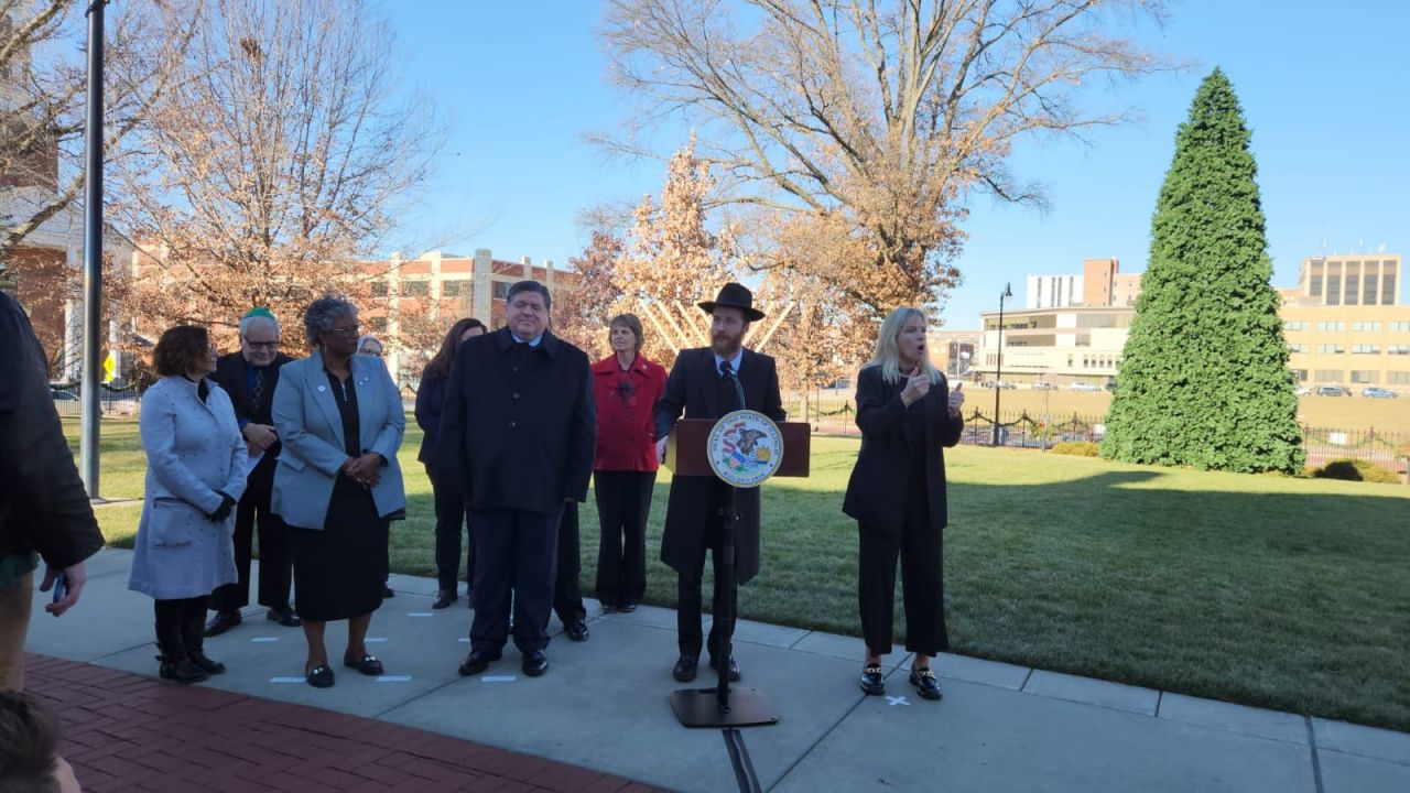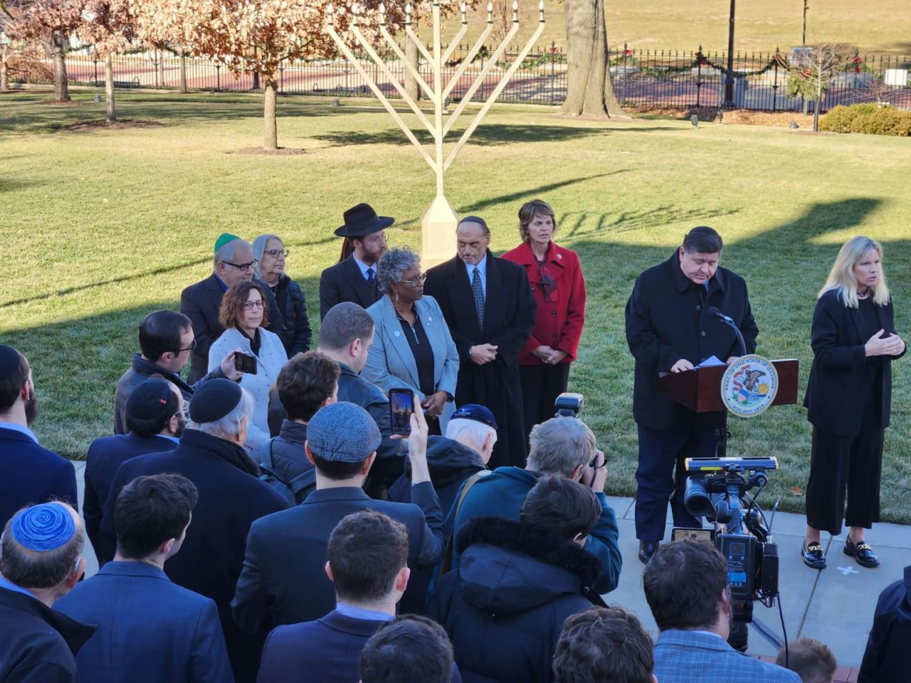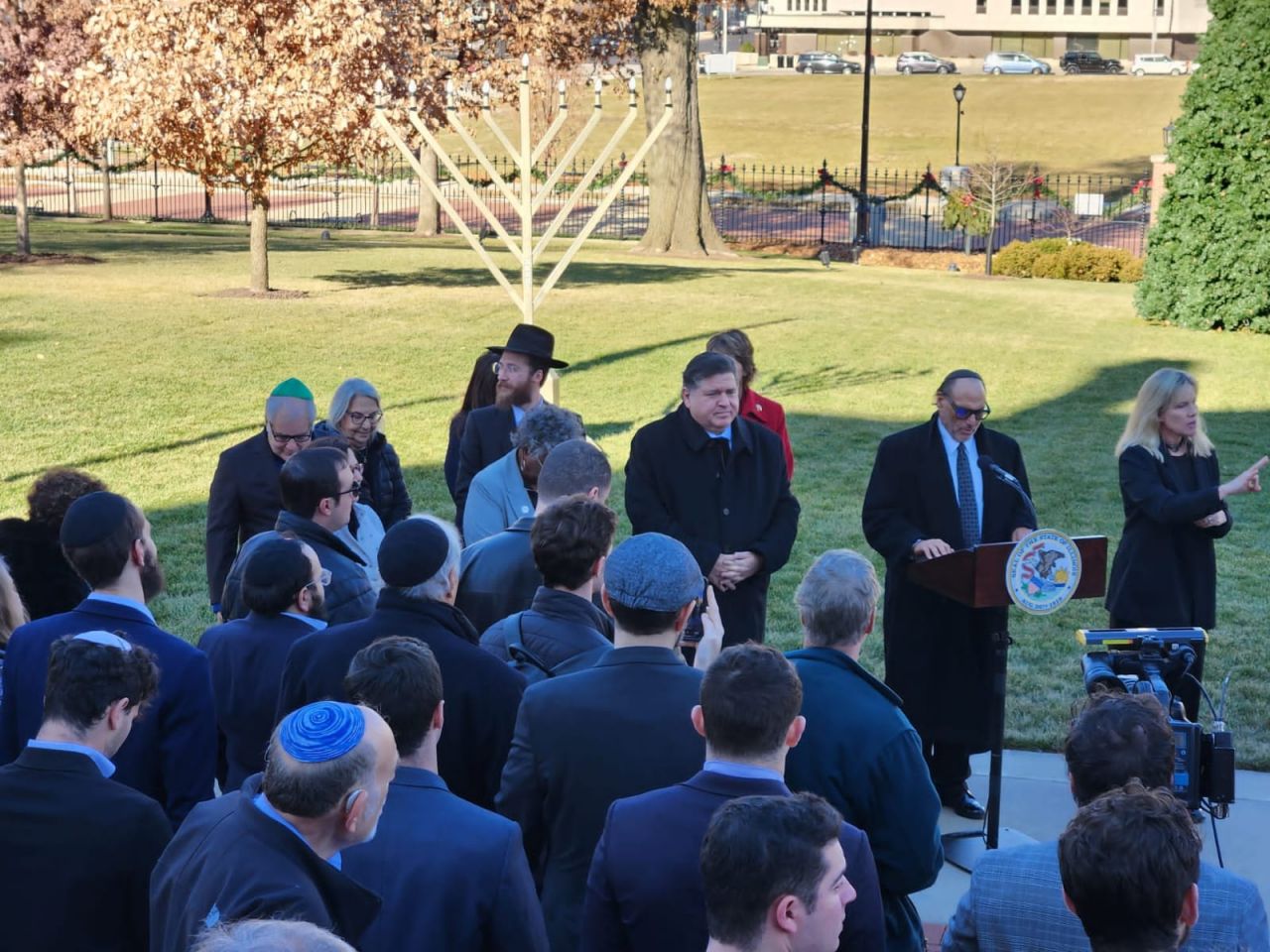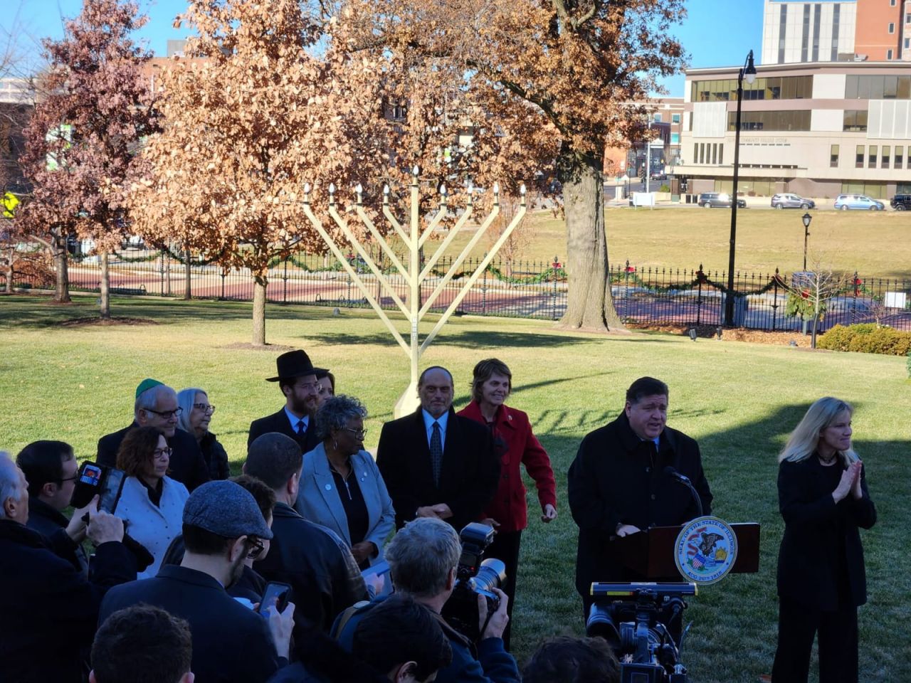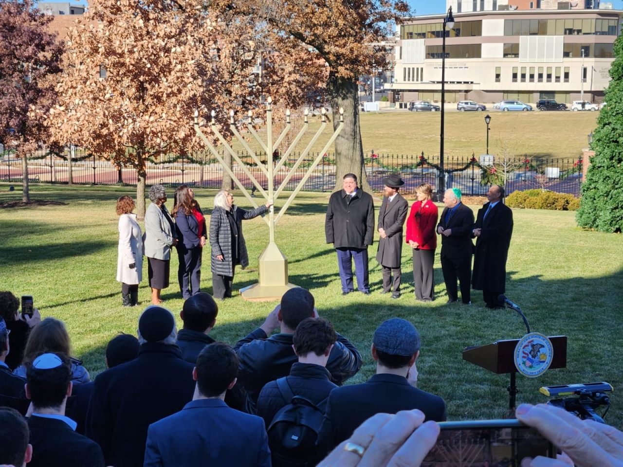אמש נערך טקס הדלקת חנוכייה בעיר ספרינגפילד במדינת אילינוי באצרות הברית, במעמד נכח מושל המדינה מר ג'יי רוברט פריצקר, שליח הרבי שליט"א מלך המשיח הרב מענדי טורין נשא דברים על מעלת חג החנוכה ועל קבלת המלכות: "חנוכה שמח, איזה זכות להיות כאן עם ידידי המושל ג'יי רוברט פריצקר. תודה לכל המארגנים. כיף לראות את הסטודנטים שהגיעו מהאוניברסיטה בשממפיין.