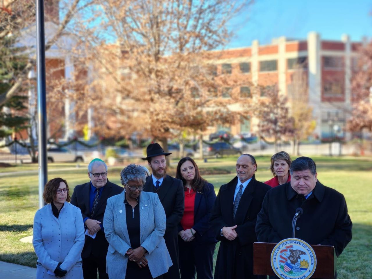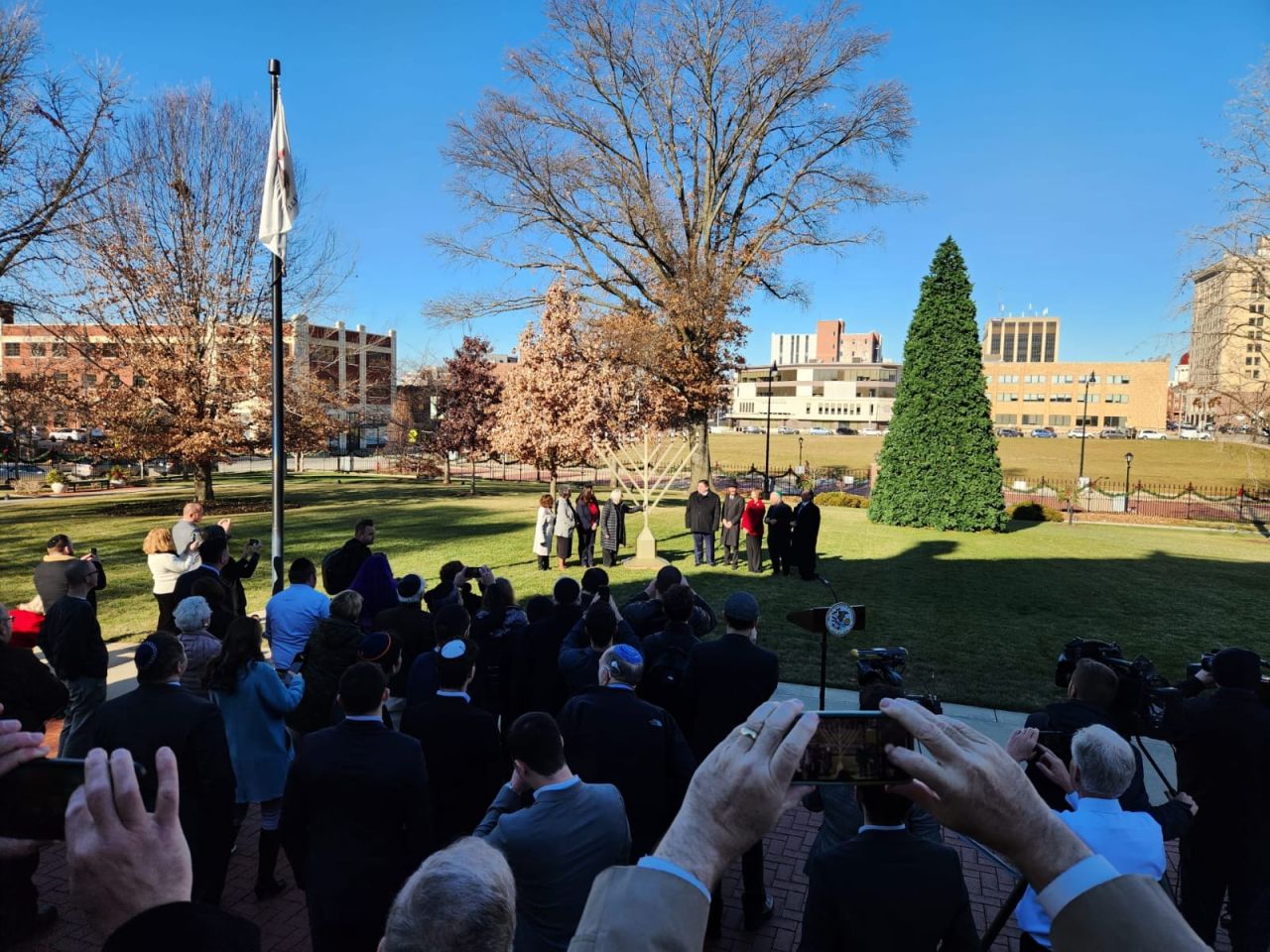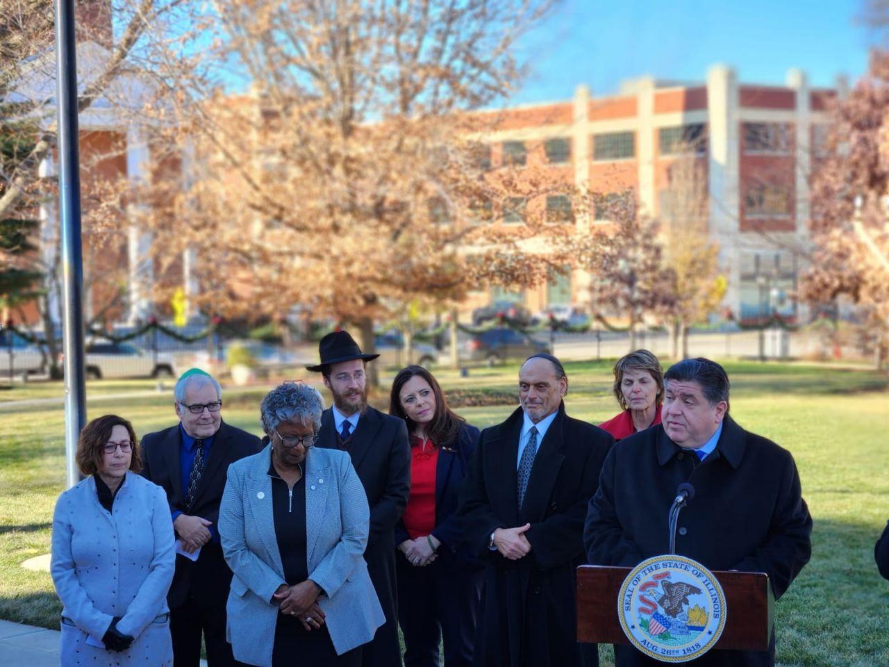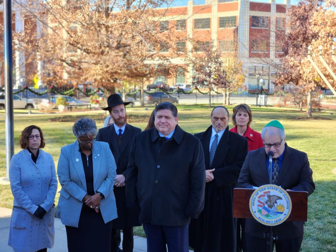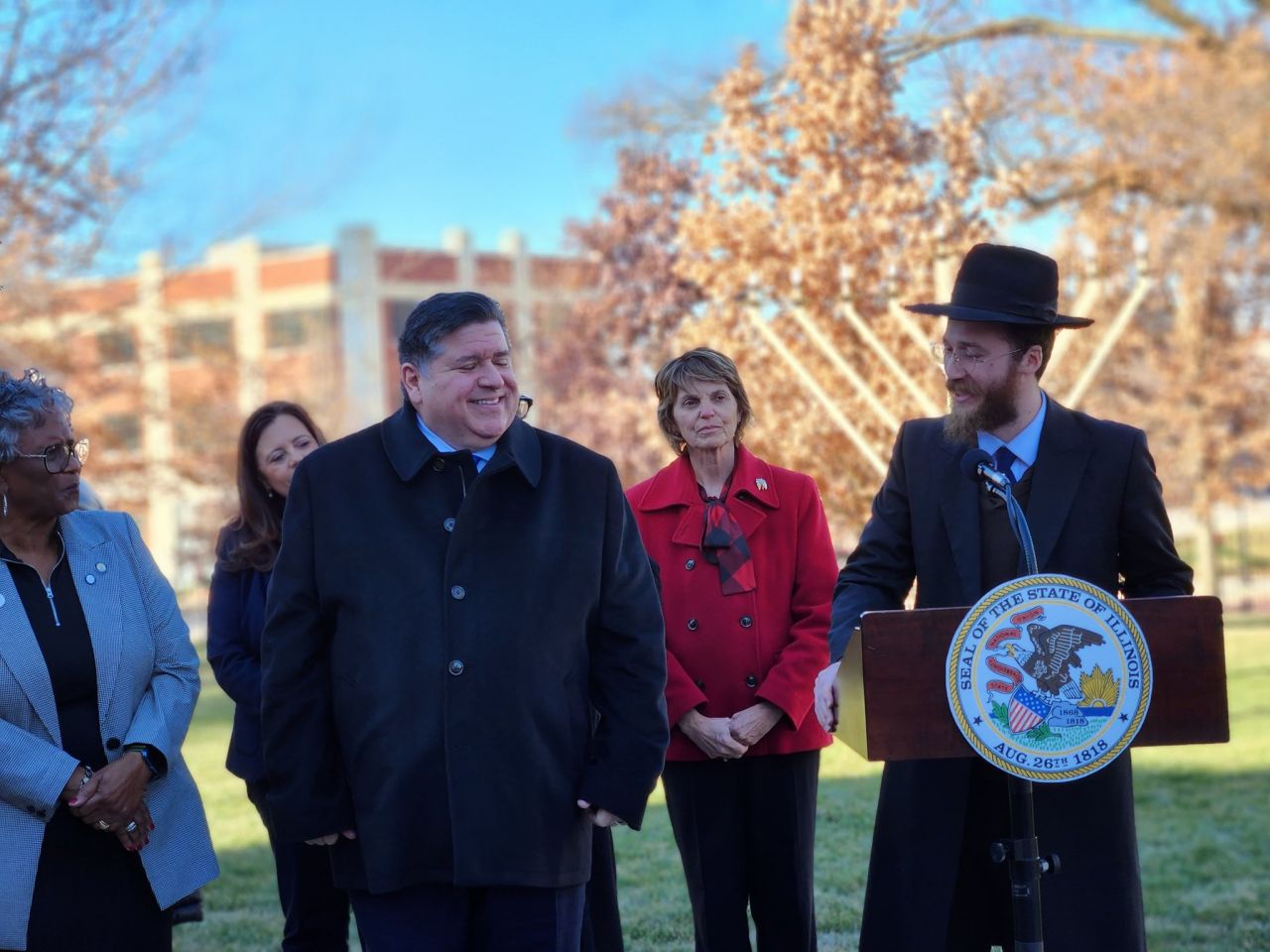 אמש נערך טקס הדלקת חנוכייה בעיר ספרינגפילד במדינת אילינוי באצרות הברית, במעמד נכח מושל המדינה מר ג'יי רוברט פריצקר, שליח הרבי שליט"א מלך המשיח הרב מענדי טורין נשא דברים על מעלת חג החנוכה ועל קבלת המלכות: "חנוכה שמח, איזה זכות להיות כאן עם ידידי המושל ג'יי רוברט פריצקר. תודה לכל המארגנים. כיף לראות את הסטודנטים שהגיעו מהאוניברסיטה בשממפיין.