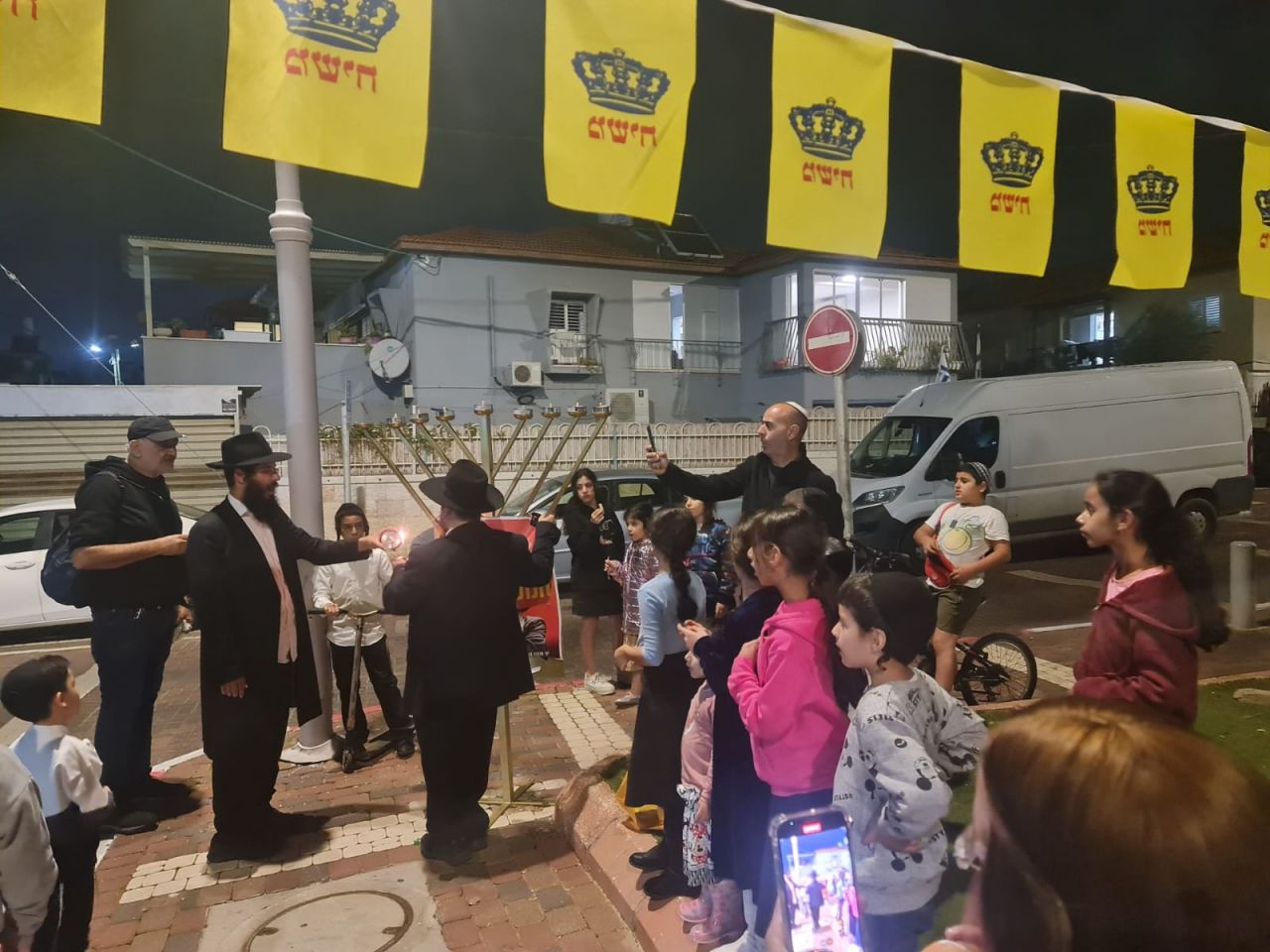 לאחר ההדלקה נערך במקום כינוס ילדים בו נאמרו 12 הפסוקים והכרזת הקודש 'יחי אדוננו', לאחר מכן נערכו ריקודי שמחת החג.