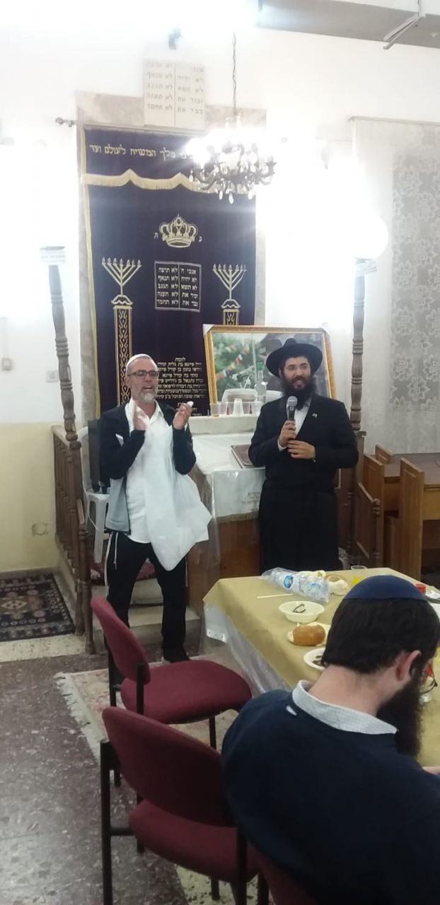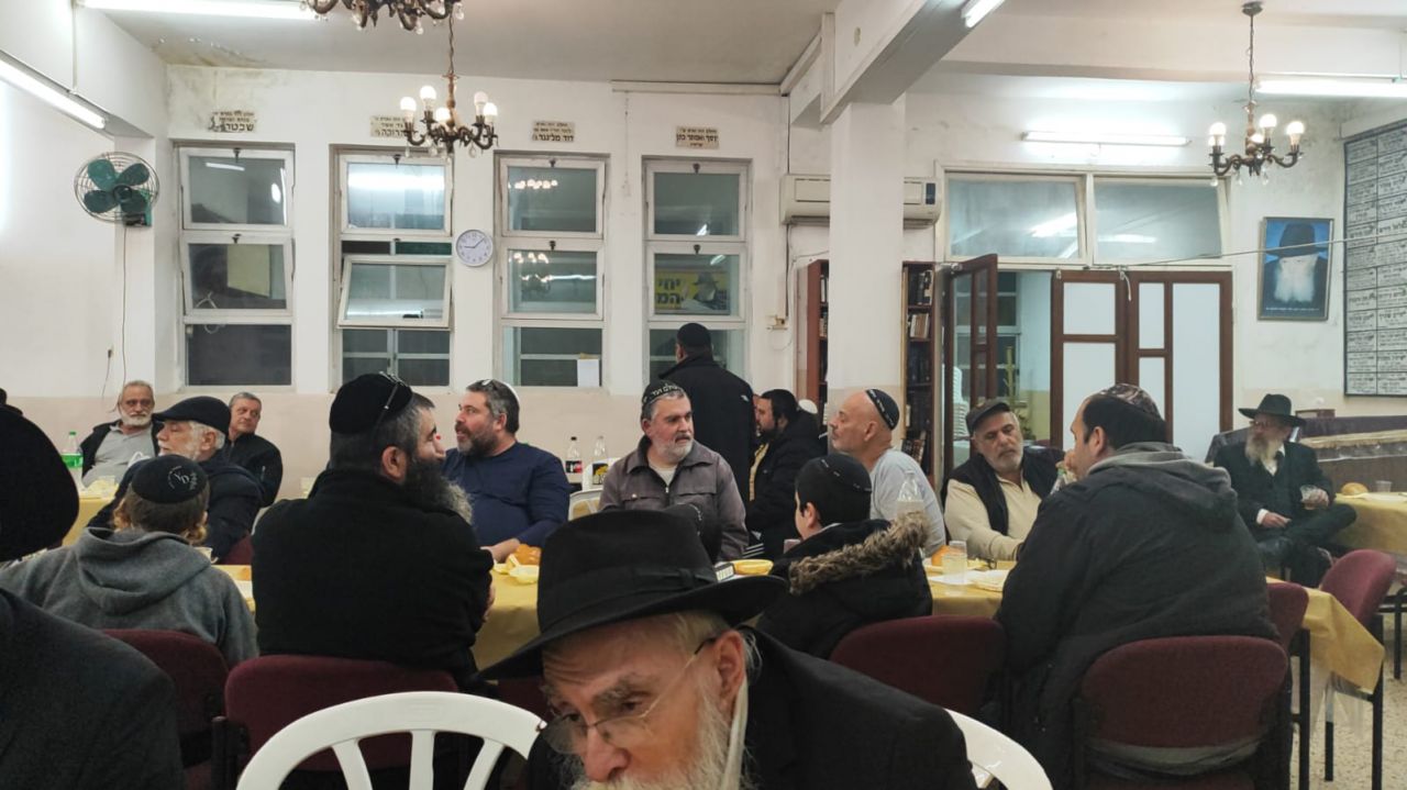 כ80 איש מתושבי שכונת עמידר ובת ים הגיעו להשתתף בהתוועדות חסידית לרגל יום ההילולא של אדמו"ר הזקן בבית חב"ד עמידר.