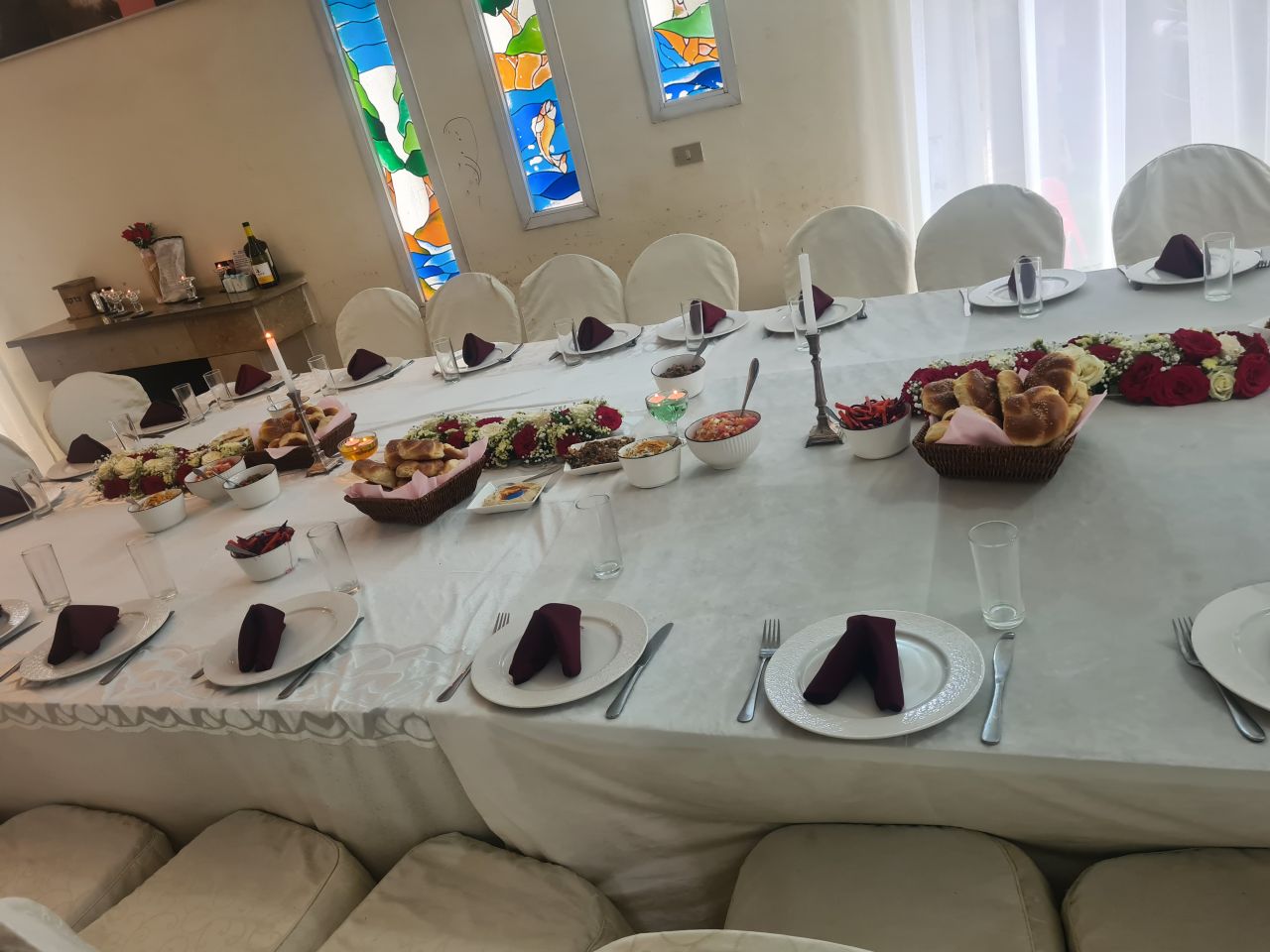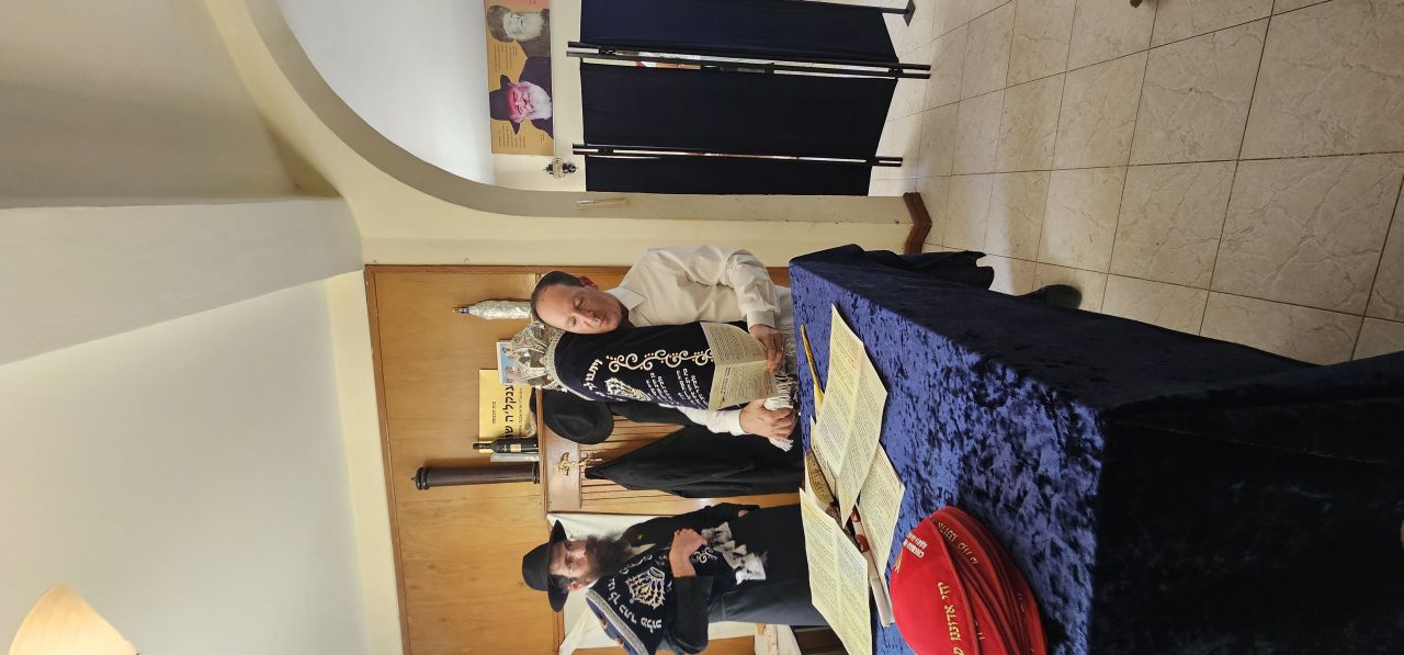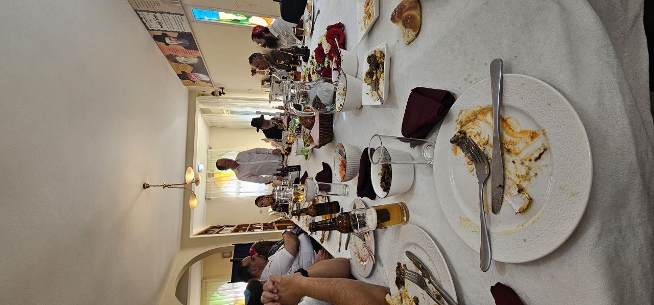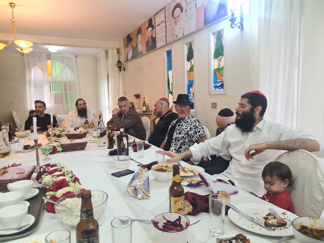 סעודת מצוות מכובדת וחגיגית נערכה בבית חב"ד. סעודה שהפכה במהרה להתוועדות רעים, כשכל סוגי היהודים יושבים בצוותא וקשובים לדברי המשפיע הרב זלמן לנדא שיחי' שהגיע במיוחד מארץ ישראל לרגל המאורע.