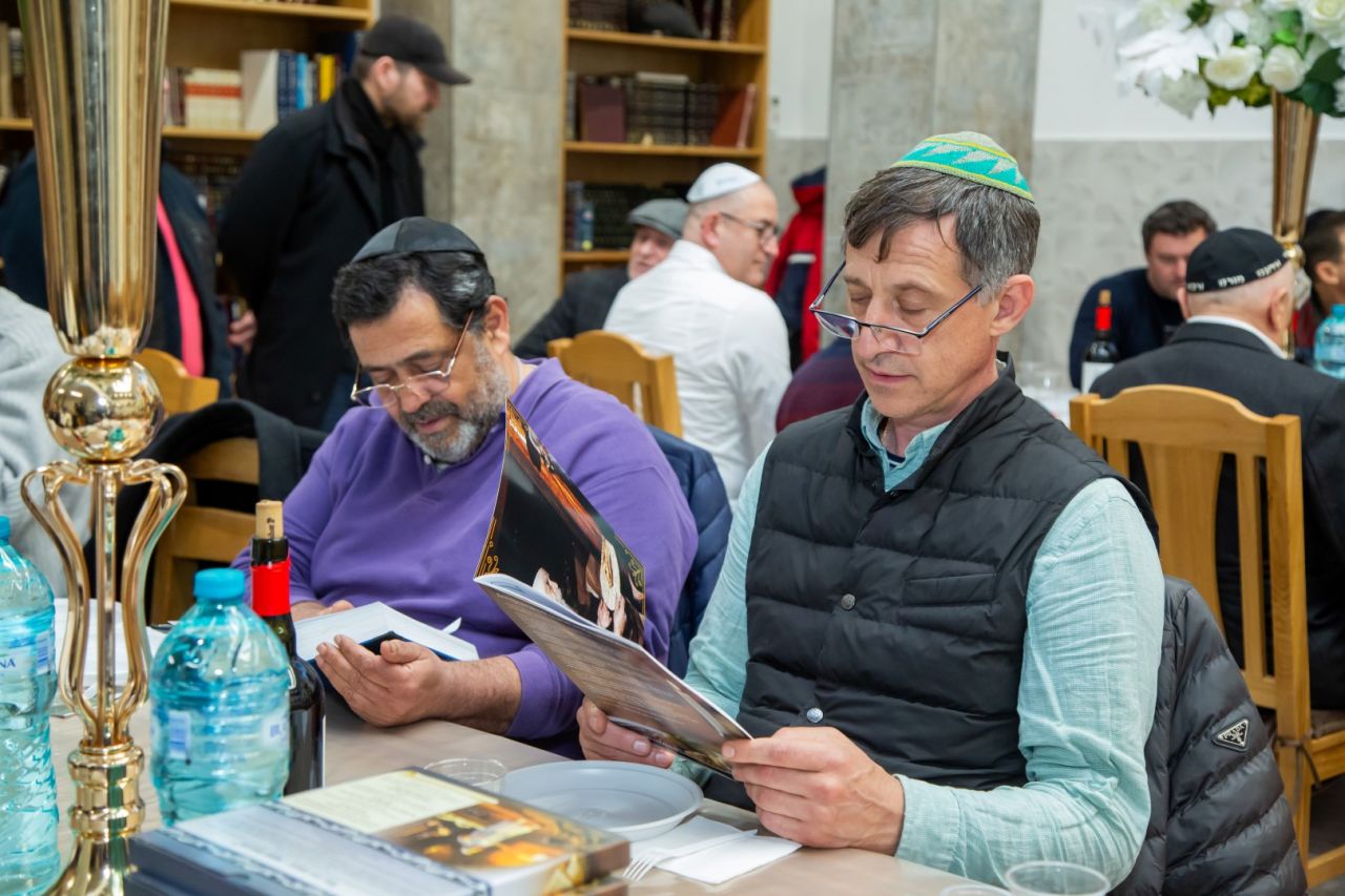 אחרי תפילת ערבית ובמהלך הסדר שהוסבר ברוסית ע"י הרב זלמנוב, זכו האורחים להכריז כמה פעמים את הכרזת הקודש "יחי אדוננו מורנו ורבינו מלך המשיח לעולם ועד".