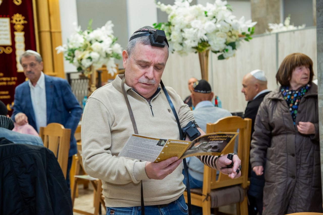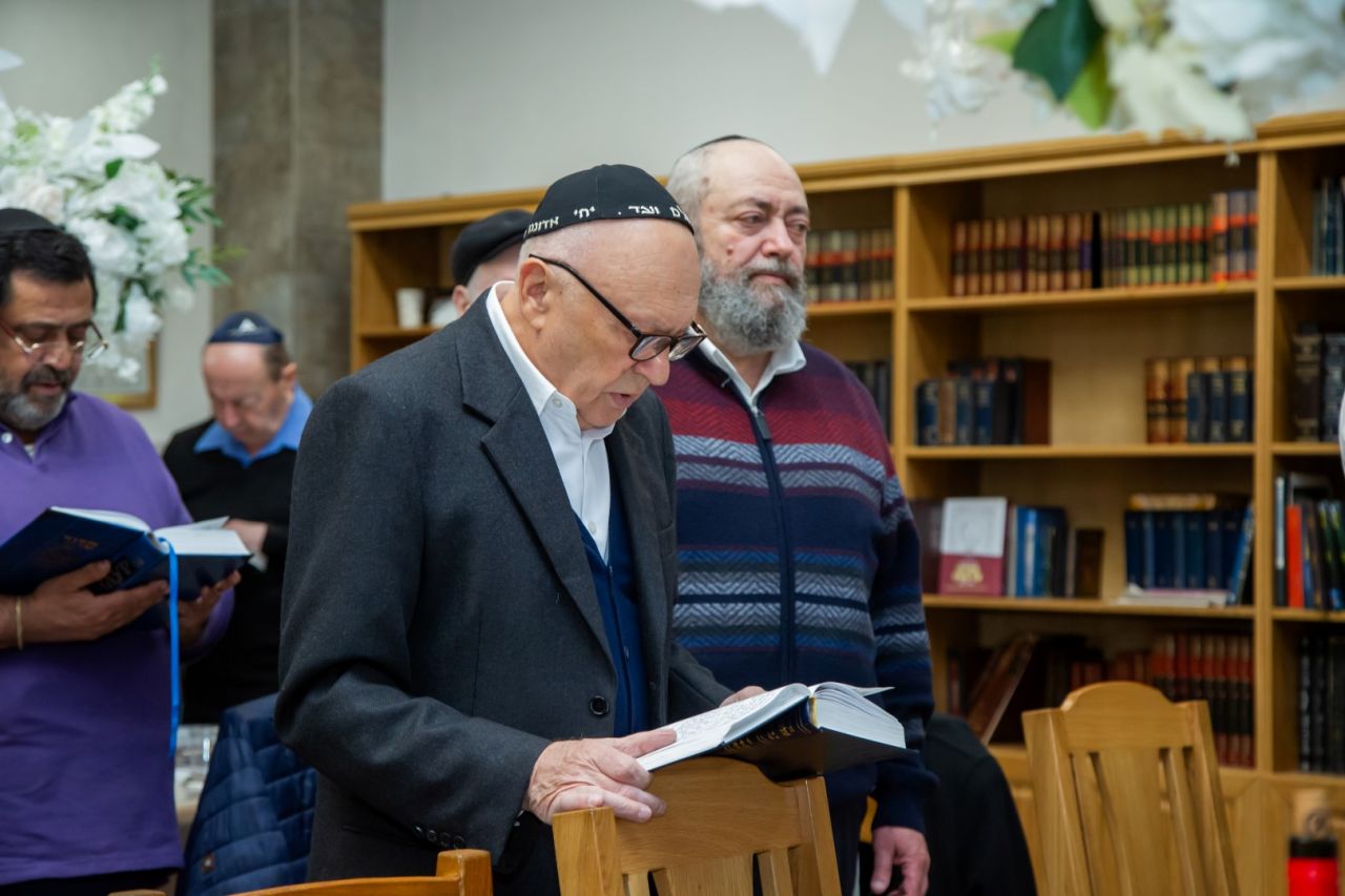 ההתכנסות החלה בתפילת מנחה, וחלק מהאורחים הניחו תפילין.