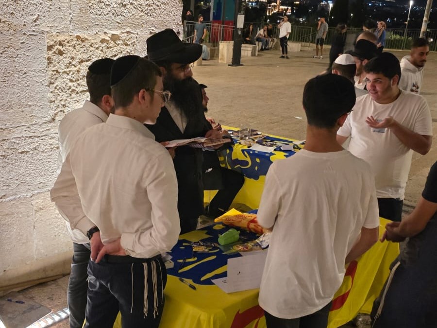 את הדוכן הקימו הבחורים סמוך לשער יפו, כאשר שולחן אחד משמש עבור גברים, ואחד עבור נשים. את הדוכן איישו בחורים מישיבות המלך המשיח, תורת אמת, ראשל"צ ועוד.