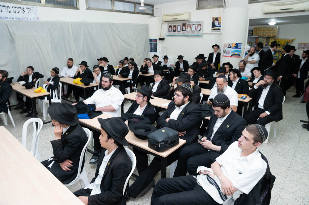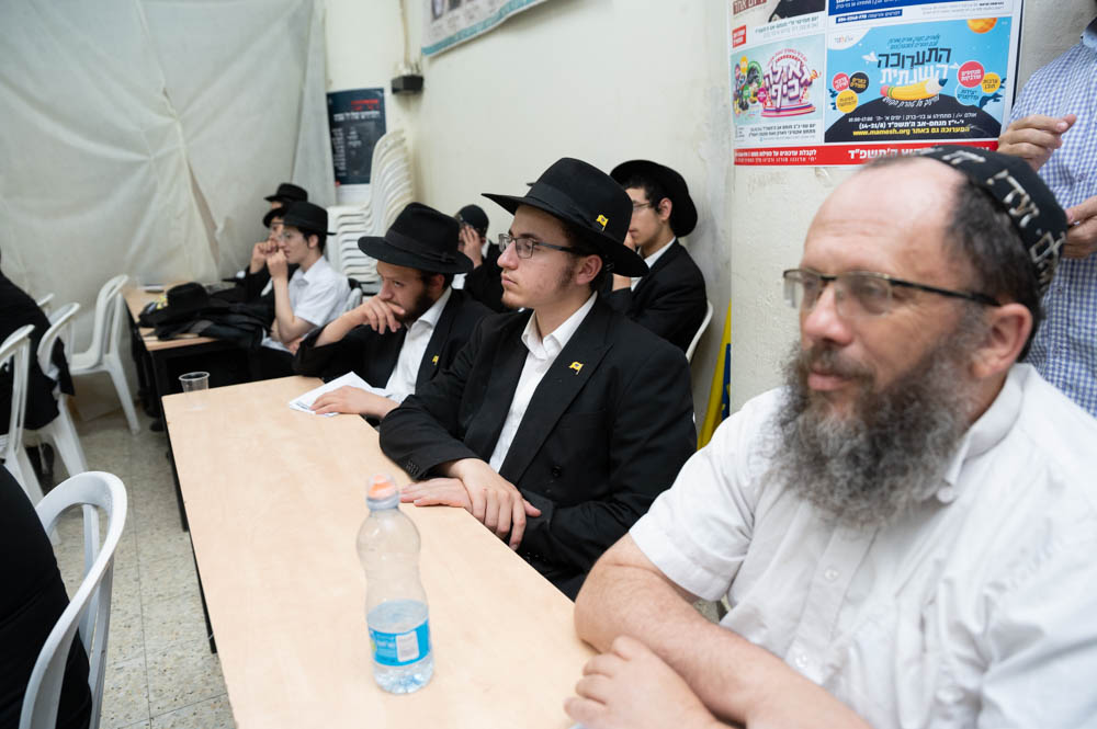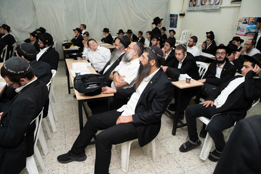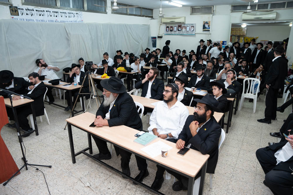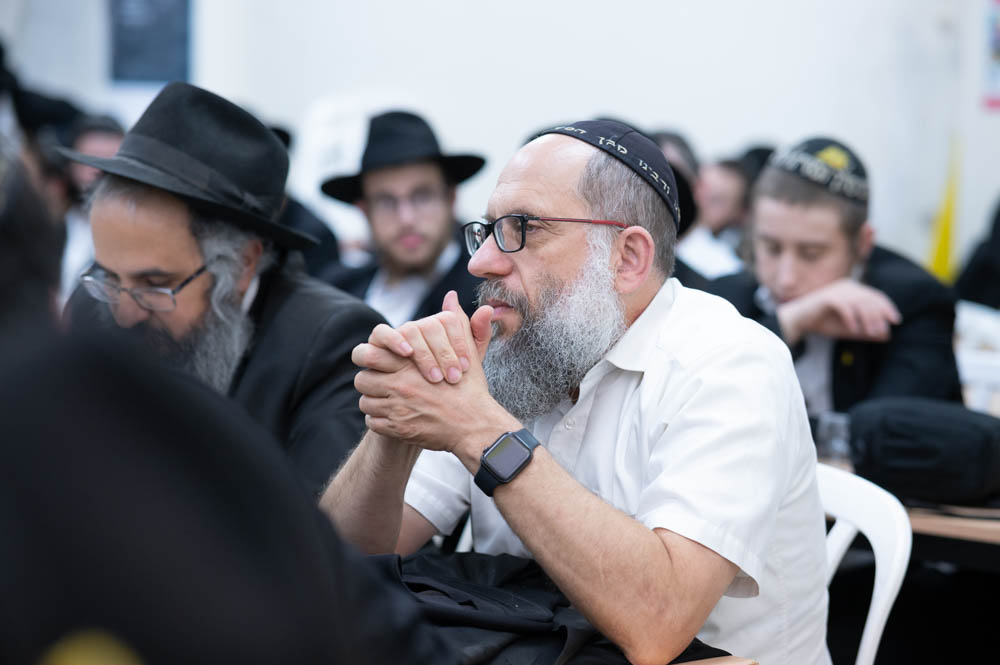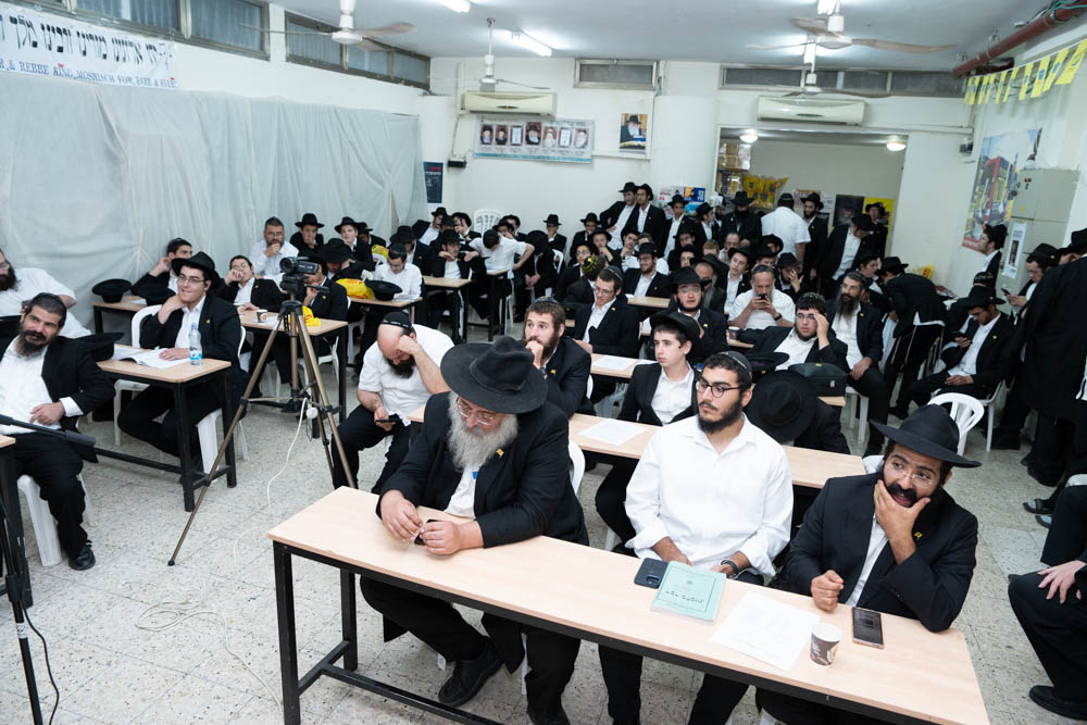 לאחר תפילת מנחה ברוב עם, עולה הת' לוי גבריאל לעשות סיום מסכת כפי הוראתו של כ"ק אדמו"ר מלך המשיח שליט"א. לאחריו ניגש אל המיקרופון הדובר הראשון הרה"ג הרב יעקב יוסף שליח ורב בית הכנסת "תהילת ה'" בכפר יונה. הרב יוסף נושא דברים חוצבי להבות אודות עניינו של תמים שזהו לימוד התורה, דבר שהוא קריטי ומשפיע רבות על הפצת המעיינות של כל אחד ובפרט בעמדנו בשנת היובל למבצע תורה.