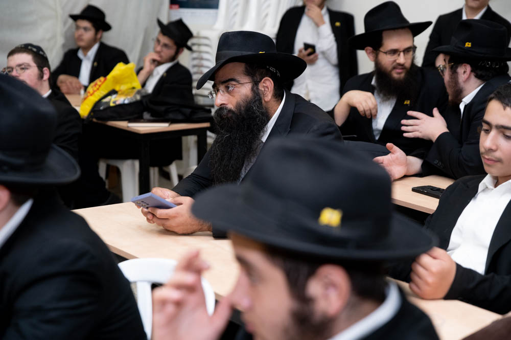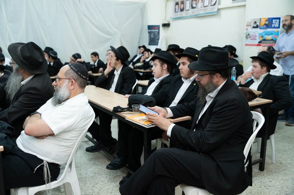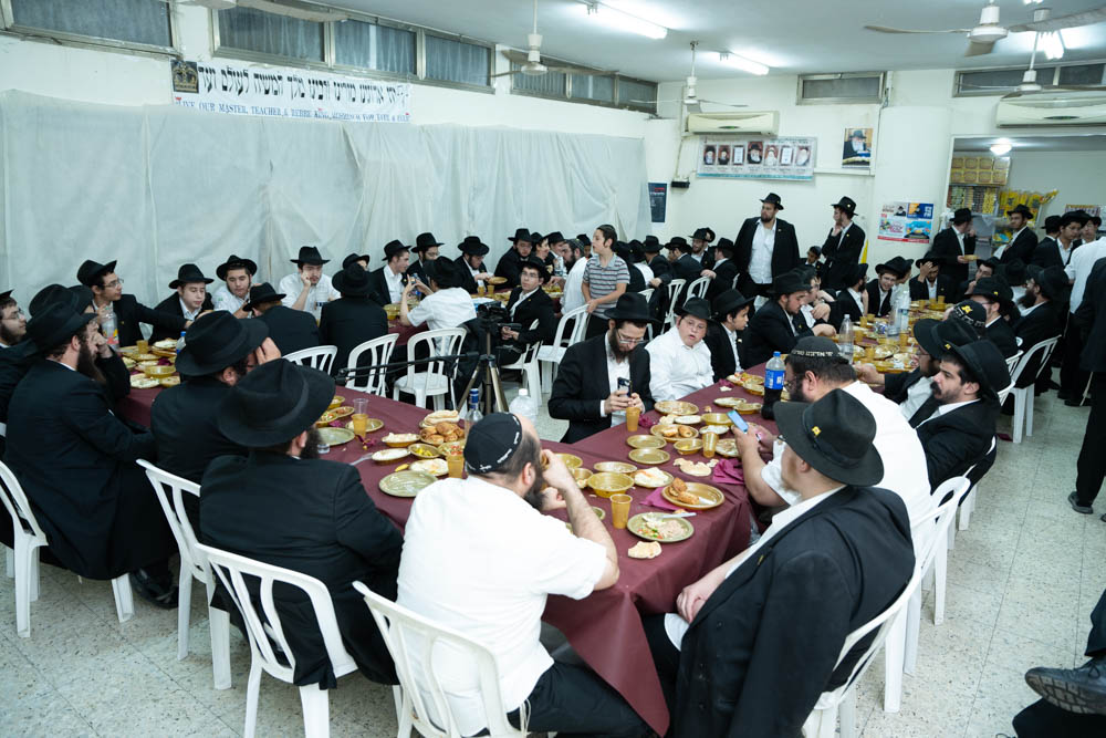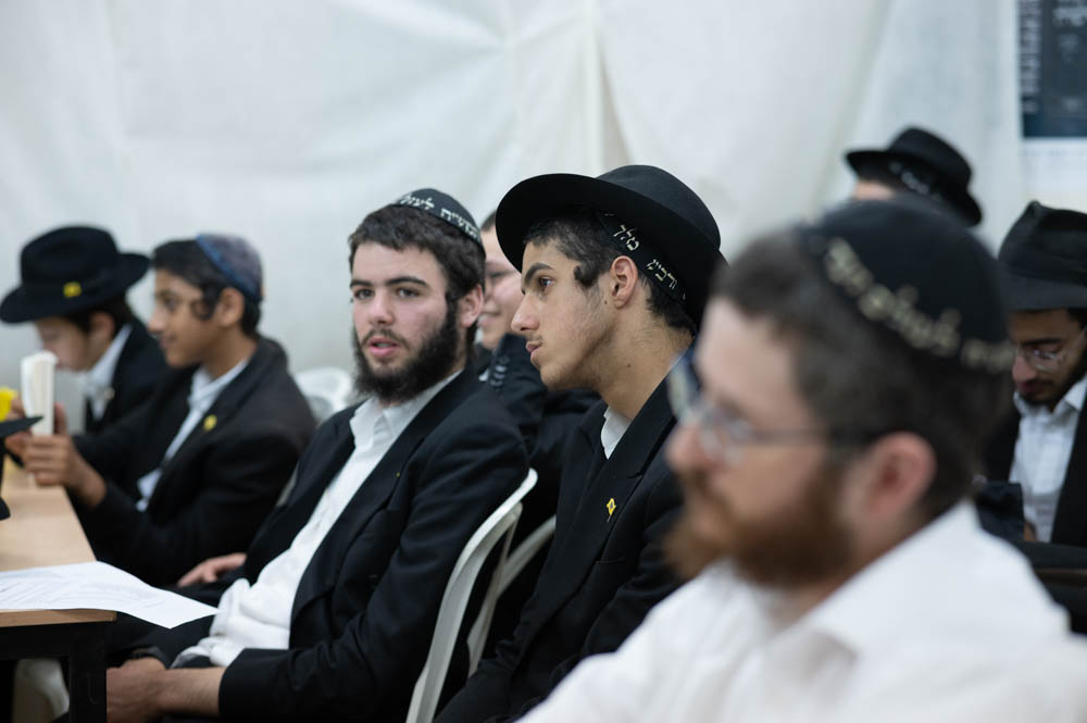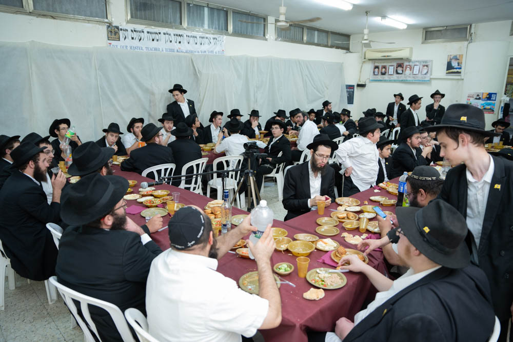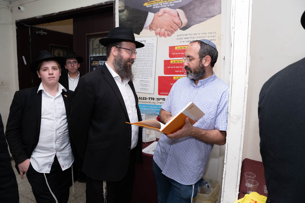 לאחר תפילת מנחה ברוב עם, עולה הת' לוי גבריאל לעשות סיום מסכת כפי הוראתו של כ"ק אדמו"ר מלך המשיח שליט"א. לאחריו ניגש אל המיקרופון הדובר הראשון הרה"ג הרב יעקב יוסף שליח ורב בית הכנסת "תהילת ה'" בכפר יונה. הרב יוסף נושא דברים חוצבי להבות אודות עניינו של תמים שזהו לימוד התורה, דבר שהוא קריטי ומשפיע רבות על הפצת המעיינות של כל אחד ובפרט בעמדנו בשנת היובל למבצע תורה.