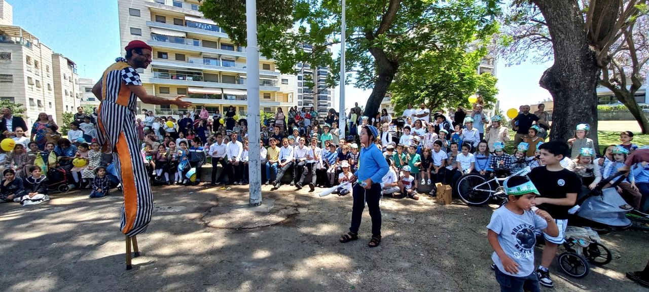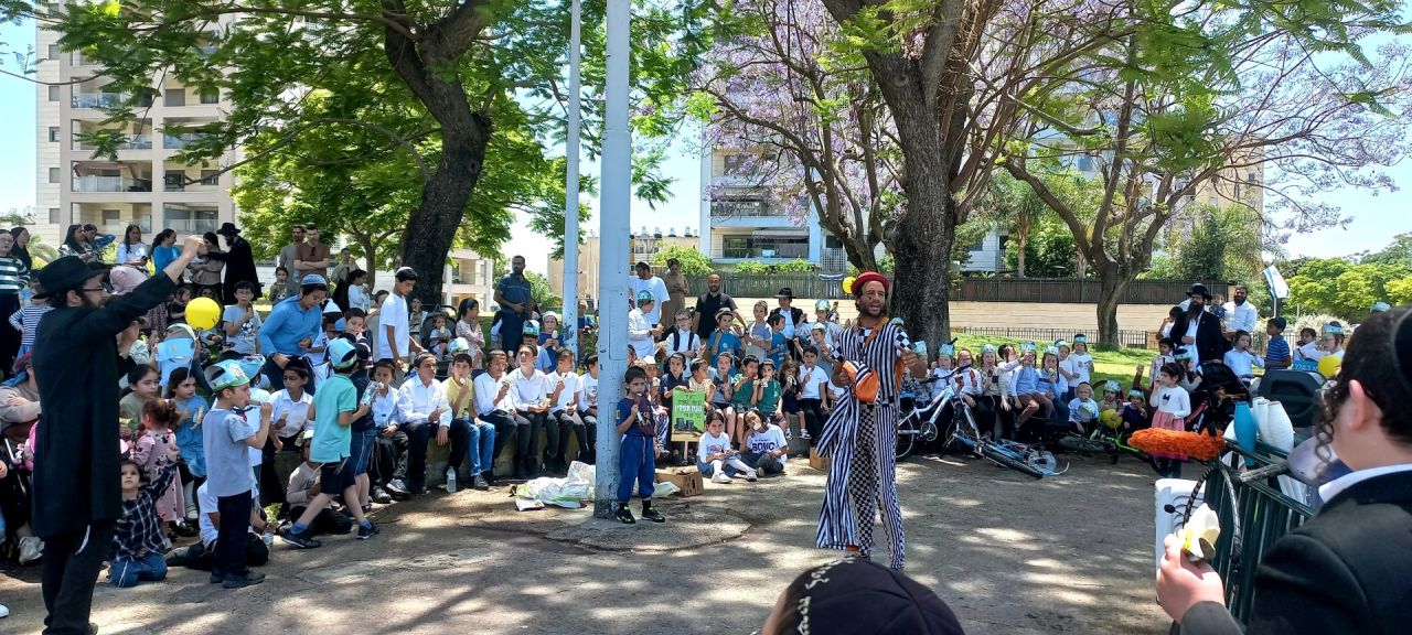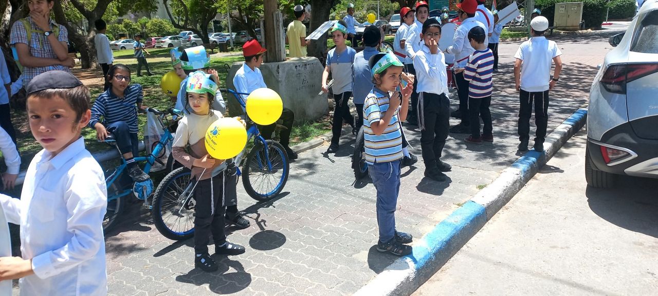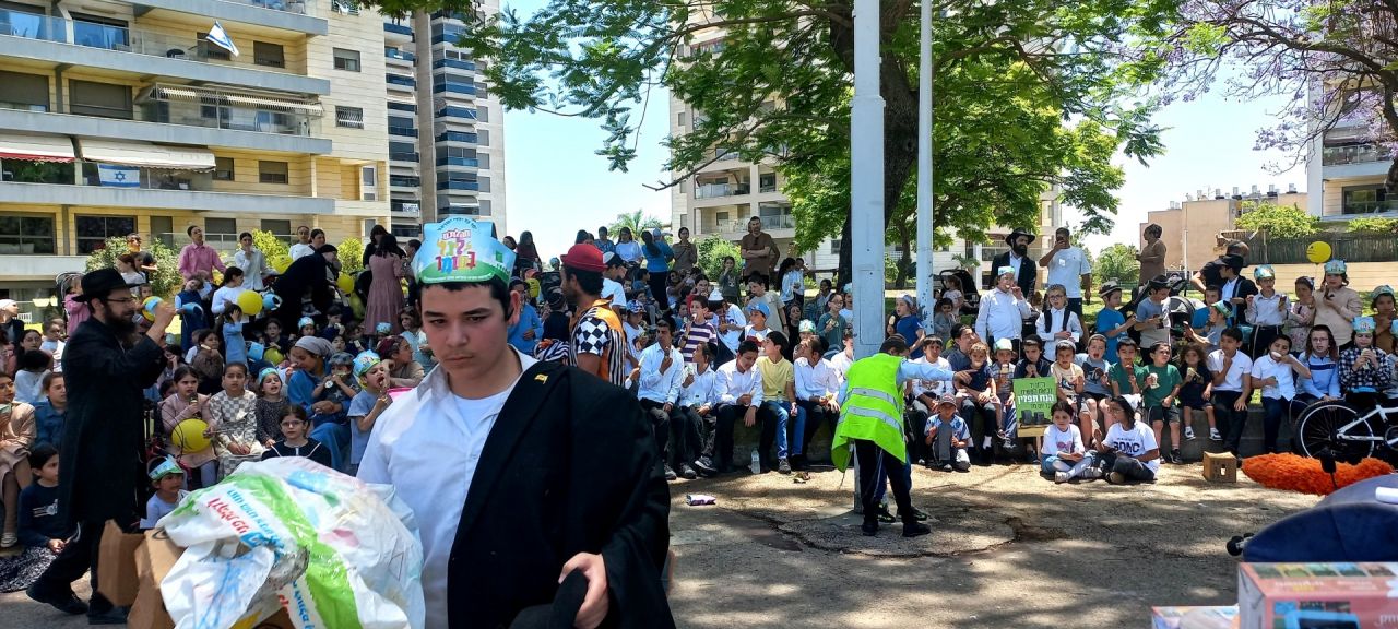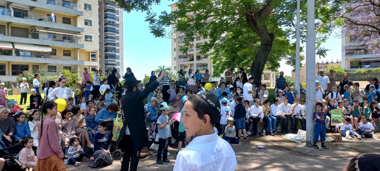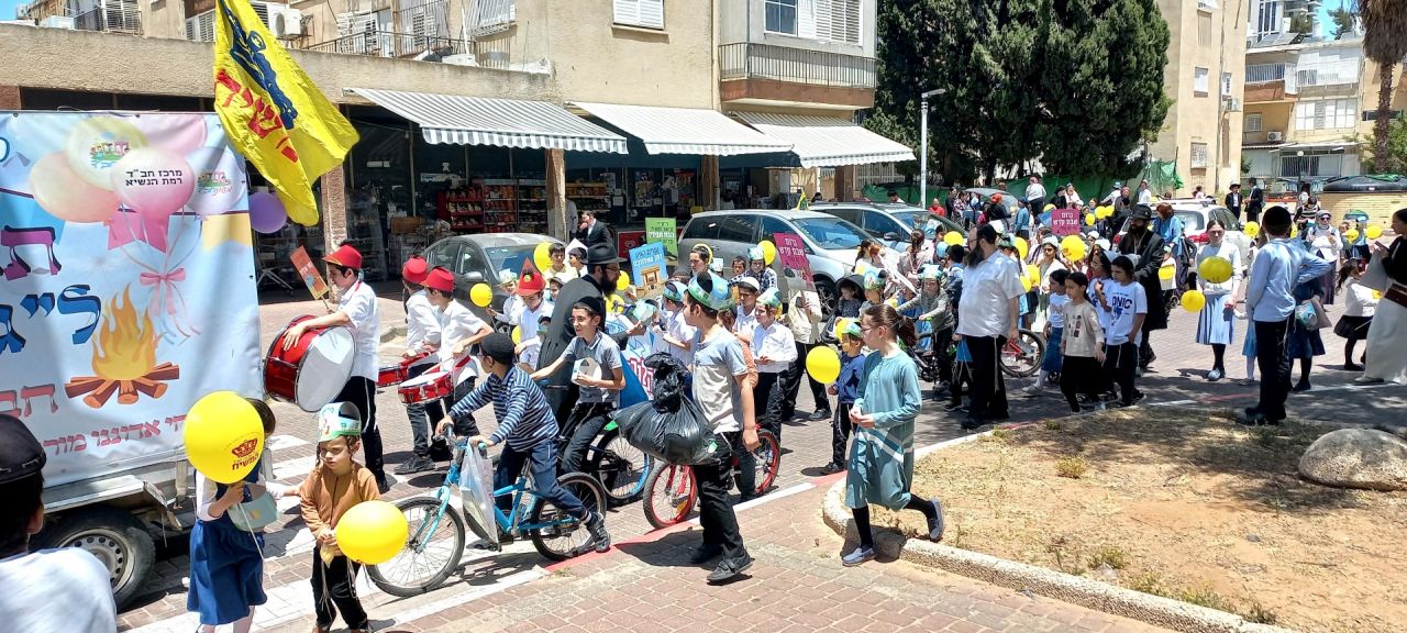 ילדי הקריה החסידית בת ים עיר הגאולה שצעדו בל"ג בעומר לכבוד רשב"י זכו בשלגון, ספרון קודש, מופע מדהים והגרלת פרסים ענקית.