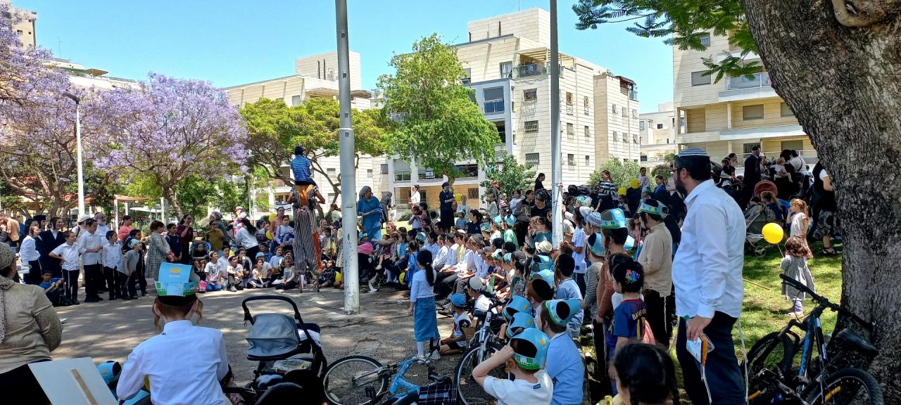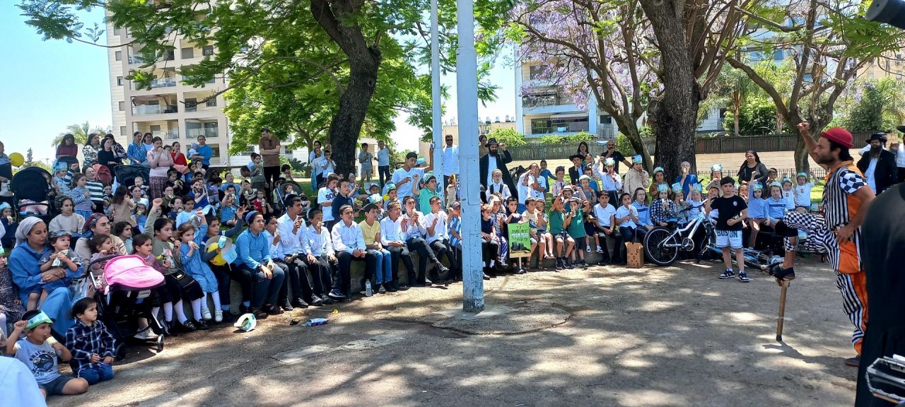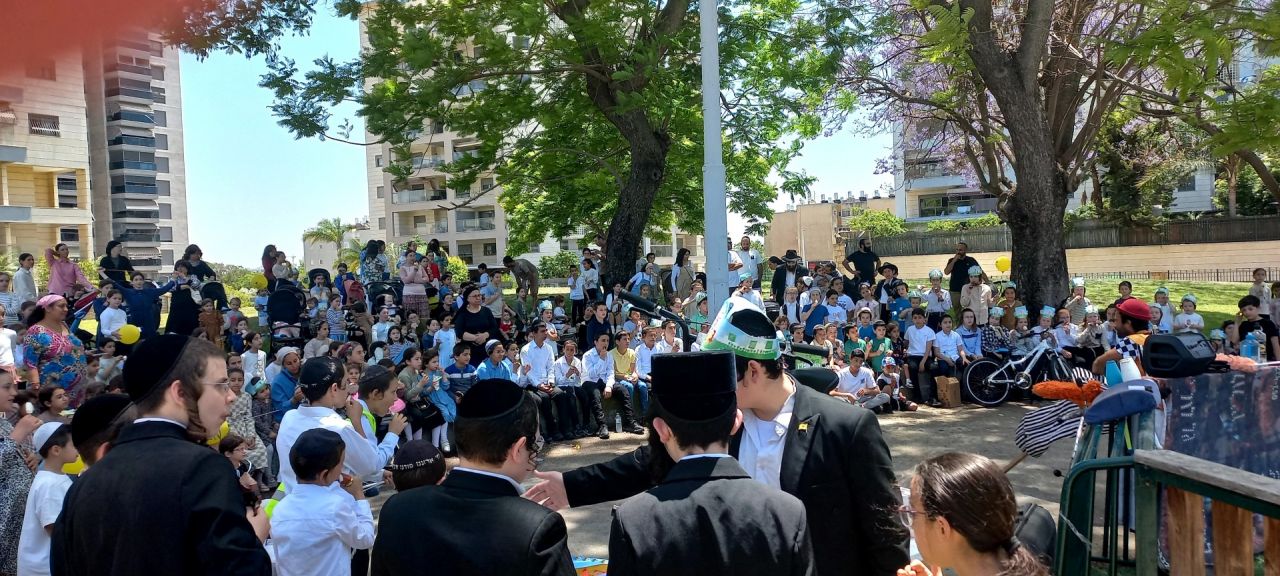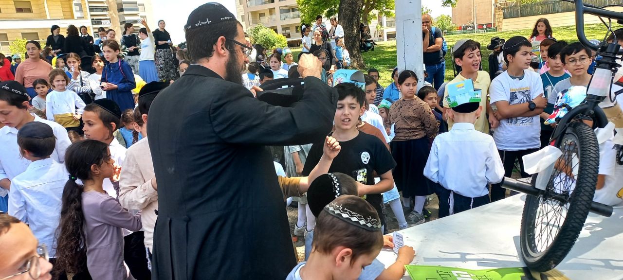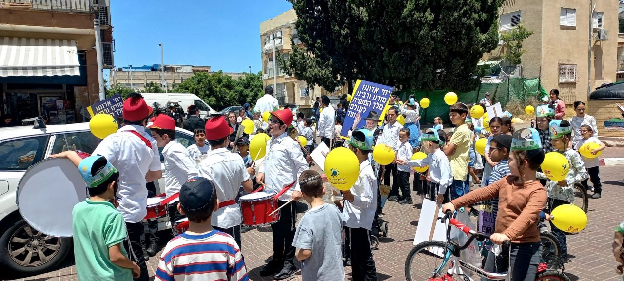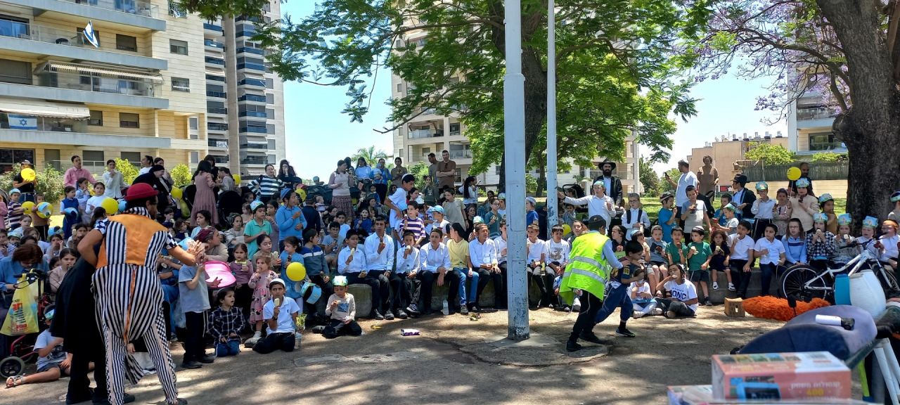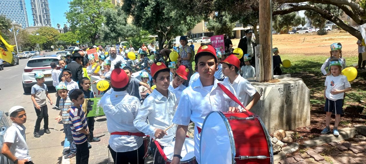 ילדי הקריה החסידית בת ים עיר הגאולה שצעדו בל"ג בעומר לכבוד רשב"י זכו בשלגון, ספרון קודש, מופע מדהים והגרלת פרסים ענקית.