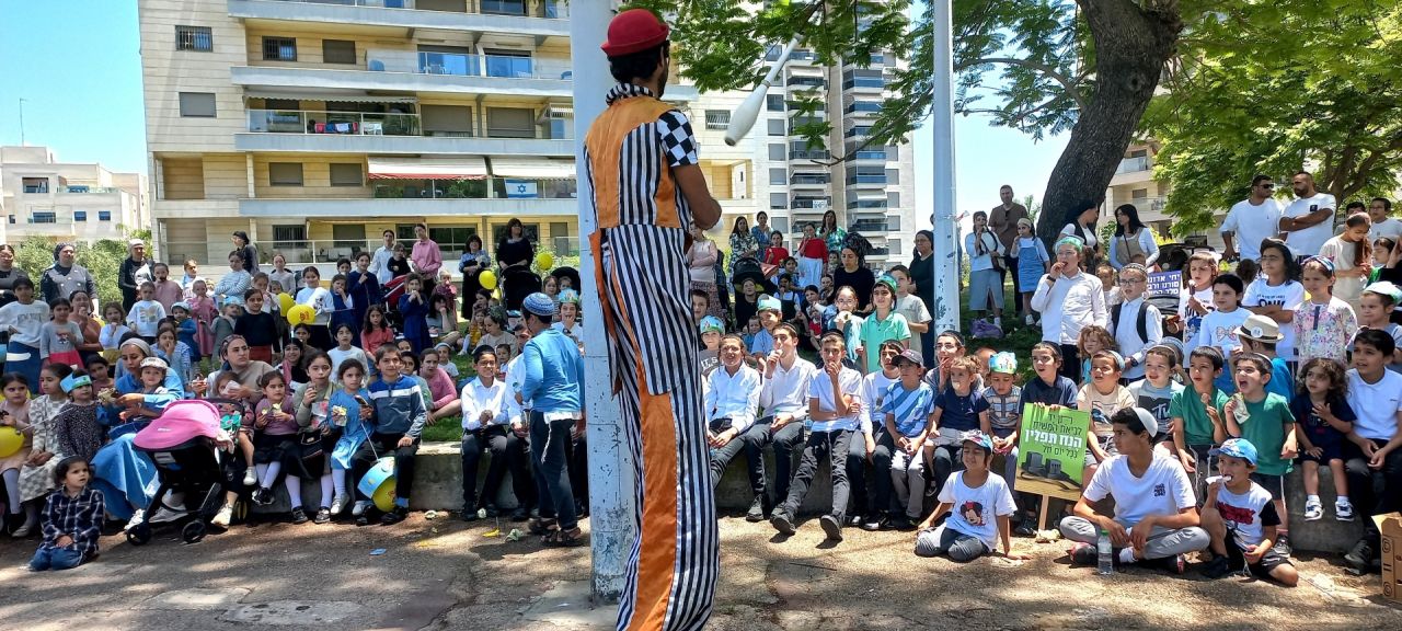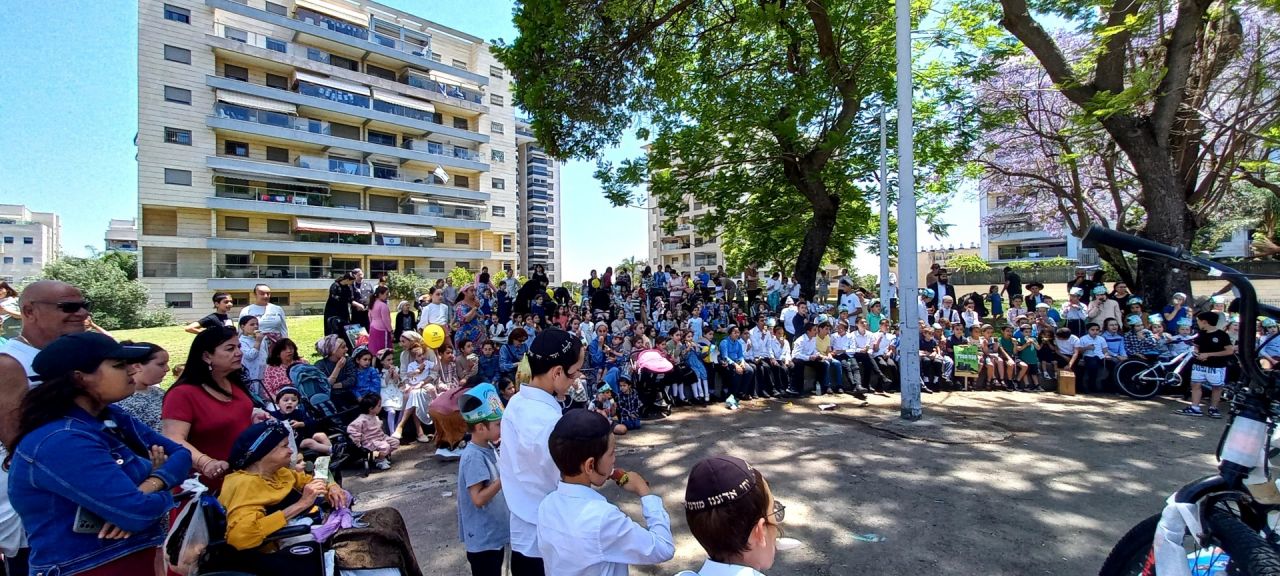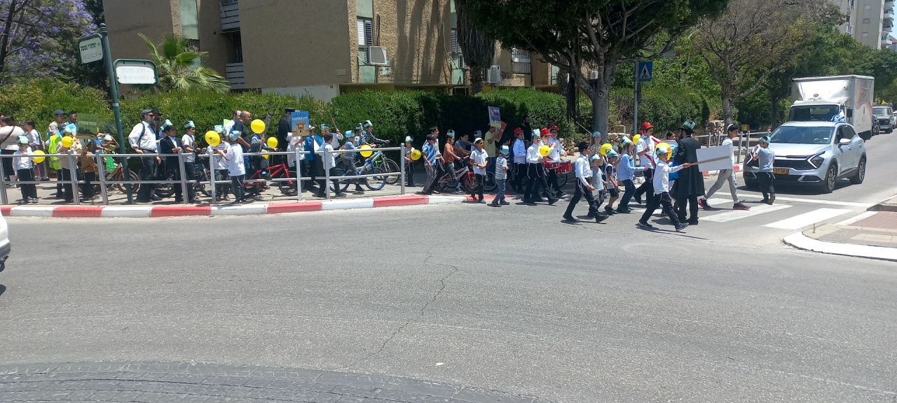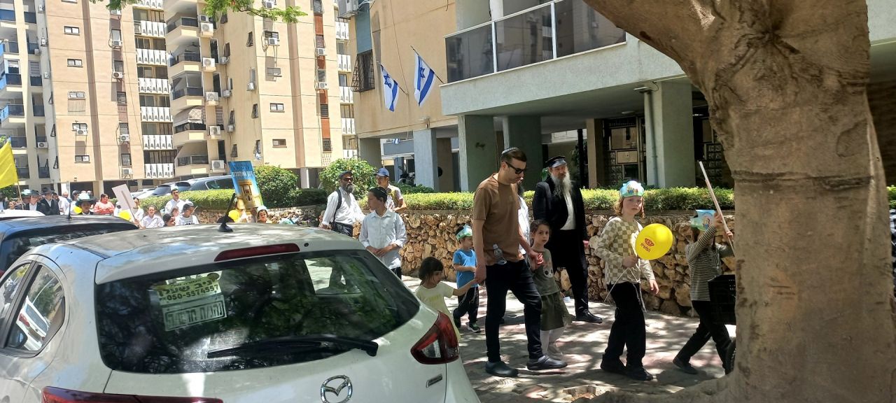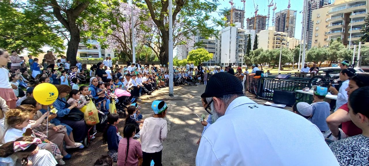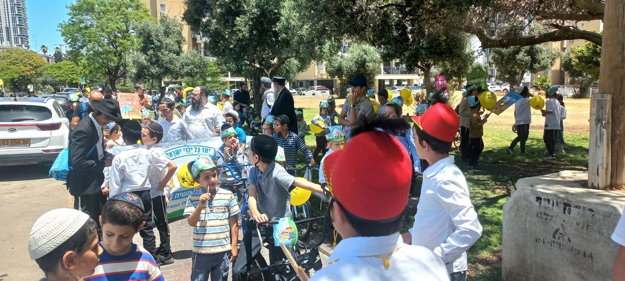 ילדי הקריה החסידית בת ים עיר הגאולה שצעדו בל"ג בעומר לכבוד רשב"י זכו בשלגון, ספרון קודש, מופע מדהים והגרלת פרסים ענקית.