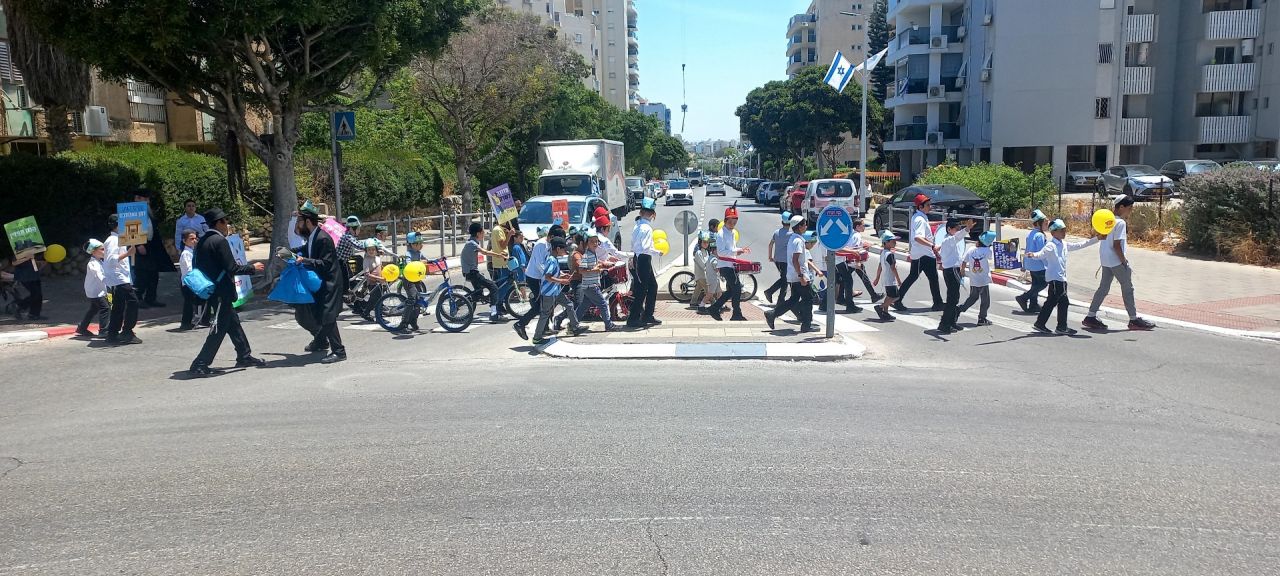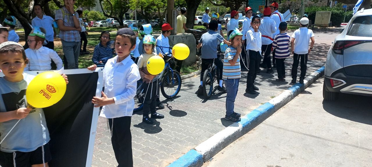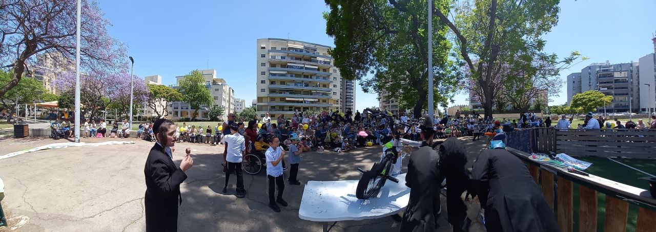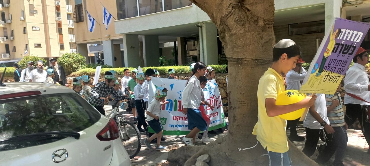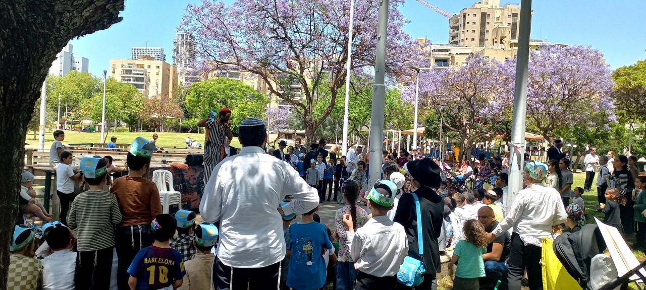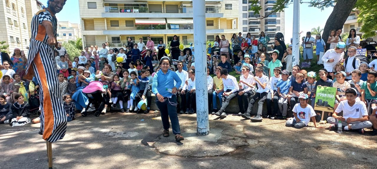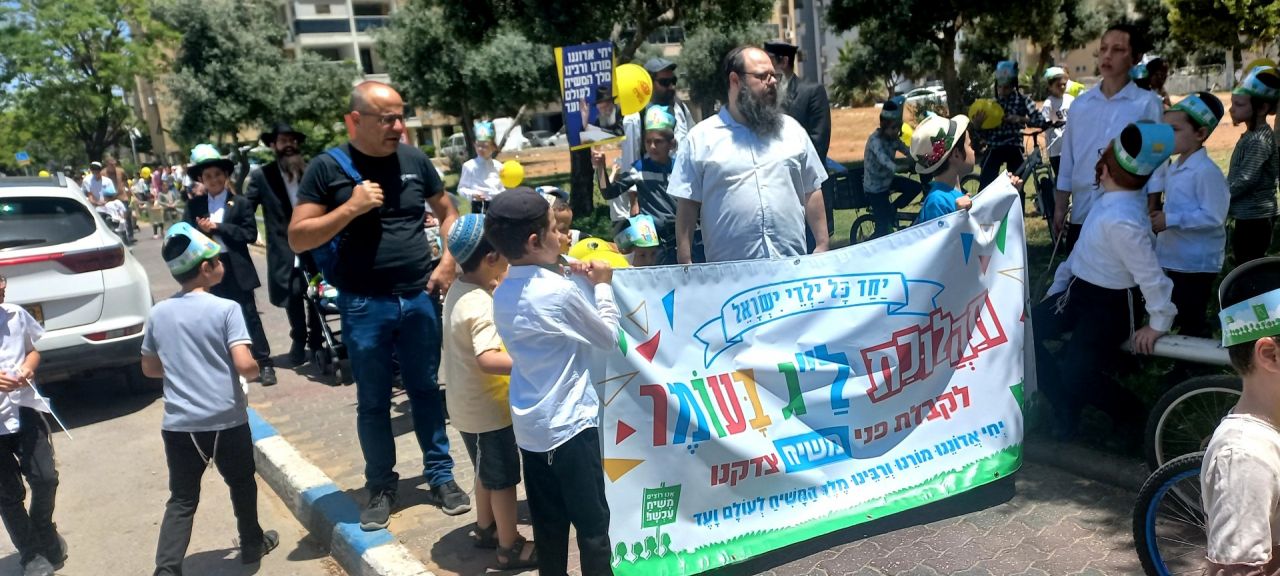 ילדי הקריה החסידית בת ים עיר הגאולה שצעדו בל"ג בעומר לכבוד רשב"י זכו בשלגון, ספרון קודש, מופע מדהים והגרלת פרסים ענקית.