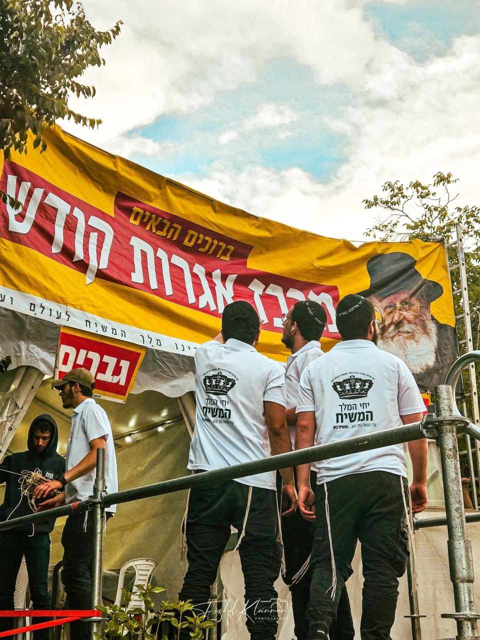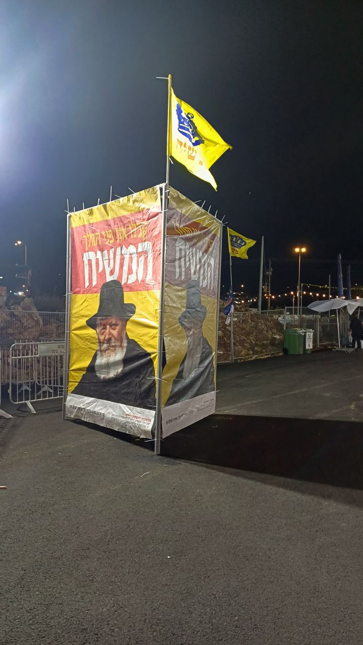 עשרות שלטים עם בשורת הגאולה ודגלי משיח קדמו את העולים להר, כשהשיא היה בהרמת שלט ענק בגובה 20 מטרים שהוצב על גבי מנוף, ובו תמונת הרבי שליט"א מלך המשיח ונבואת הרבי שליט"א מלך הנה זה משיח בא.