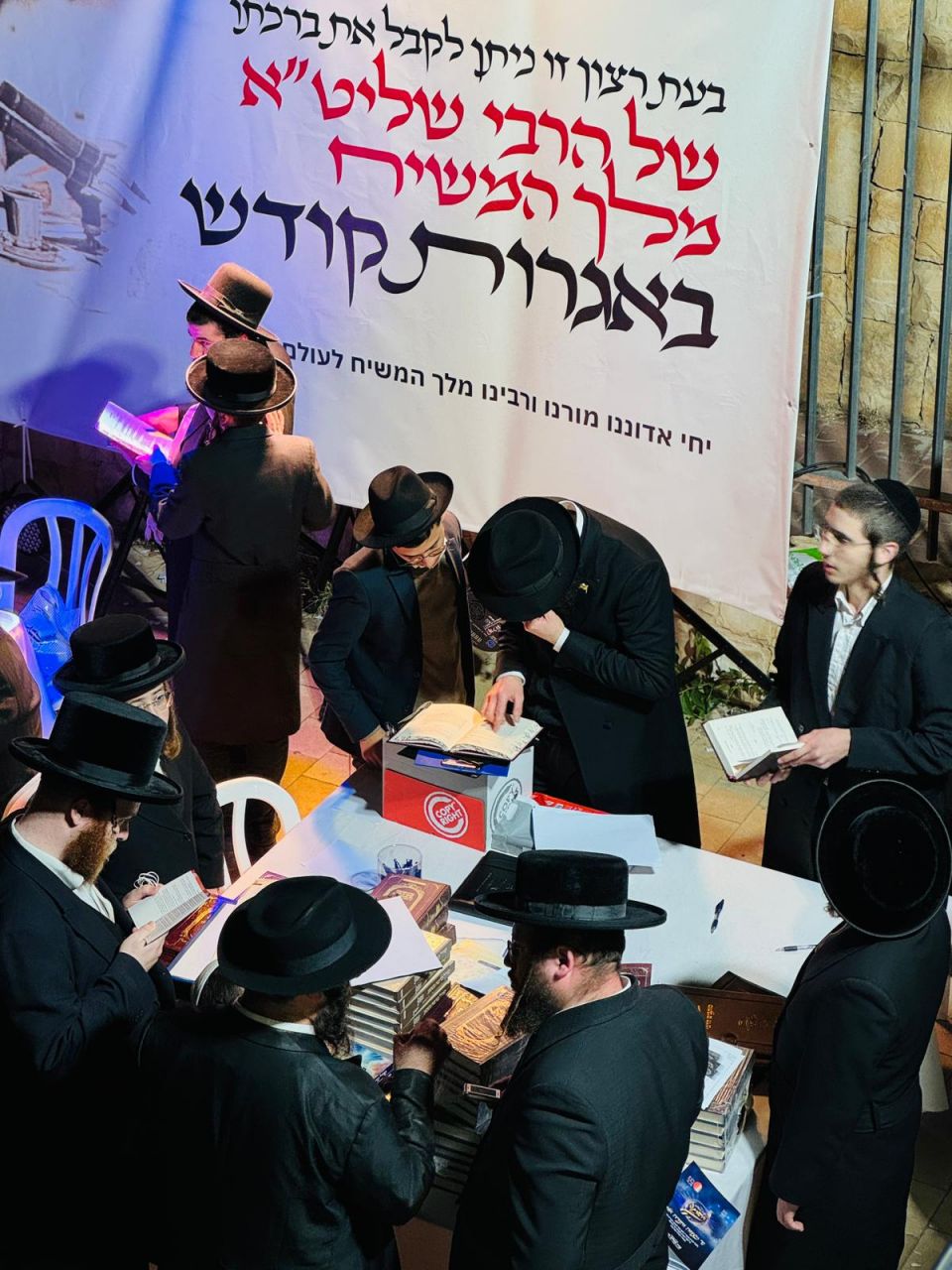 לצד הדוכן נערכה גם מכירת ספרי חסידות — מהדורות חדשות ומהודרות של ספרי יסוד, קונטרסים ושיחות קודש — כדי לאפשר לכל אחד לצאת מהאירוע עם תוספת של אור והפצת המעיינות בפועל ממש.
