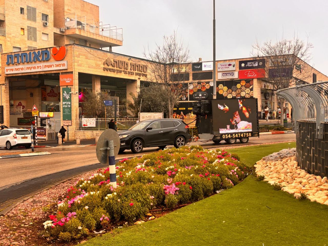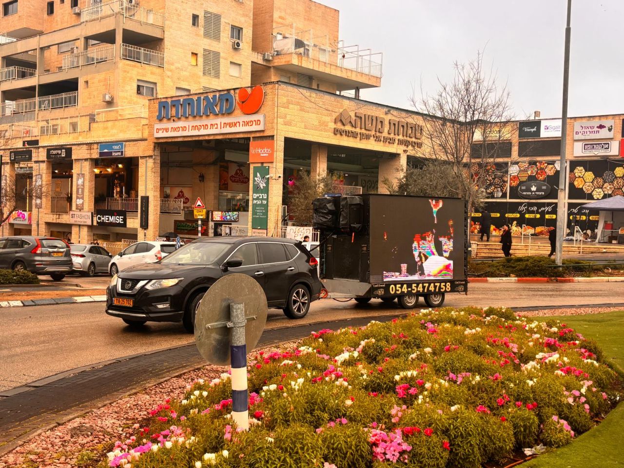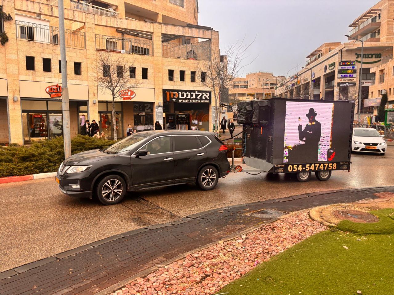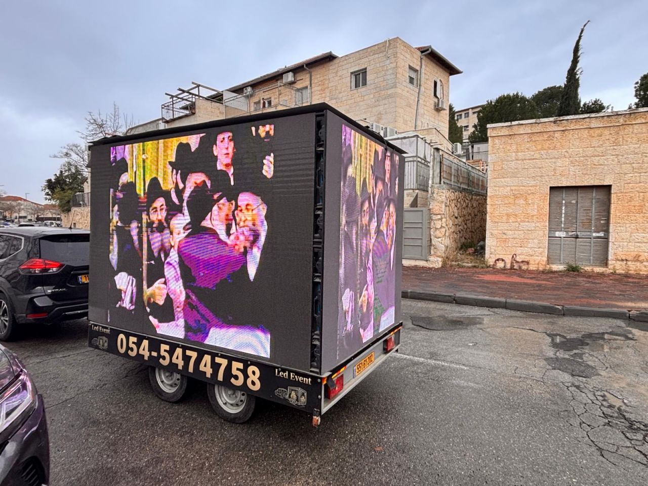 במהלך היום כולו הסתובב רכב גדול ומפואר עם מסכי ענק, שם הוקרנו קטעי וידאו מראות קודש מהרבי שליט"א מלך המשיח, כשבמערכת הכריזה מוזמנים אלפי תושבי העיר לגשת לדוכני ההתקשרות ולכתוב לרבי שליט"א מלך המשיח.
