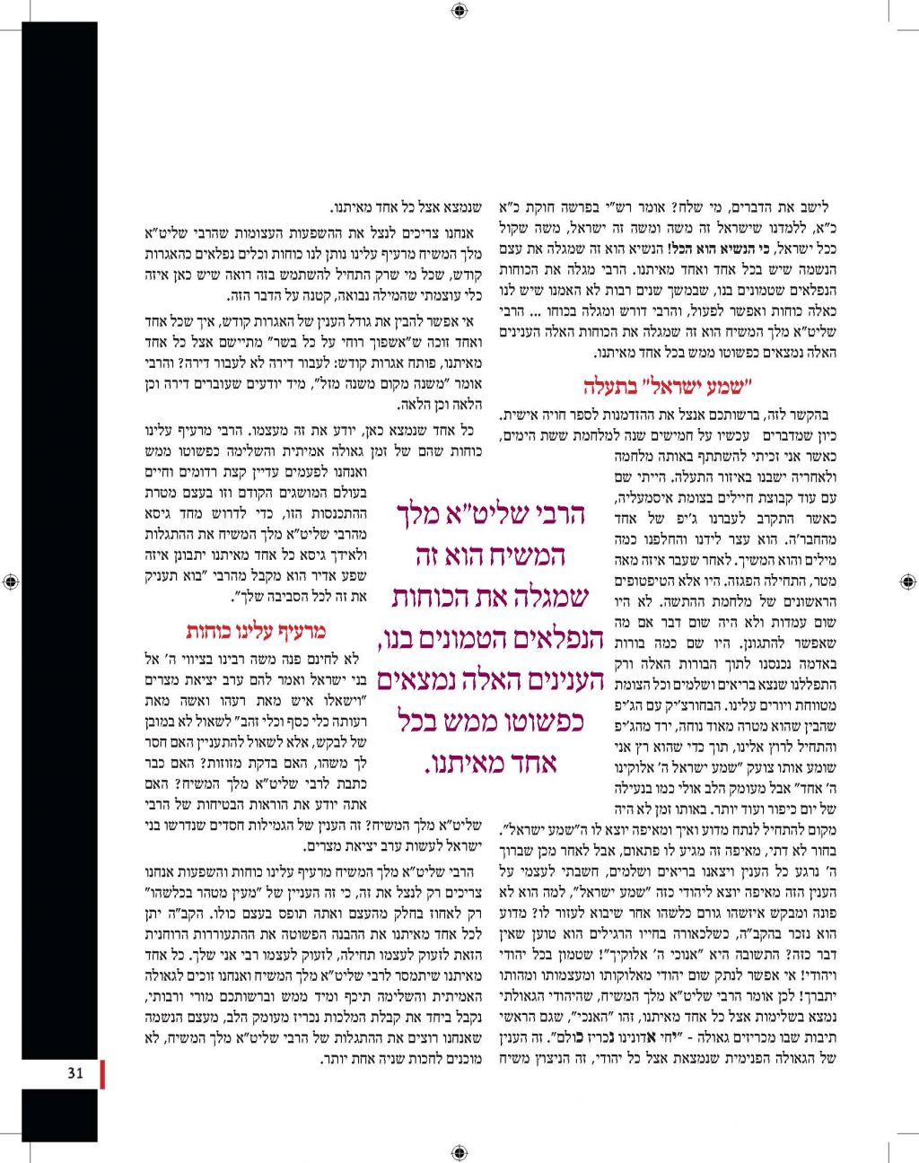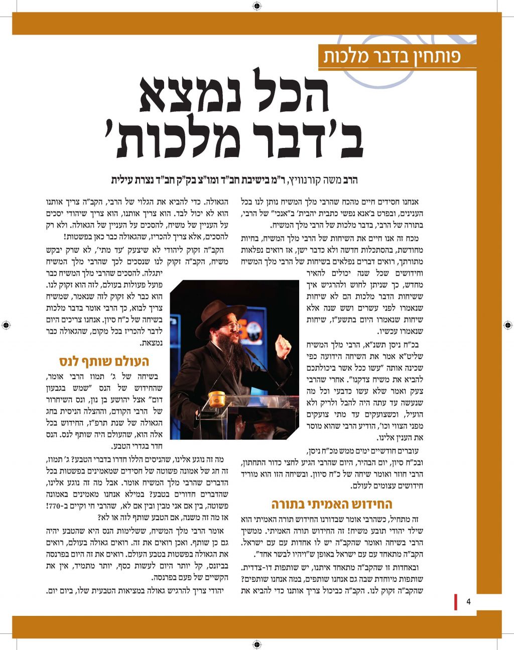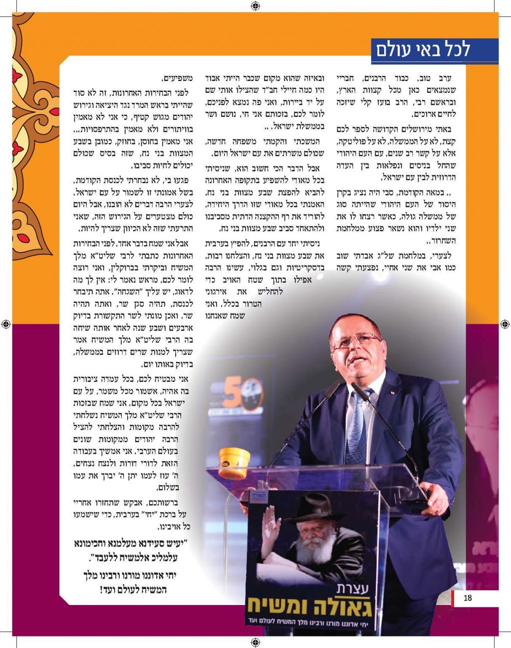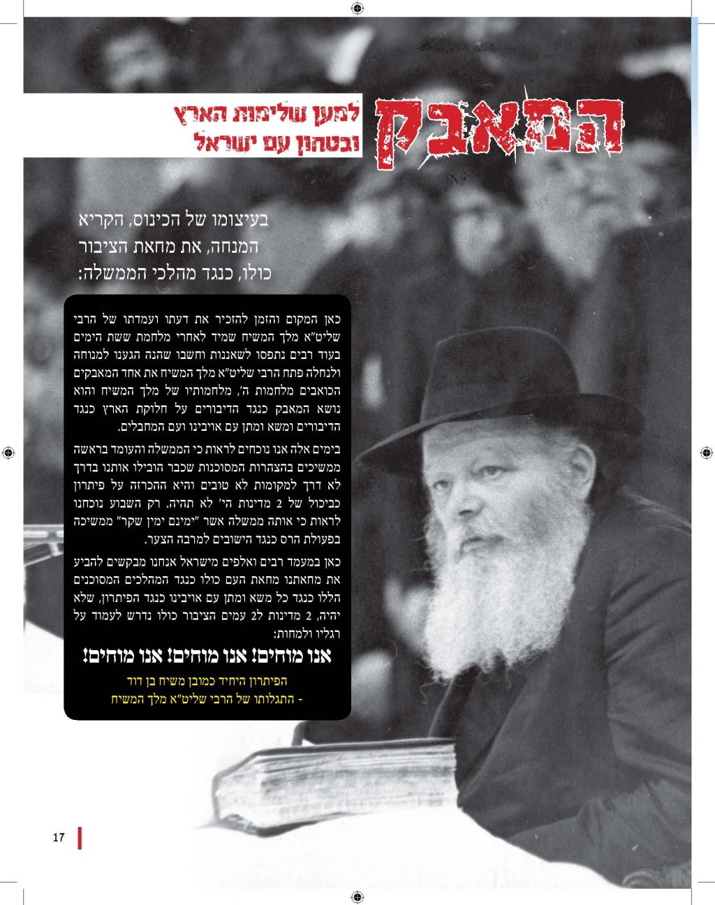 מגזין מושקע זה יוצא לאור כהמשך להוראותו של כ"ק אדמו"ר מלך המשיח שליט"א למארגני האירועים בחסידות, להוציא לאור את דברי הרבנים והאורחים המכובדים. אין ספק כי תוכנה העשיר של החוברת, ימשיך לחולל את מהפיכת הגאולה המתחוללת בעולם כולו וכפי שבאה לידי ביטוי בעצרת הענק.