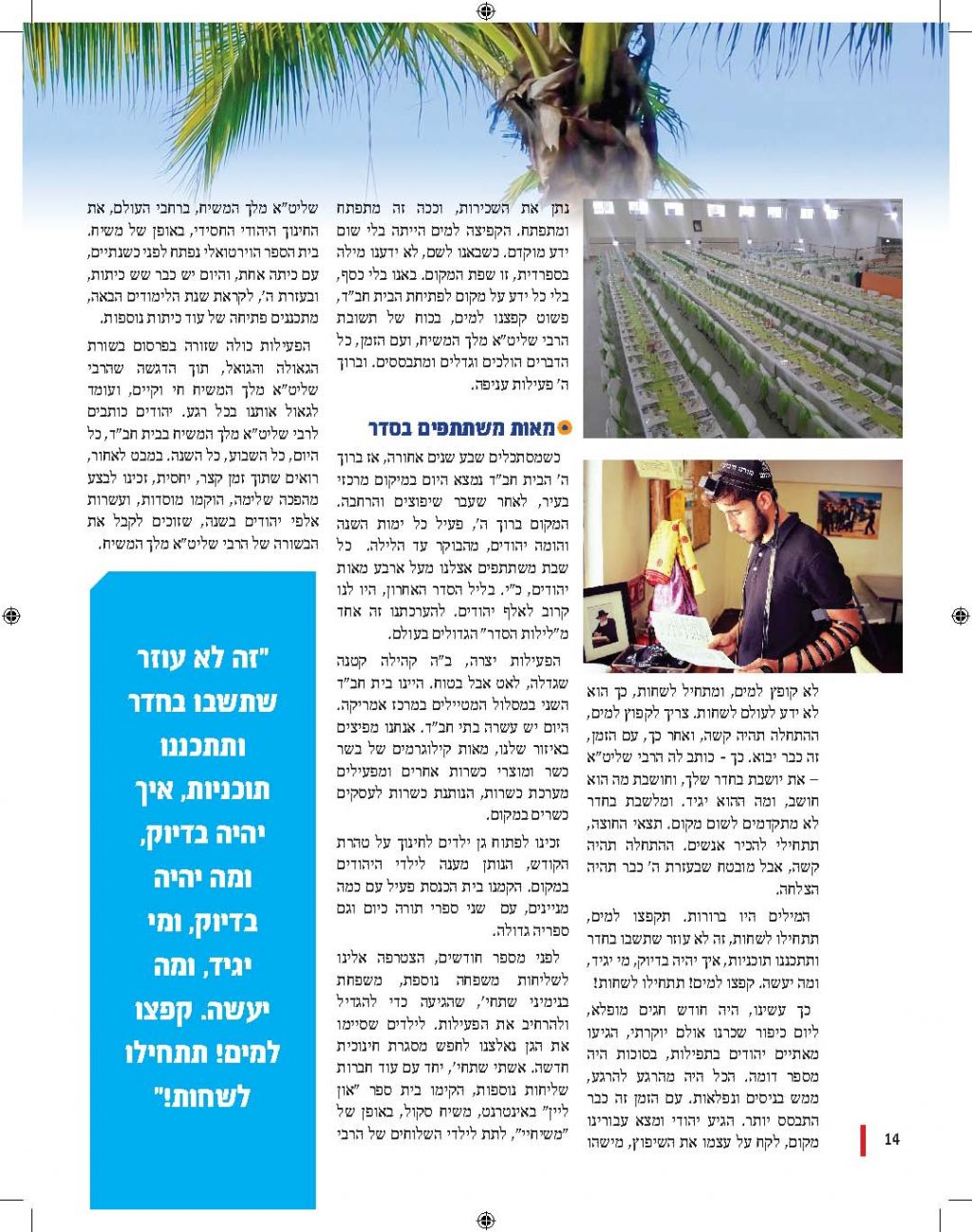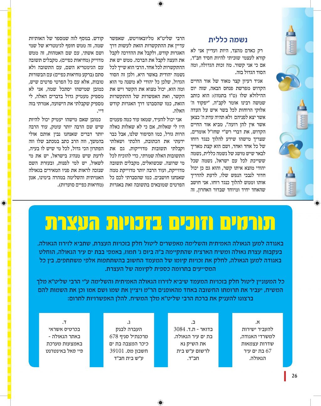 בימים הקרובים תופץ החוברת בכל רחבי הארץ. שלוחים המעונינים לקבל חוברות להפצה מתבקשים ליצור קשר בטל' 03-658-4633.