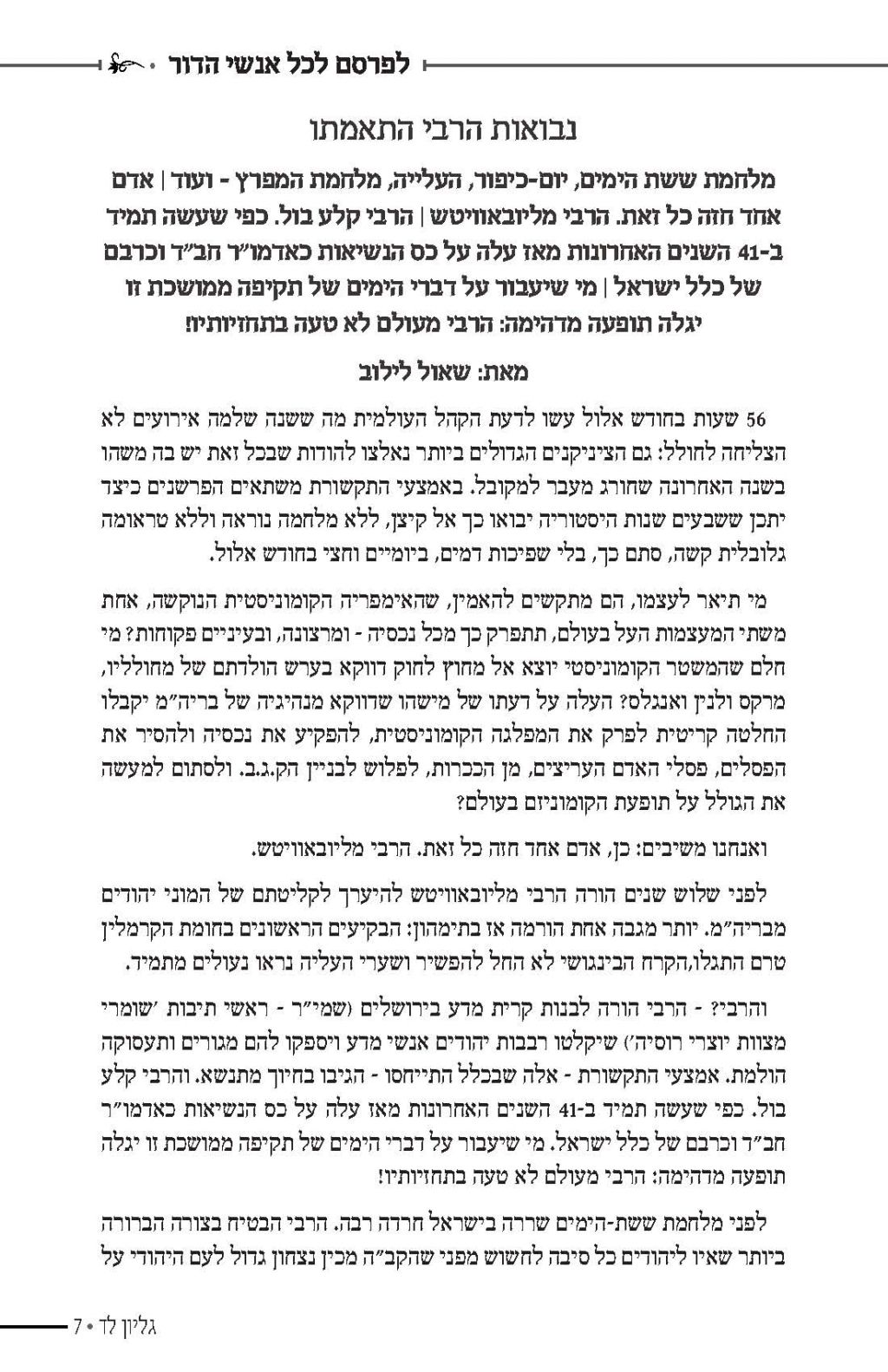 מערכת חיילי בית דוד הפיקה לקראת פ' שופטים קובץ המתאר את מה שהתחולל אחרי ההכרזה שחזרה הנבואה לישראל, פ' שופטים תנש"א