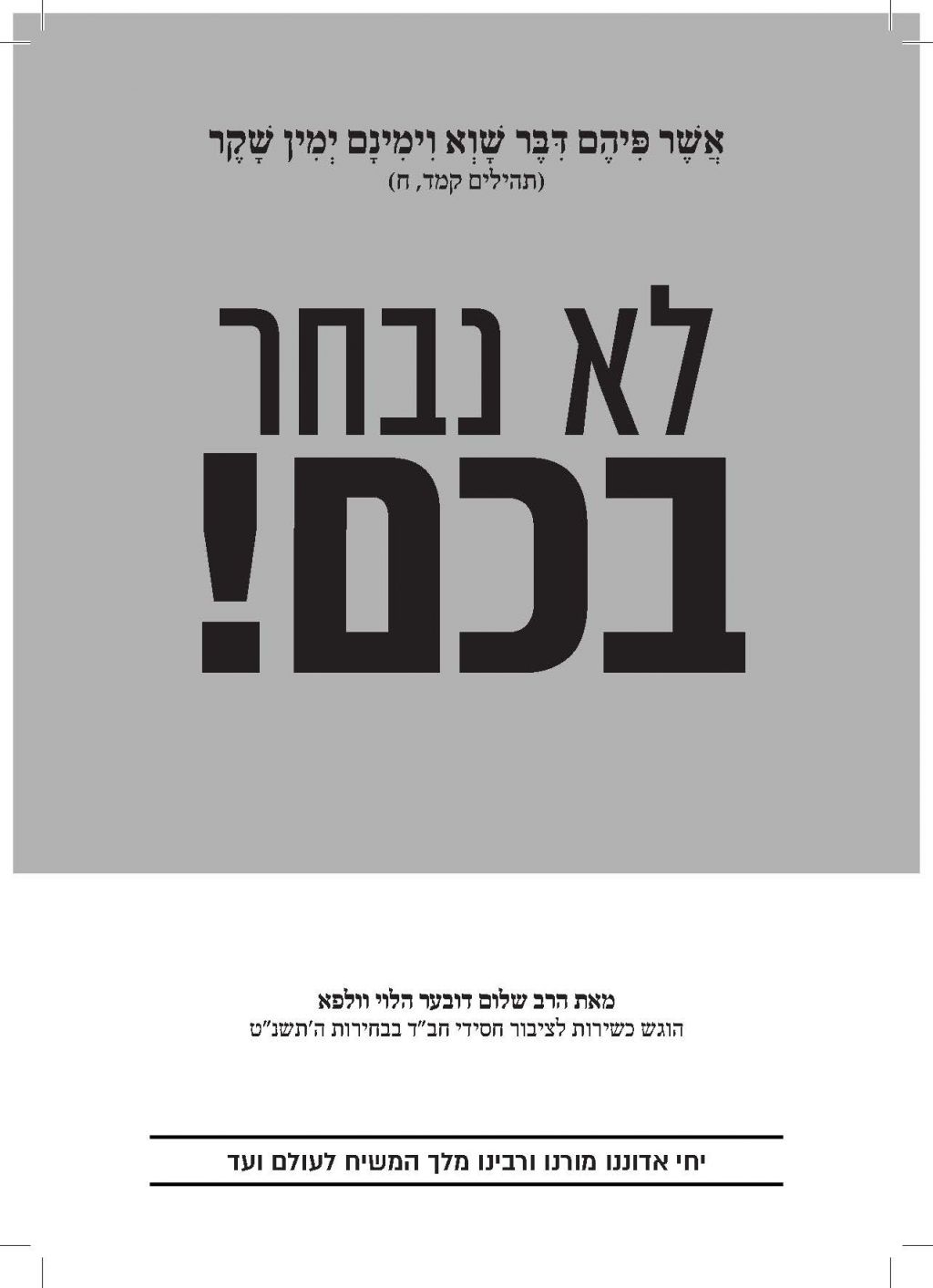 לקראת מועד הבחירות, נשלחה אלינו חוברת של הרב וולפא "דרך אמונה בחרתי" משנת תשמ"ט, בנוגע לאיסור השתתפות בבחירות (תשמ"ט) היות שאין למי להצביע, שרלוונטית גם היום.