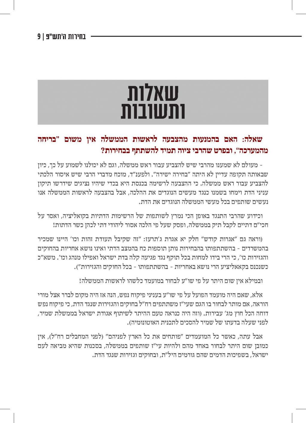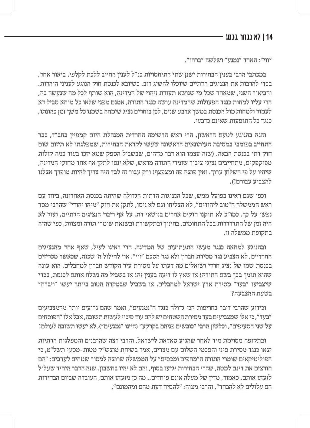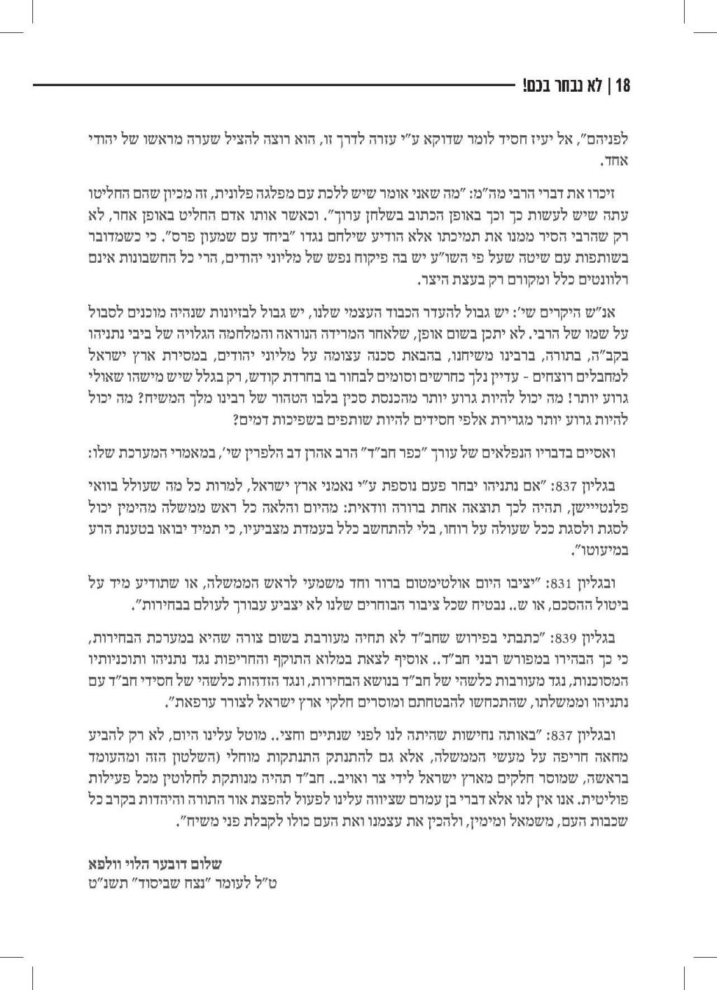 לקראת מועד הבחירות, נשלחה אלינו חוברת של הרב וולפא "דרך אמונה בחרתי" משנת תשמ"ט, בנוגע לאיסור השתתפות בבחירות (תשמ"ט) היות שאין למי להצביע, שרלוונטית גם היום