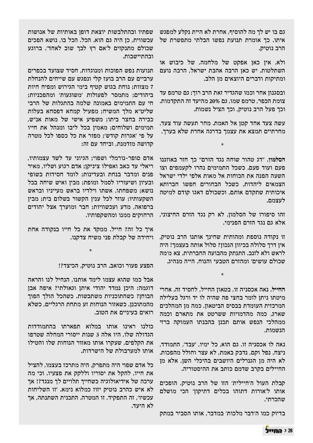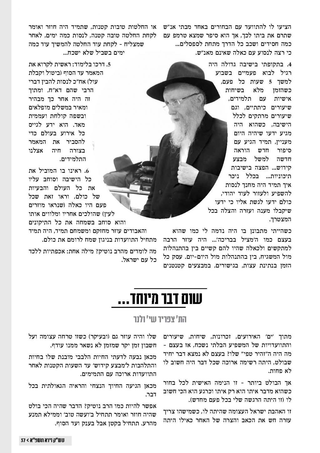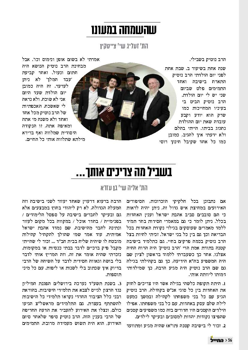 "החייל" 37 מוקדש לרב זלמן נוטיק